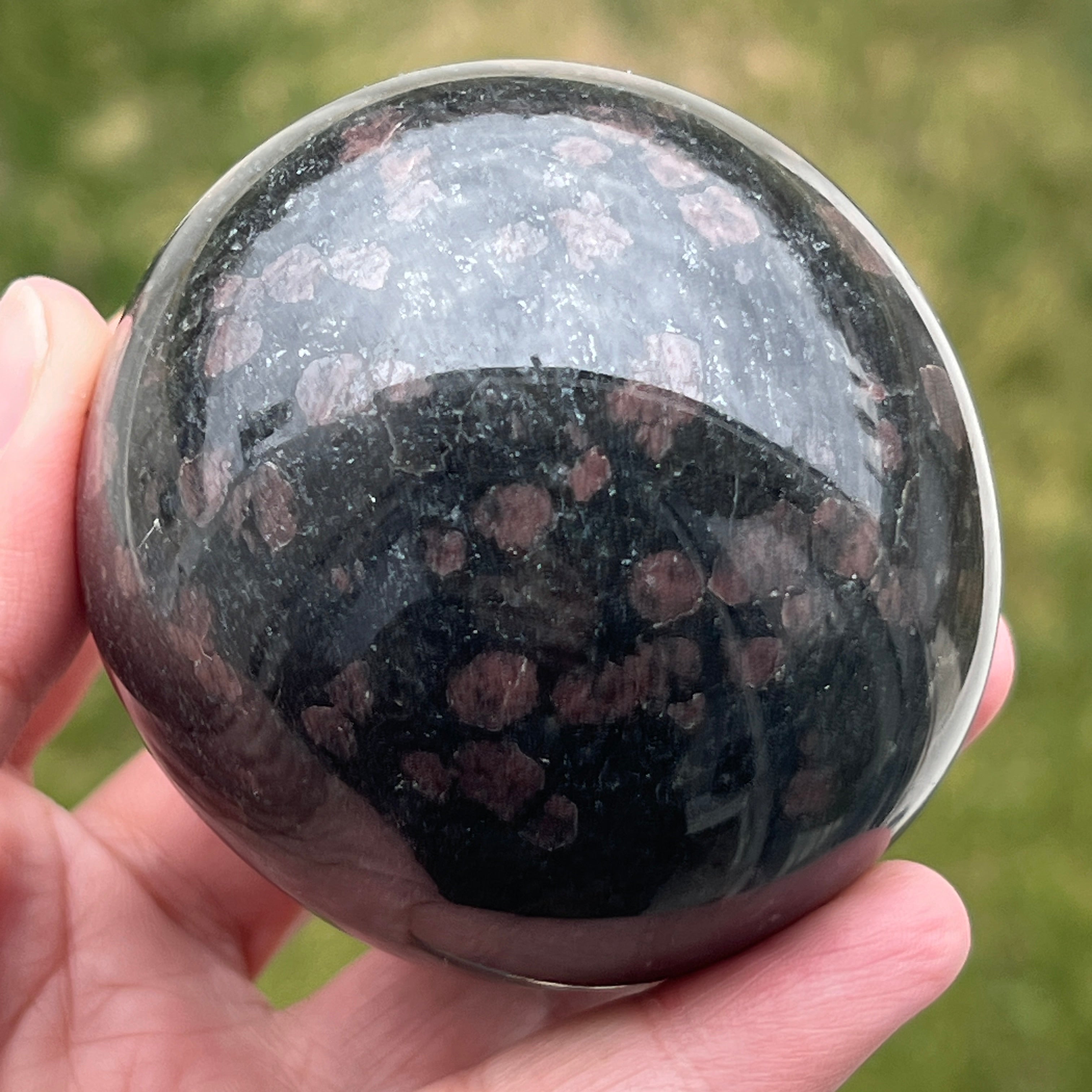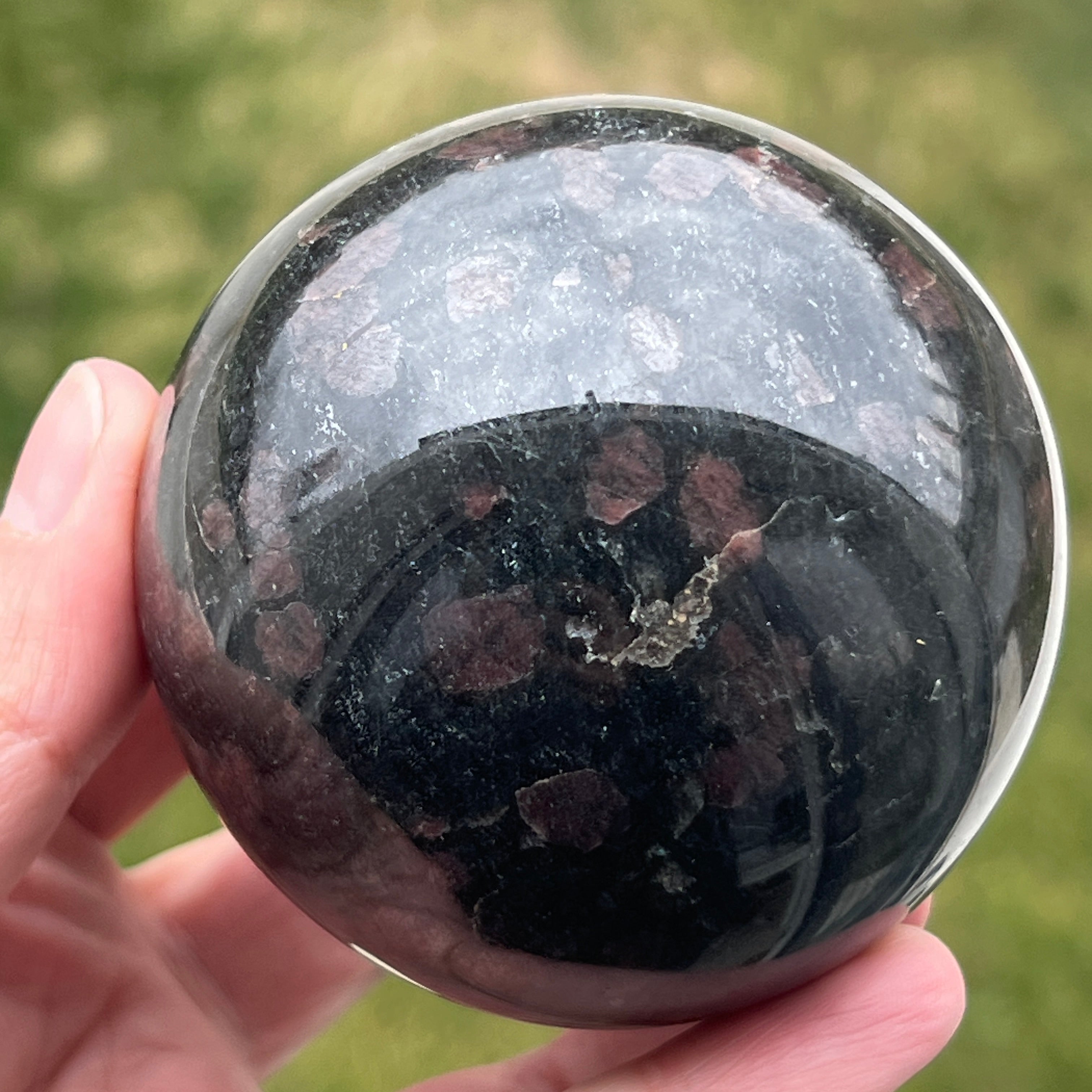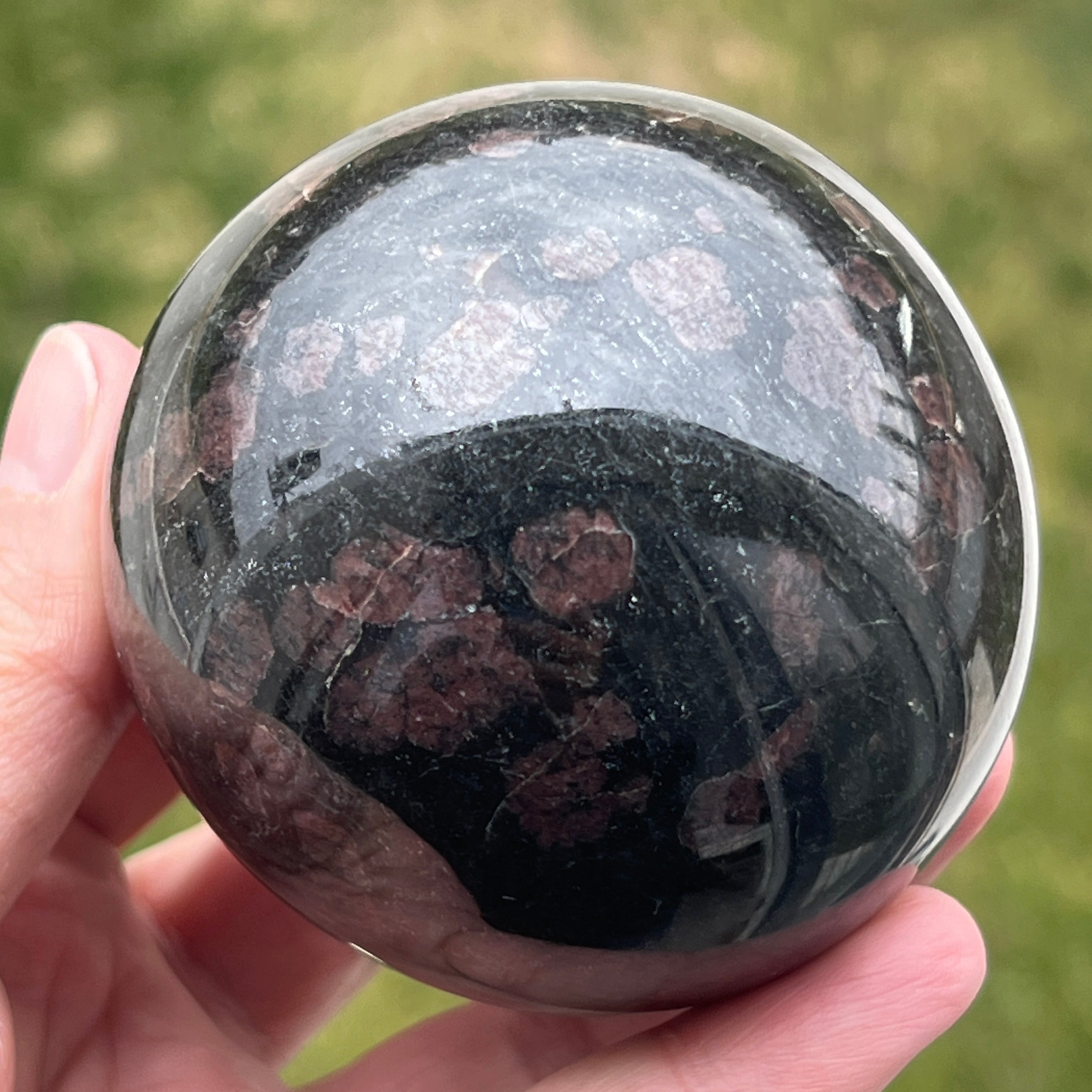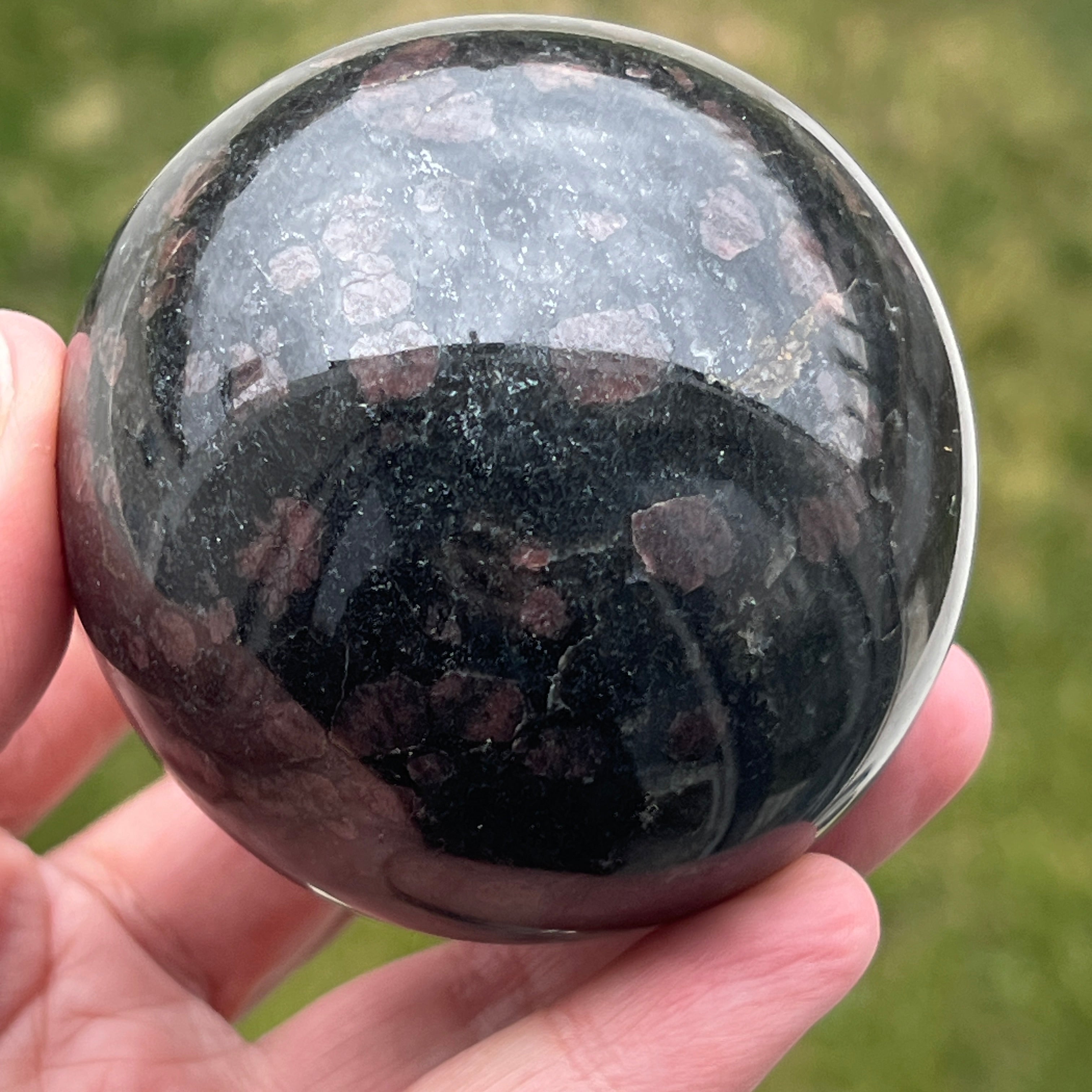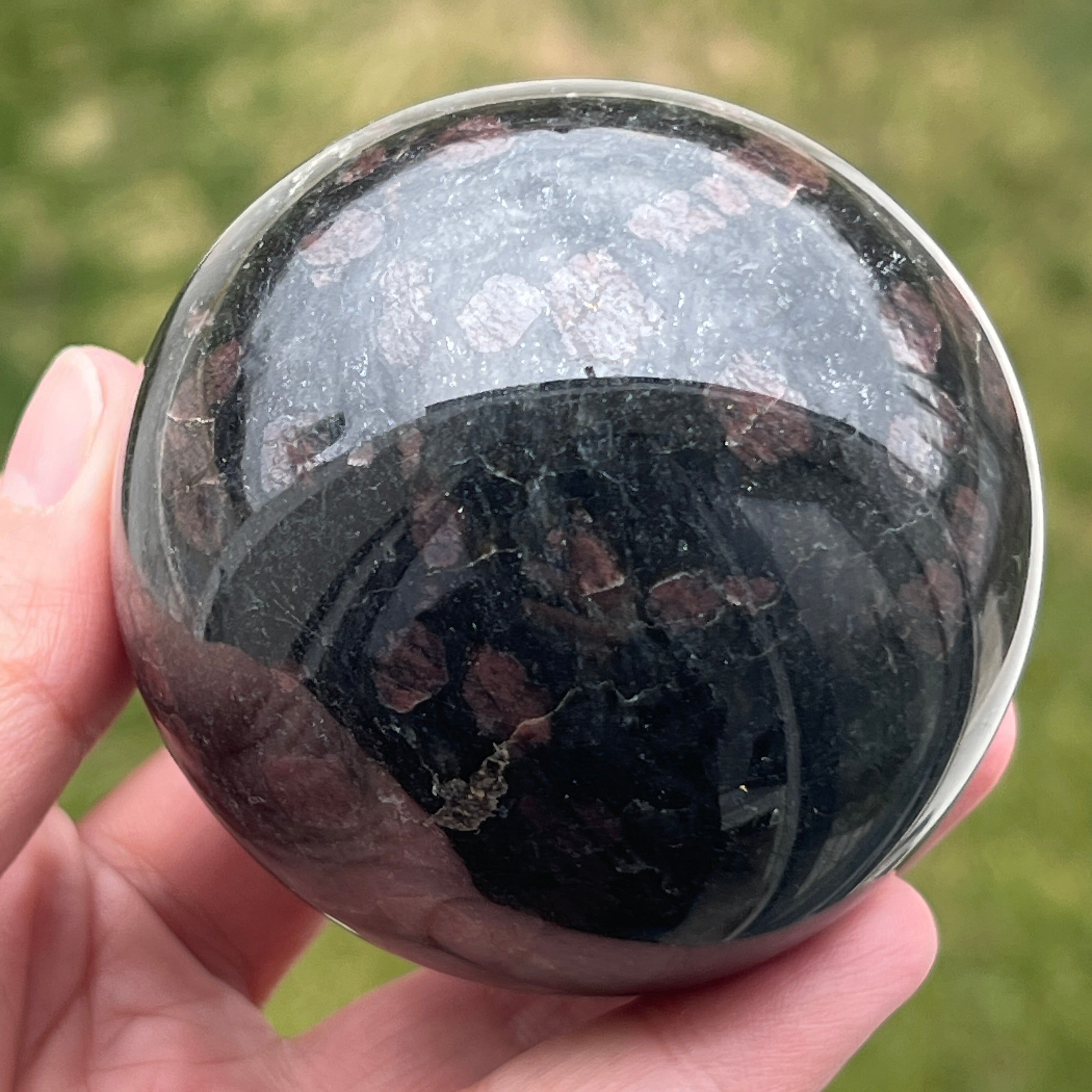 Bewertungen - Schwarze Turmalinkugel mit Granat | Modell 9