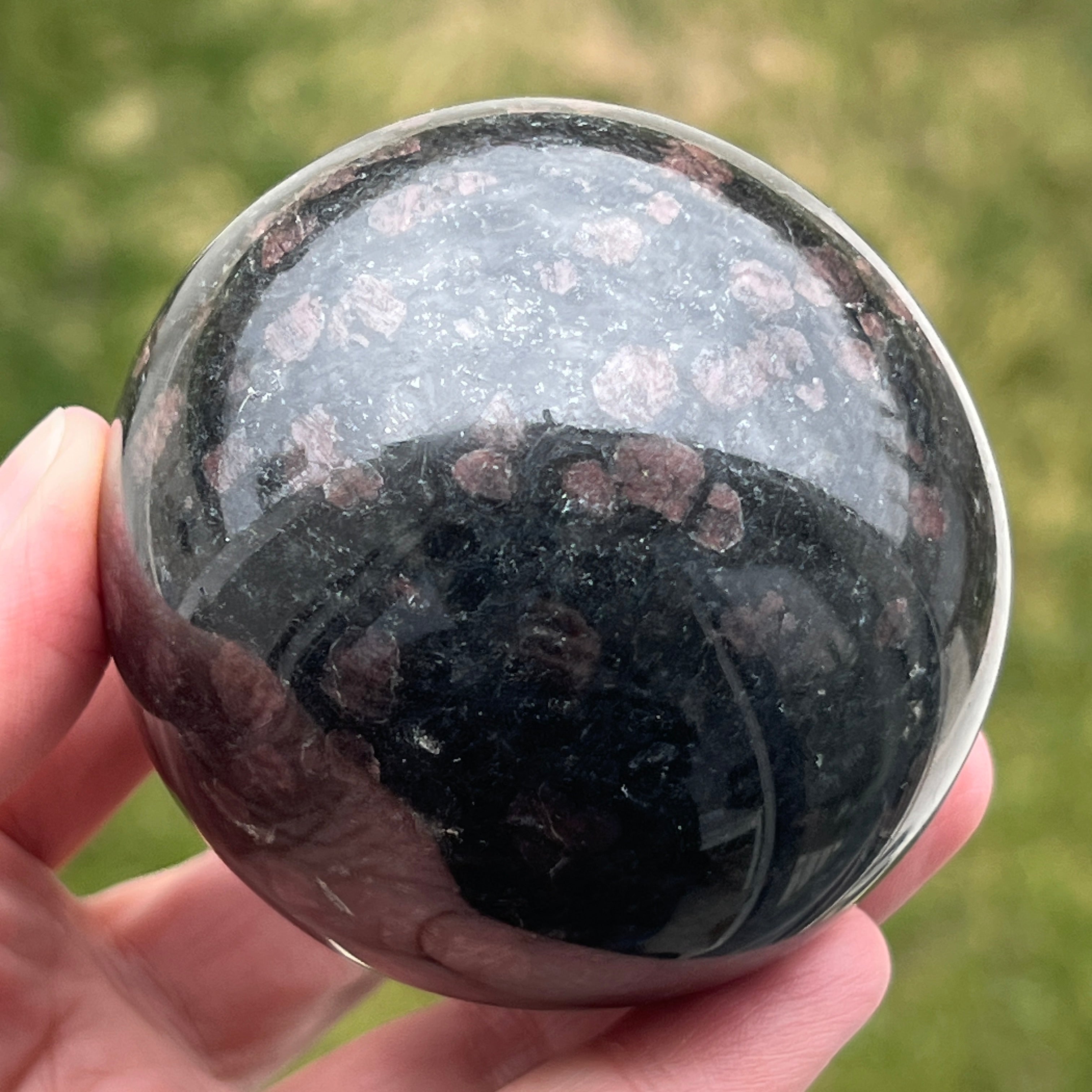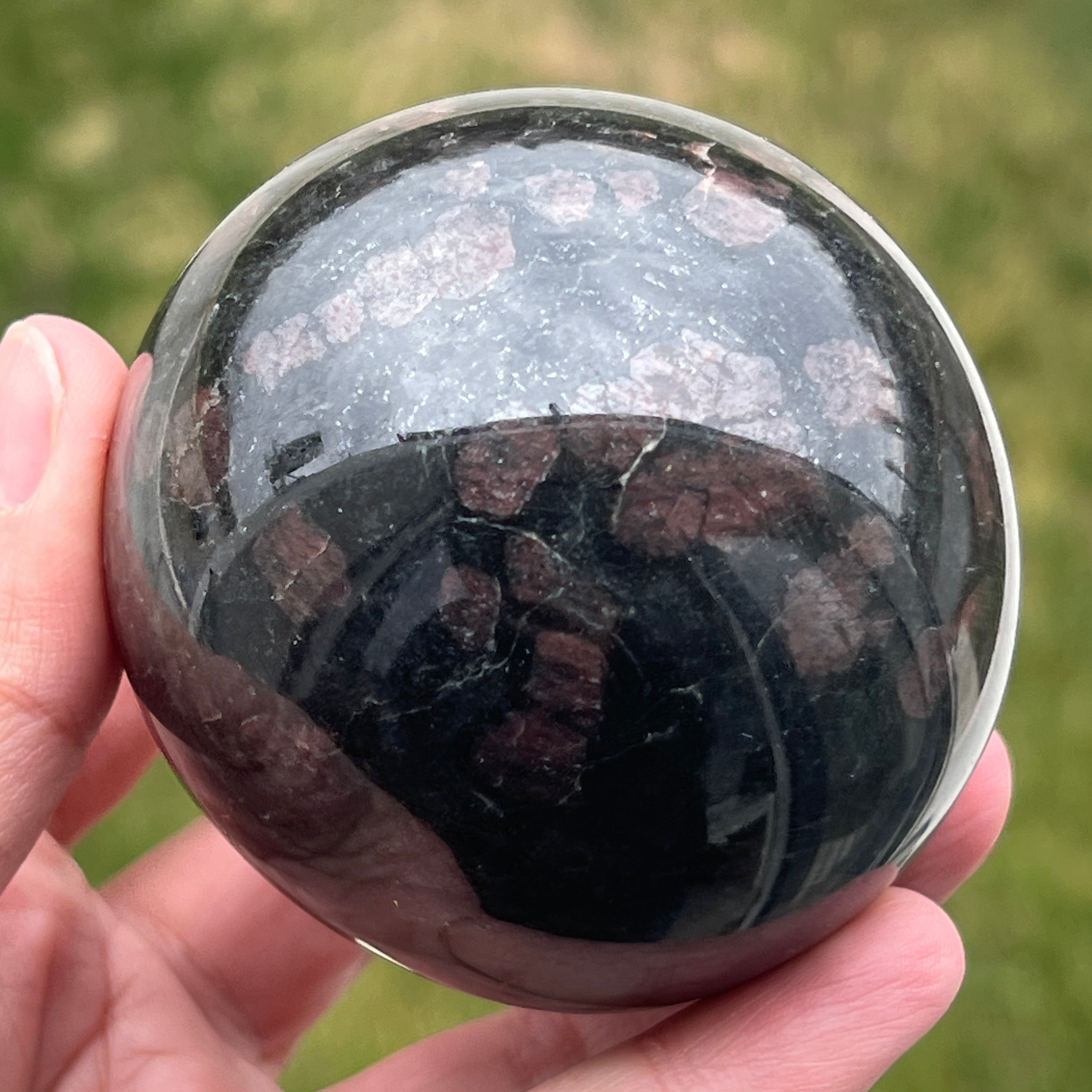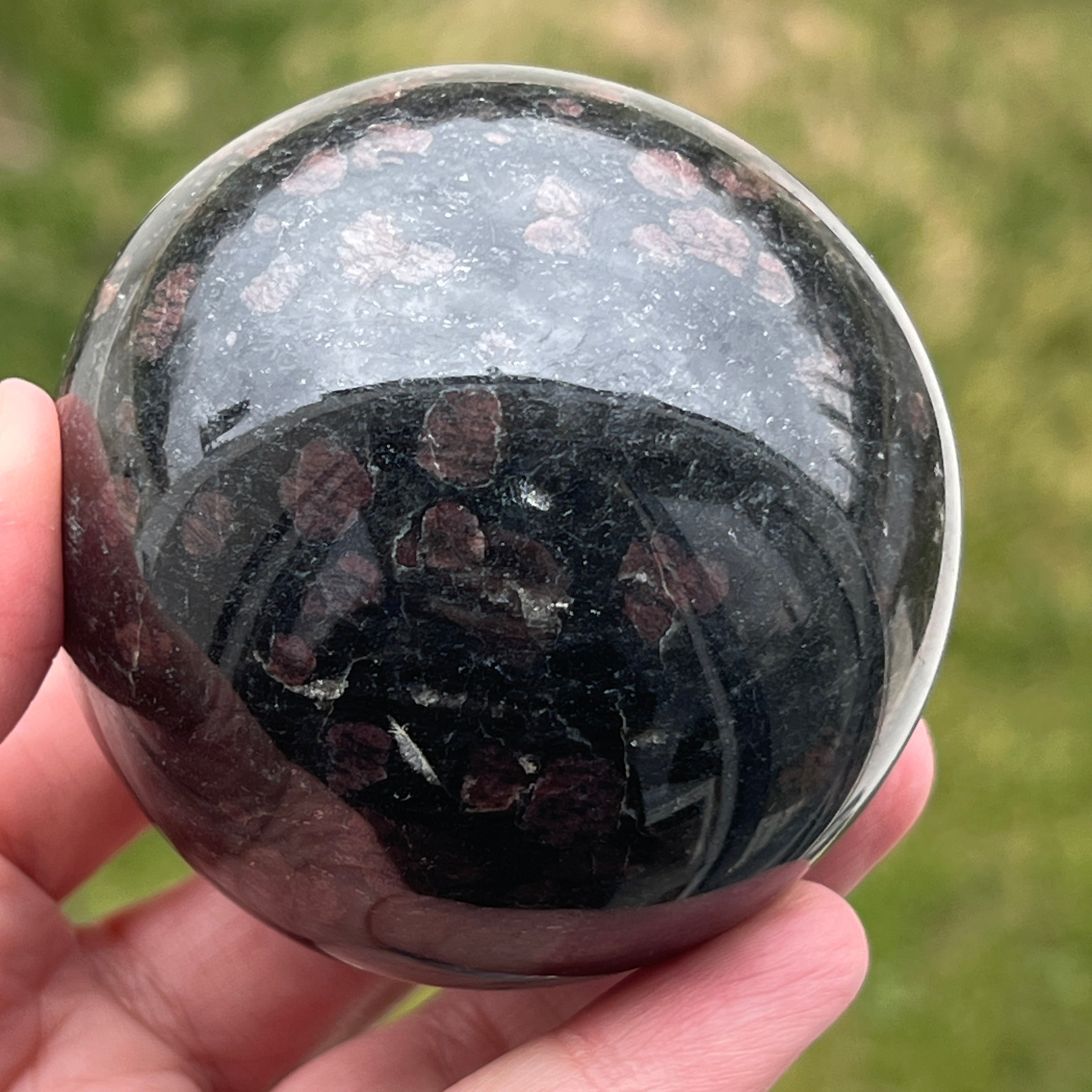 Schwarze Turmalinkugel mit Granat | Modell 9