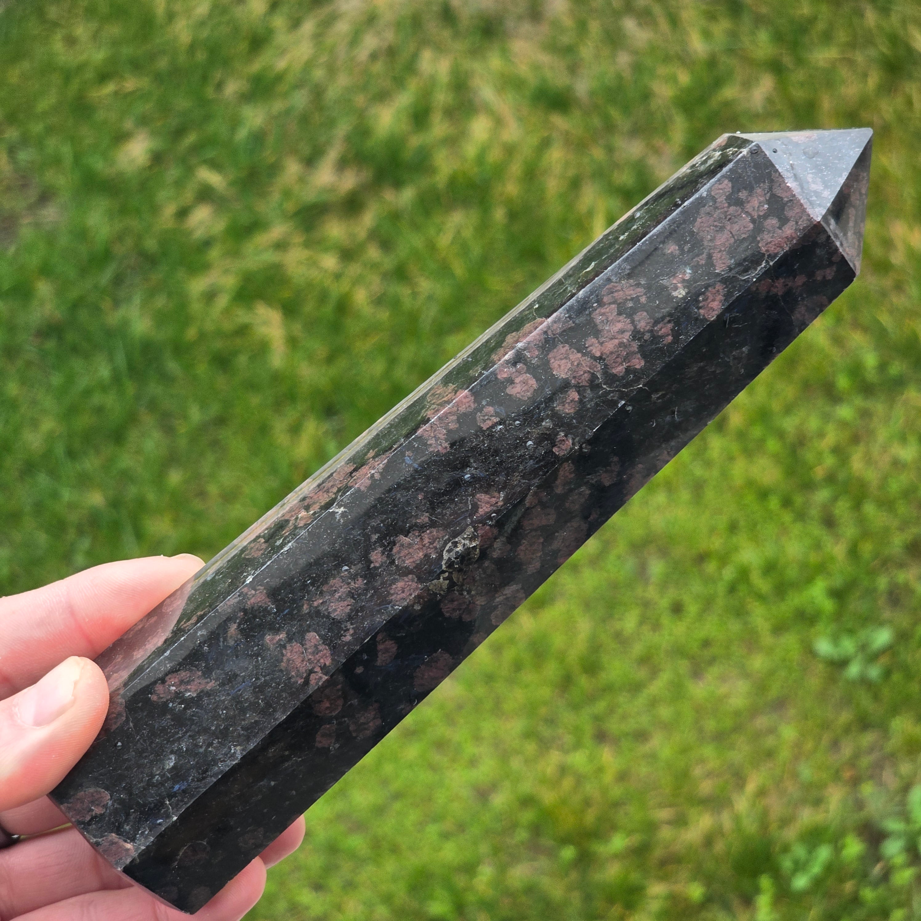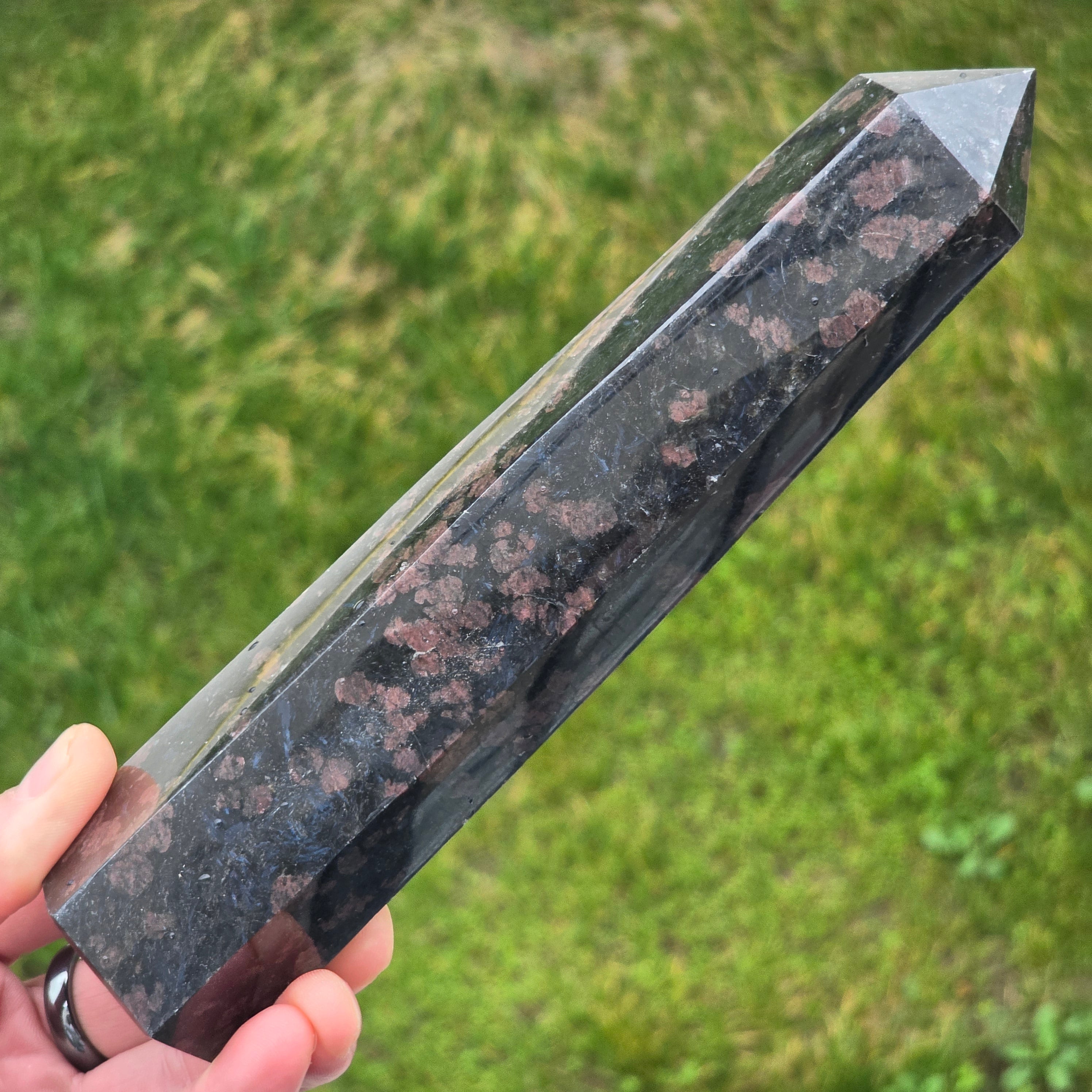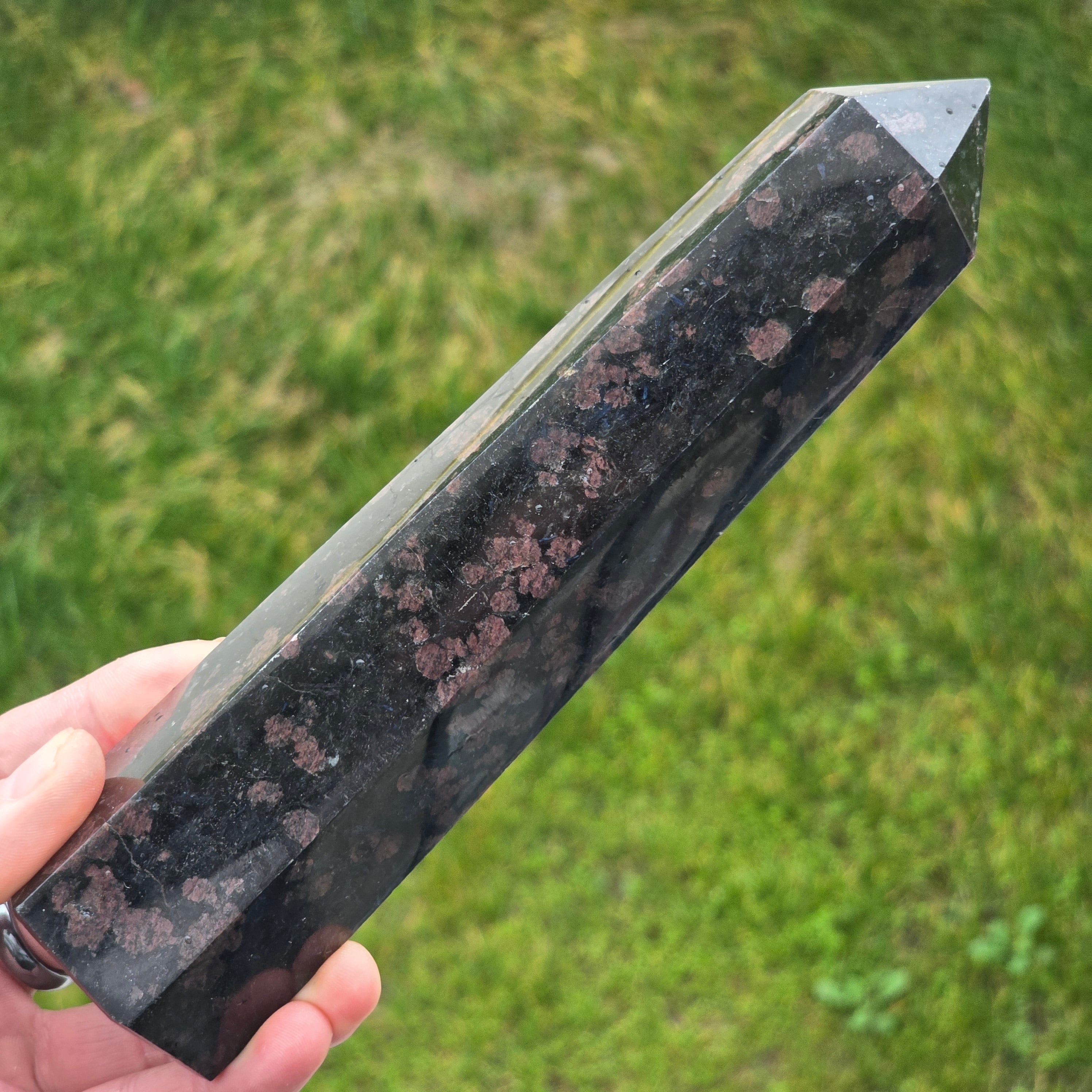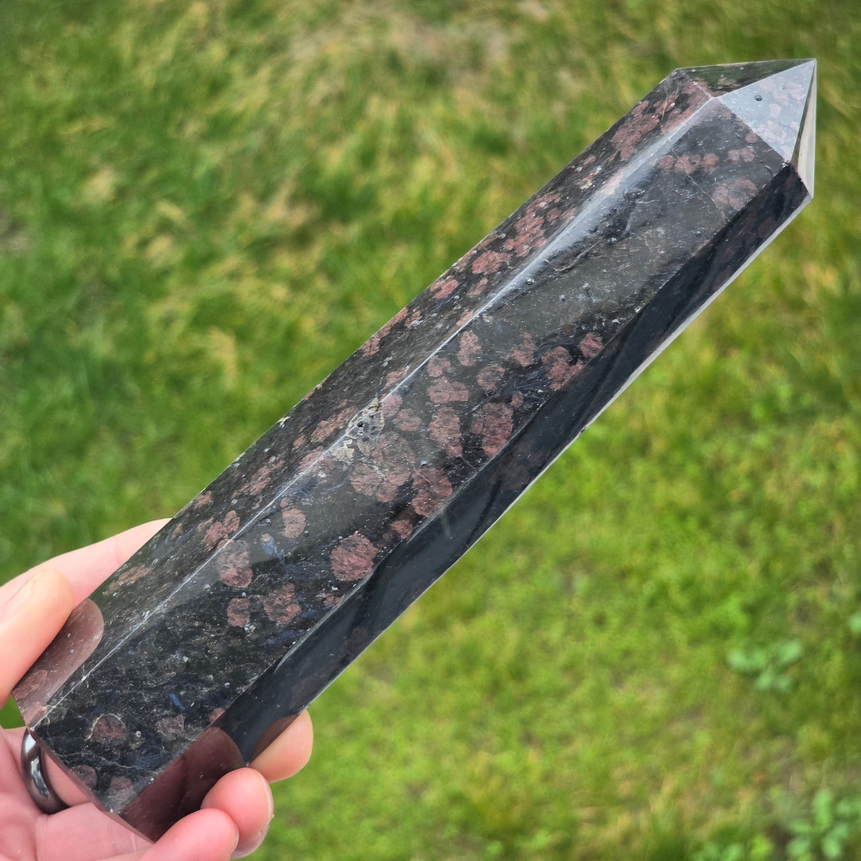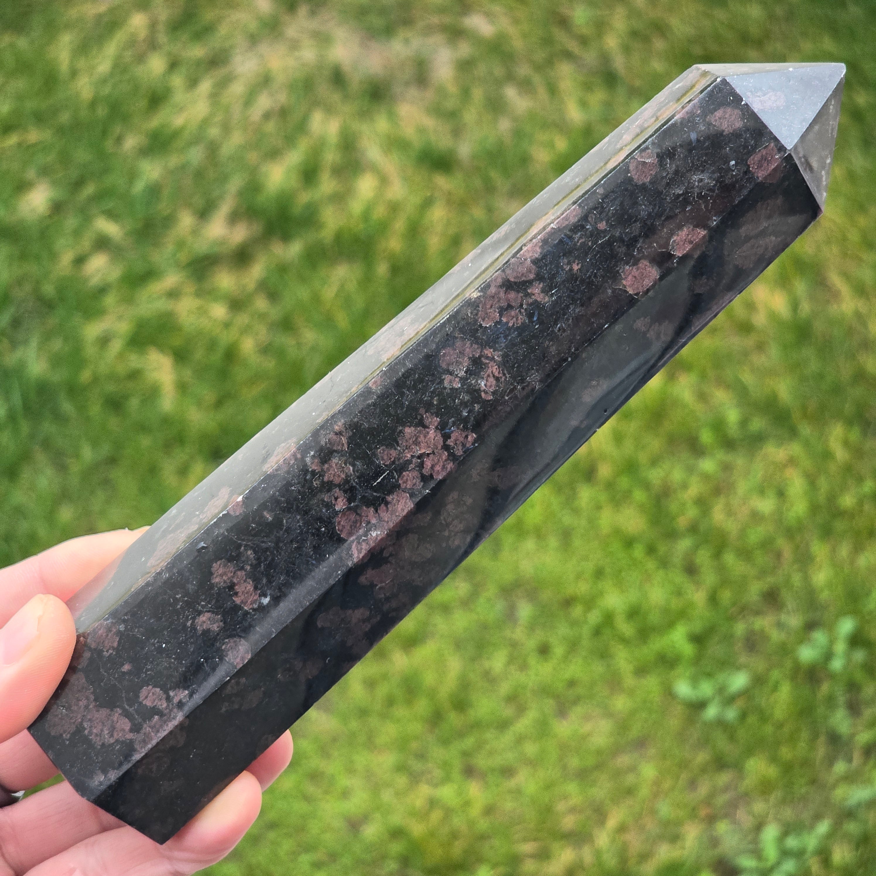 Schwarzer Turmalin-Obelisk mit Granat | Modell 26