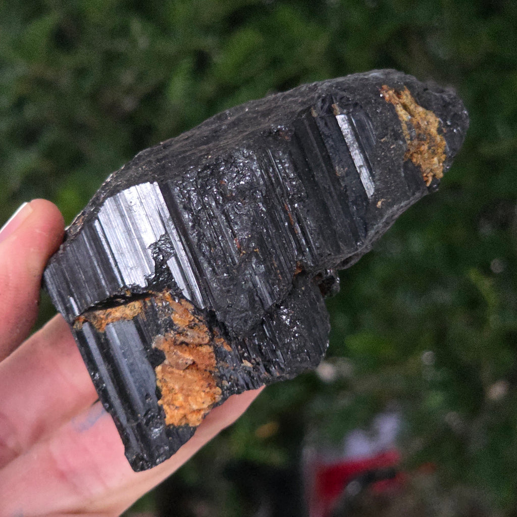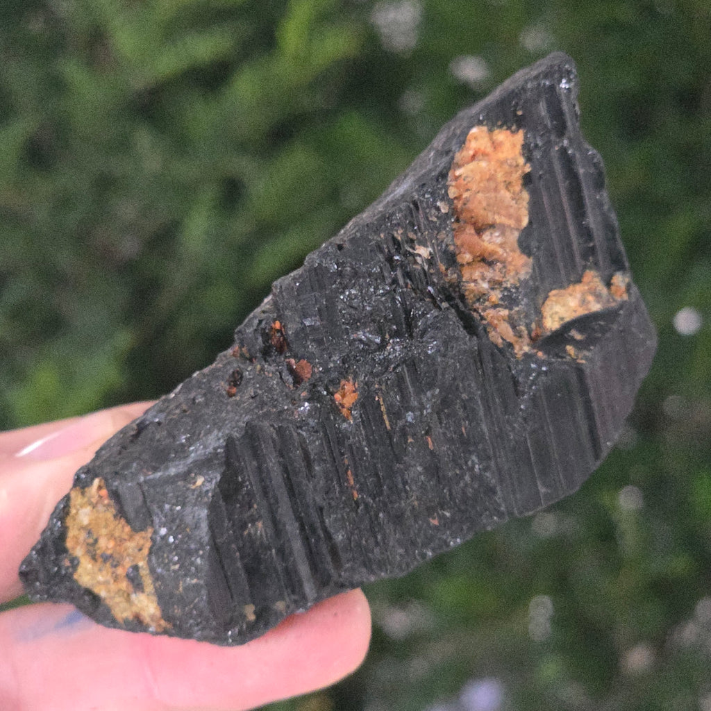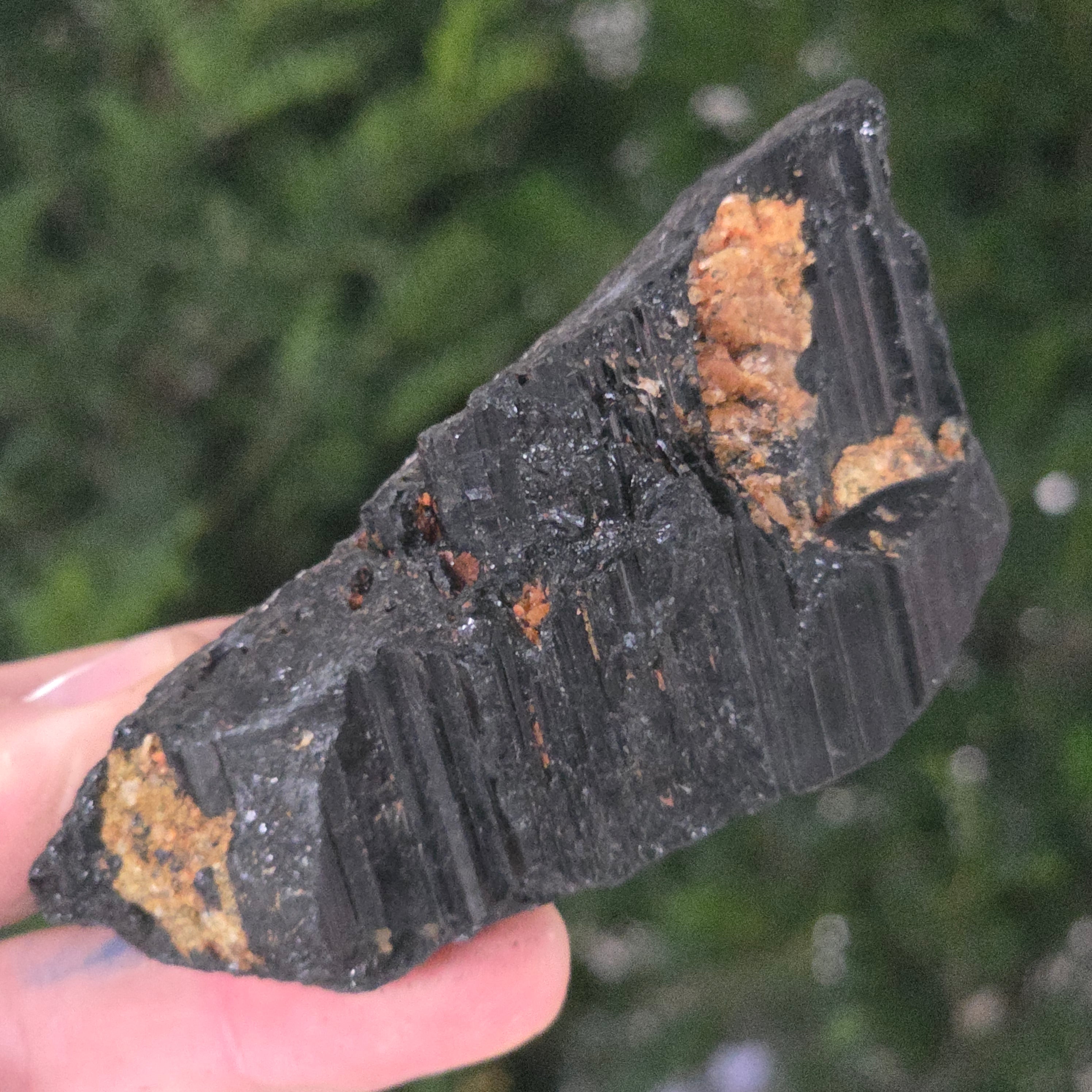 Black Turmalin, auch als Schorl bekannt, besteht aus einer komplexen Mischung aus Borosilica und befindet sich in einer Vielzahl von kristallinen Formen. Es ist ein sehr hartes Mineral und hat einen großen Widerstand gegen Kratzer und Verschleiß.