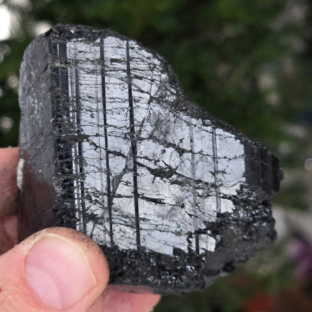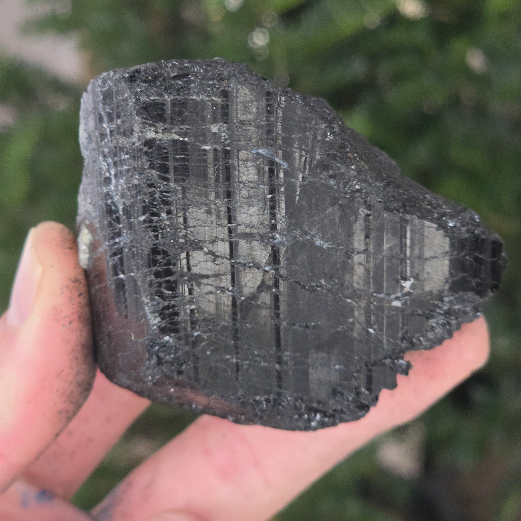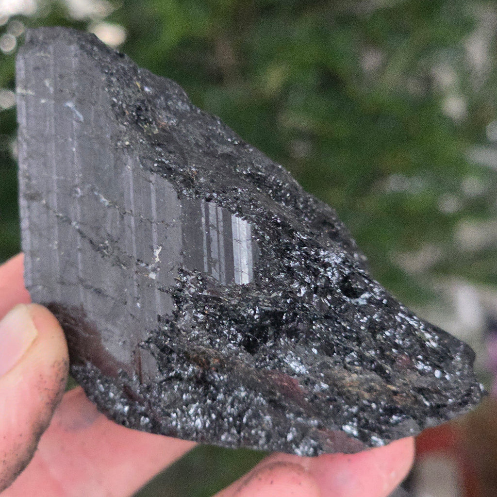 Black Turmalin, auch als Schorl bekannt, besteht aus einer komplexen Mischung aus Borosilica und befindet sich in einer Vielzahl von kristallinen Formen. Es ist ein sehr hartes Mineral und hat einen großen Widerstand gegen Kratzer und Verschleiß.