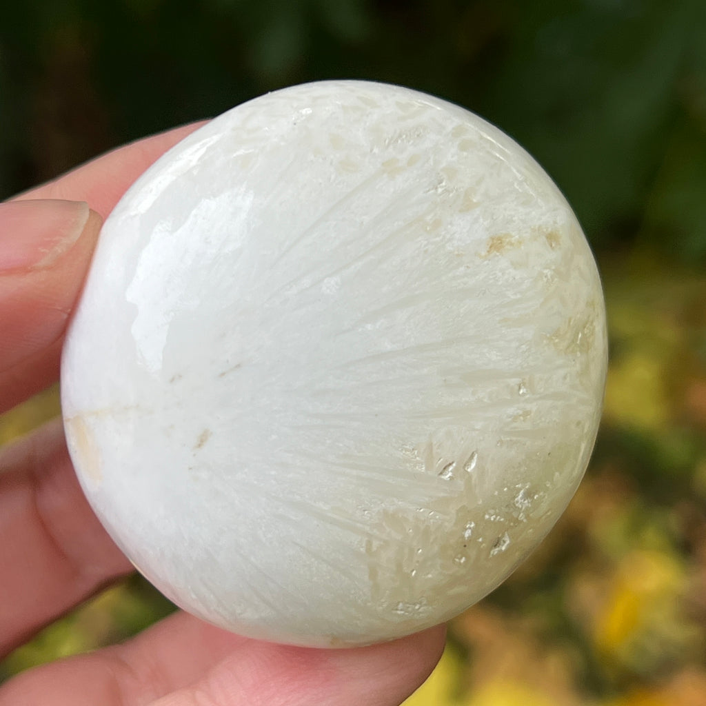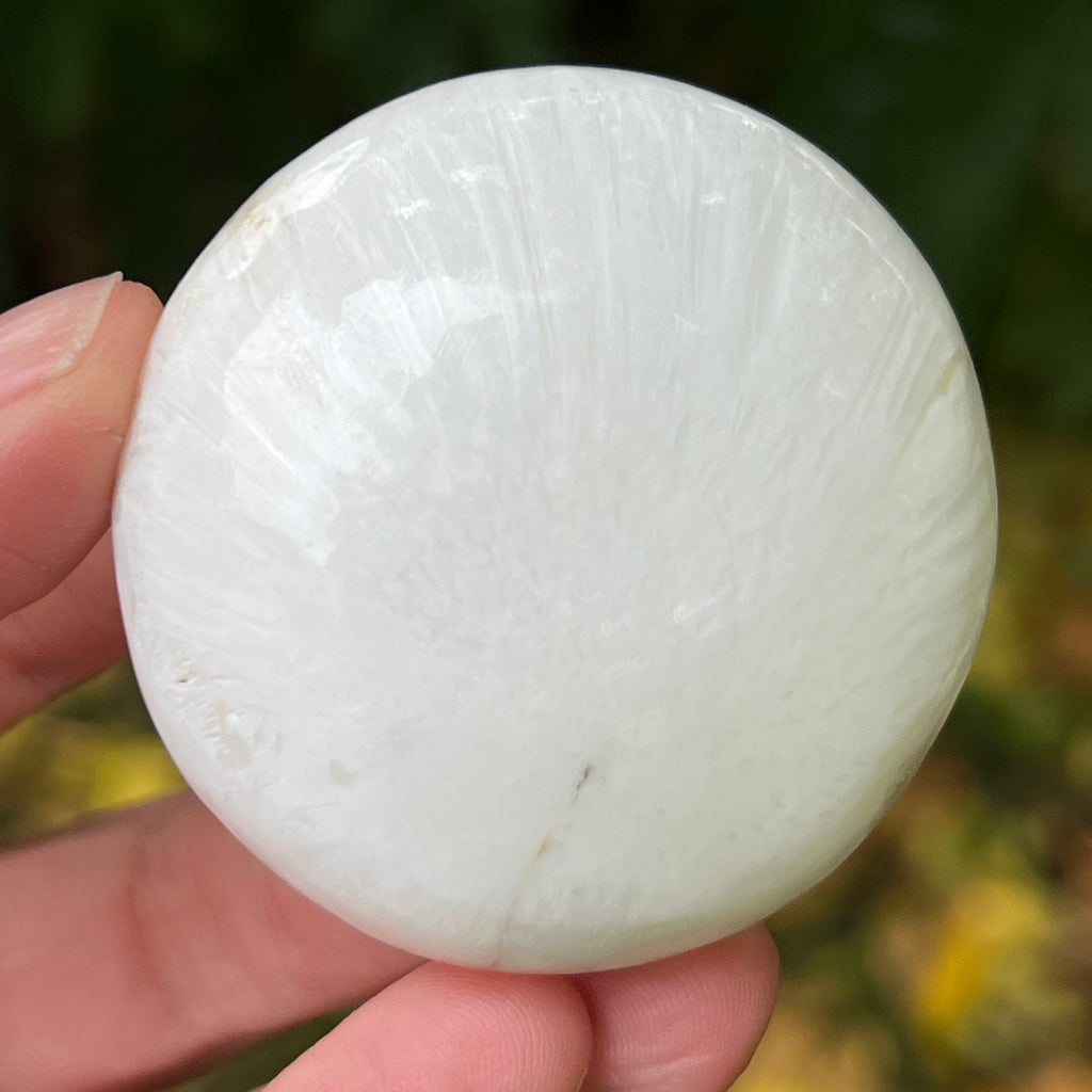 Scolecitul este o piatră delicată și luminoasă, aparținând familiei zeoliților, recunoscută pentru structura sa fină, fibros-radială și strălucirea mătăsoasă. De obicei albă sau crem, uneori cu nuanțe subtile de roz sau bej, această piatră emană o puritate aproape eterică, amintind de calmul lăuntric și de tăcerea din care se naște pacea.