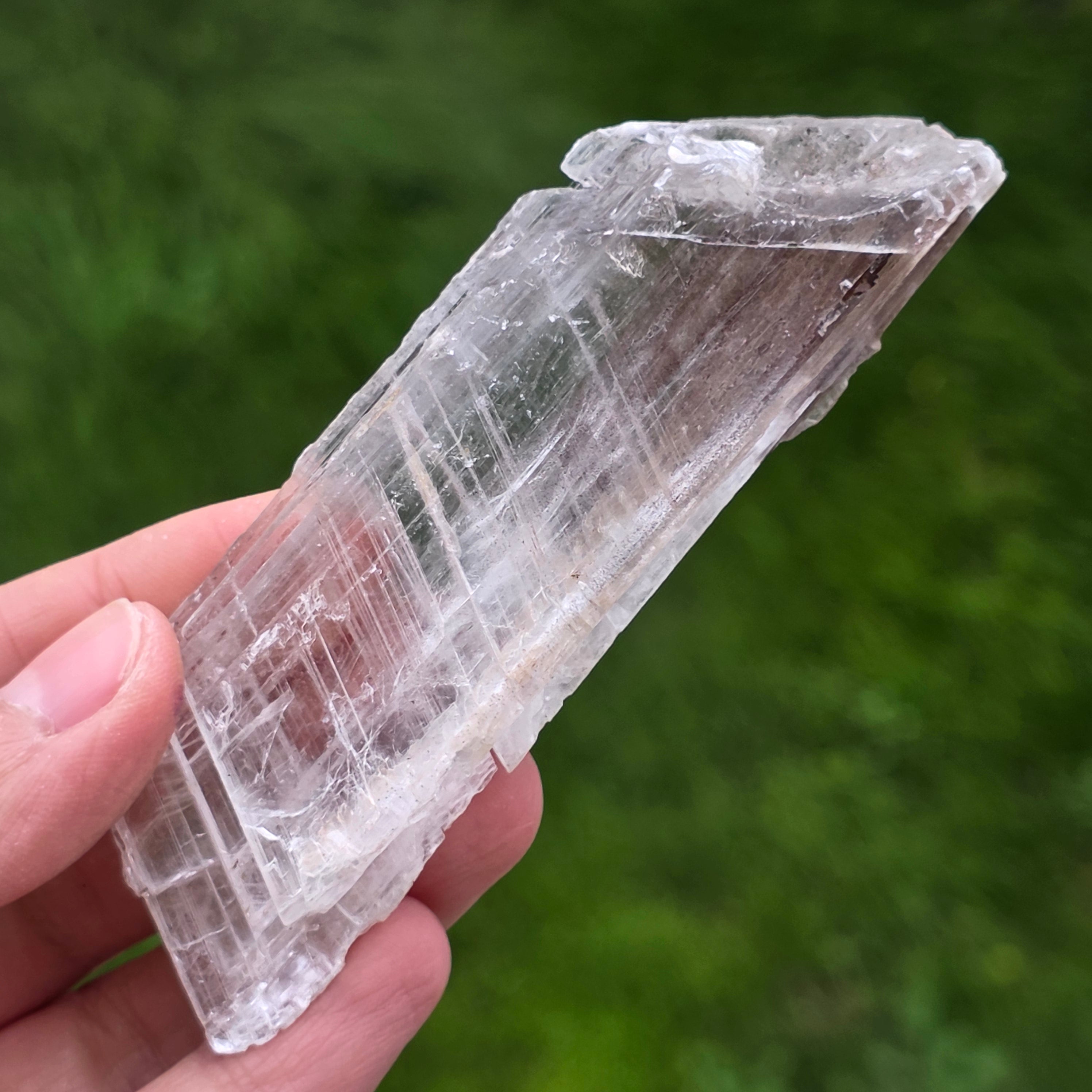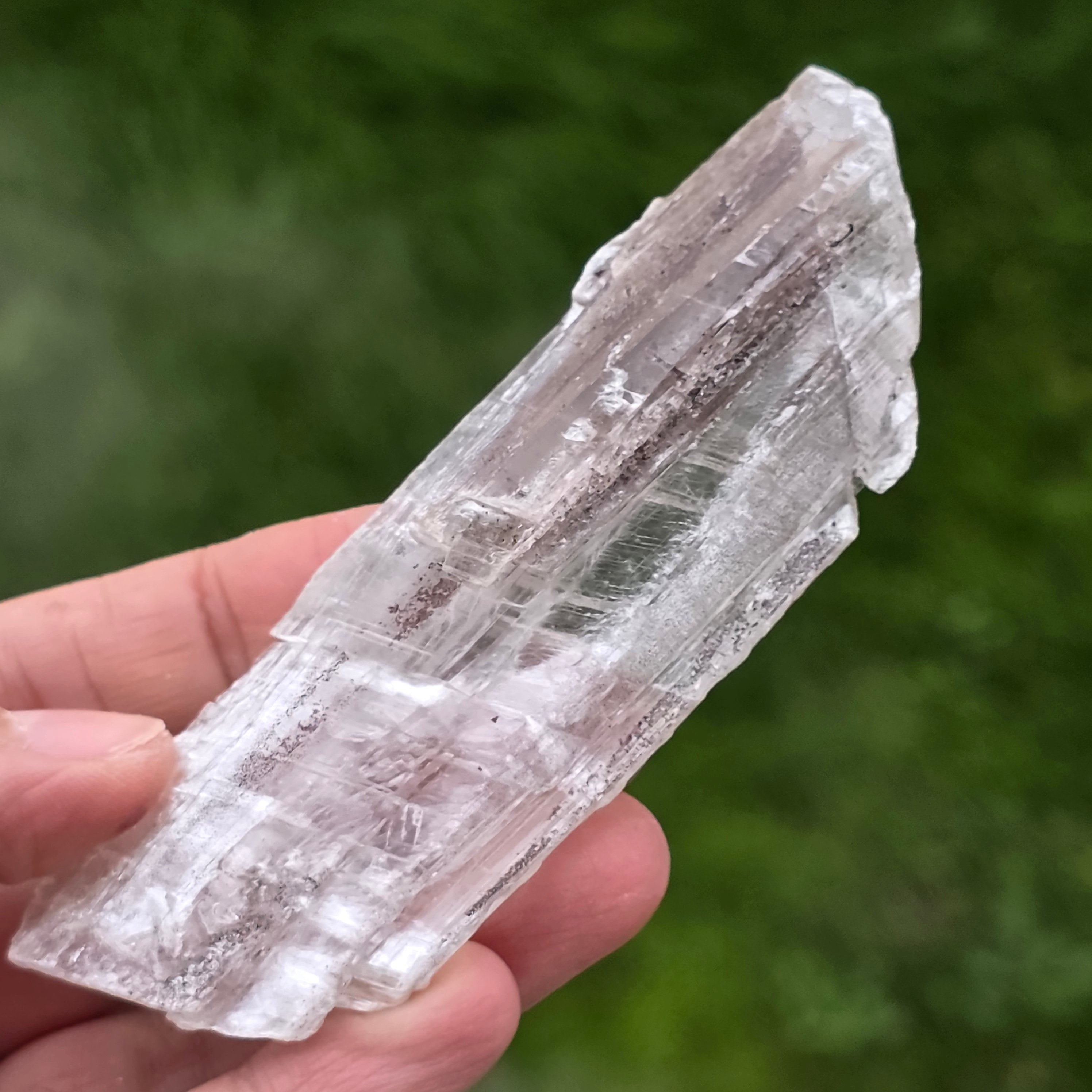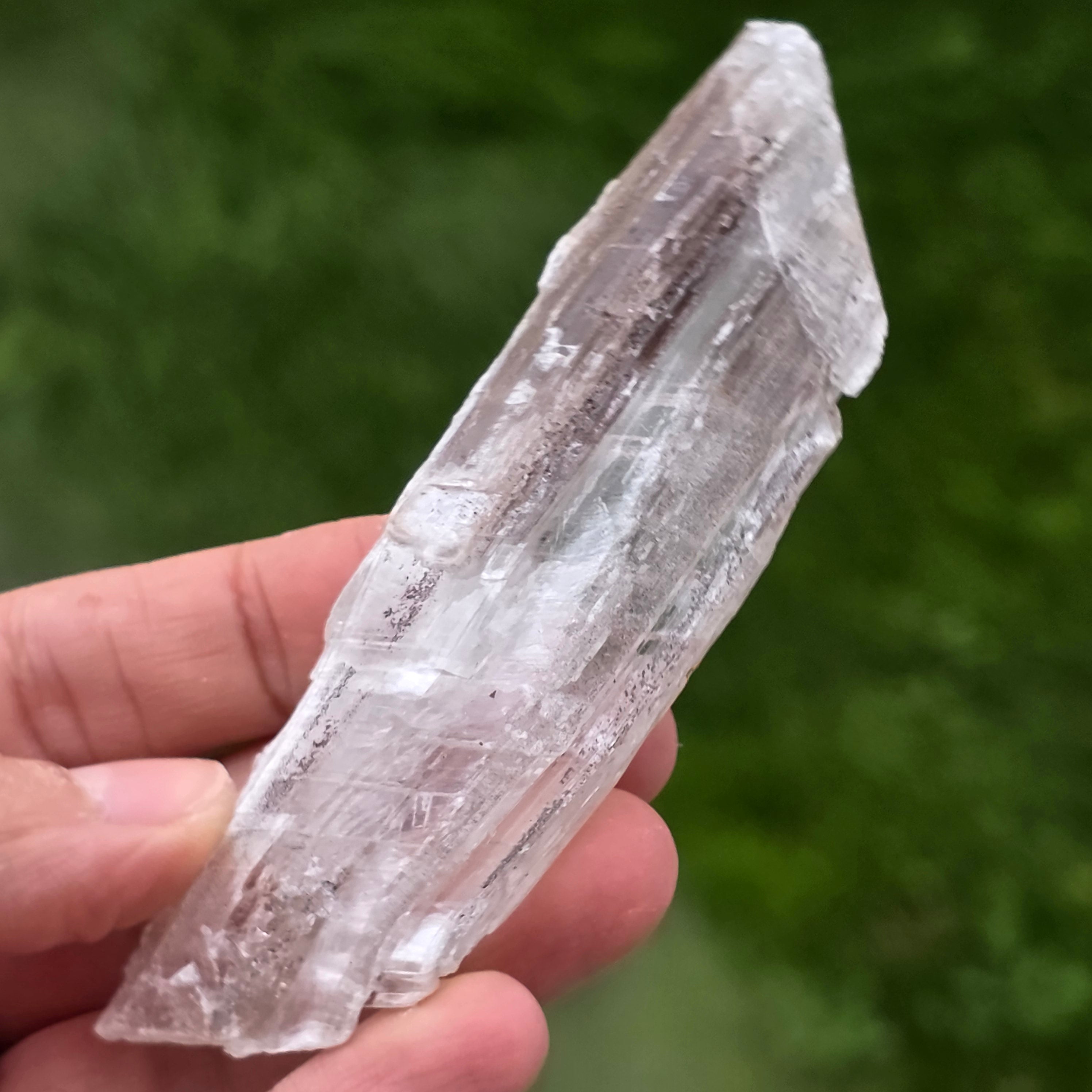 Selenit erscheint in Form von länglichen Kristallen oder durchscheinenden Platten, mit seidigem Glanz und feiner Textur, während Hämatit in Form von Einschlüssen, Häutchen oder natürlichen Ablagerungenvorhanden ist, die die Kristallstruktur betonen und ihr visuelle Tiefe verleihen.