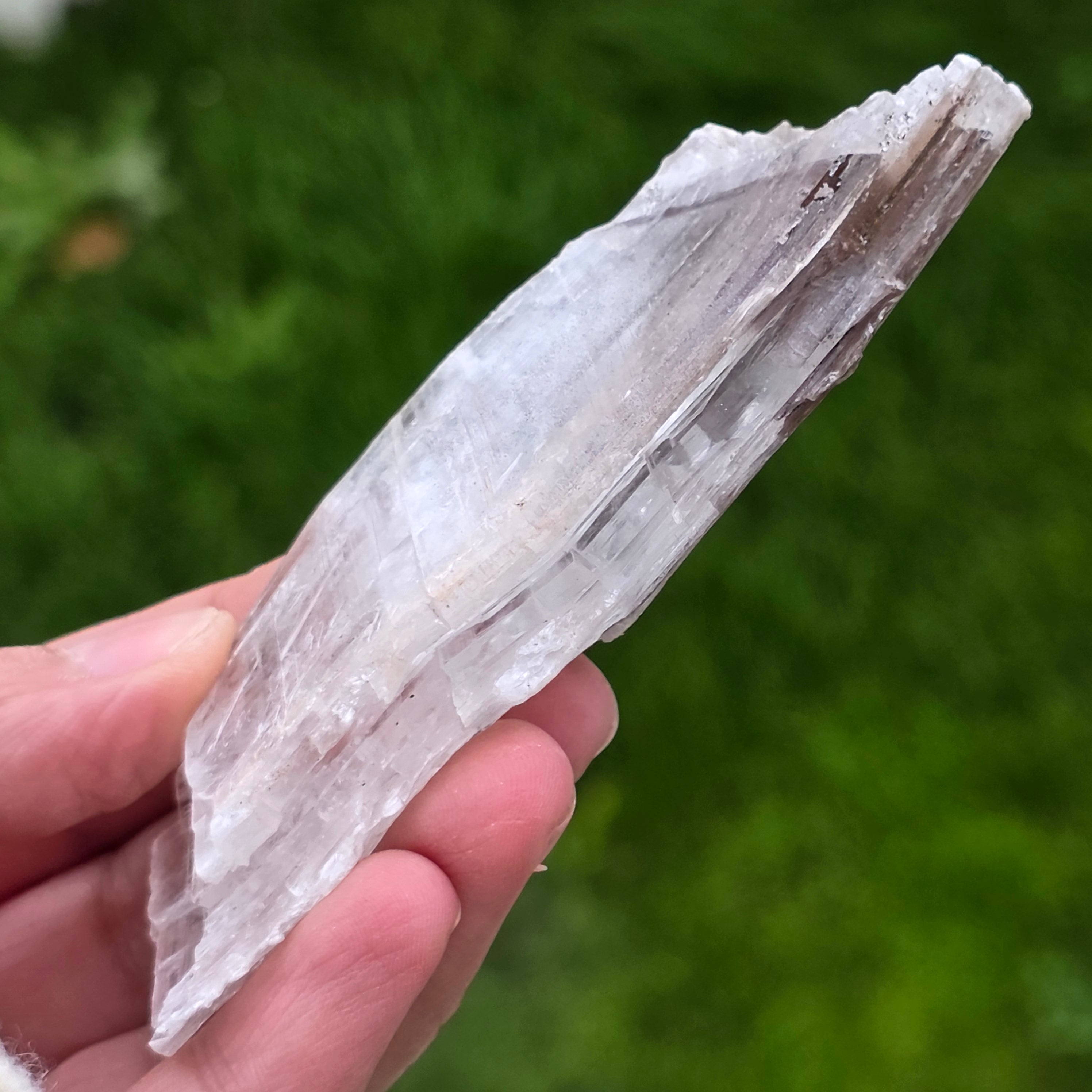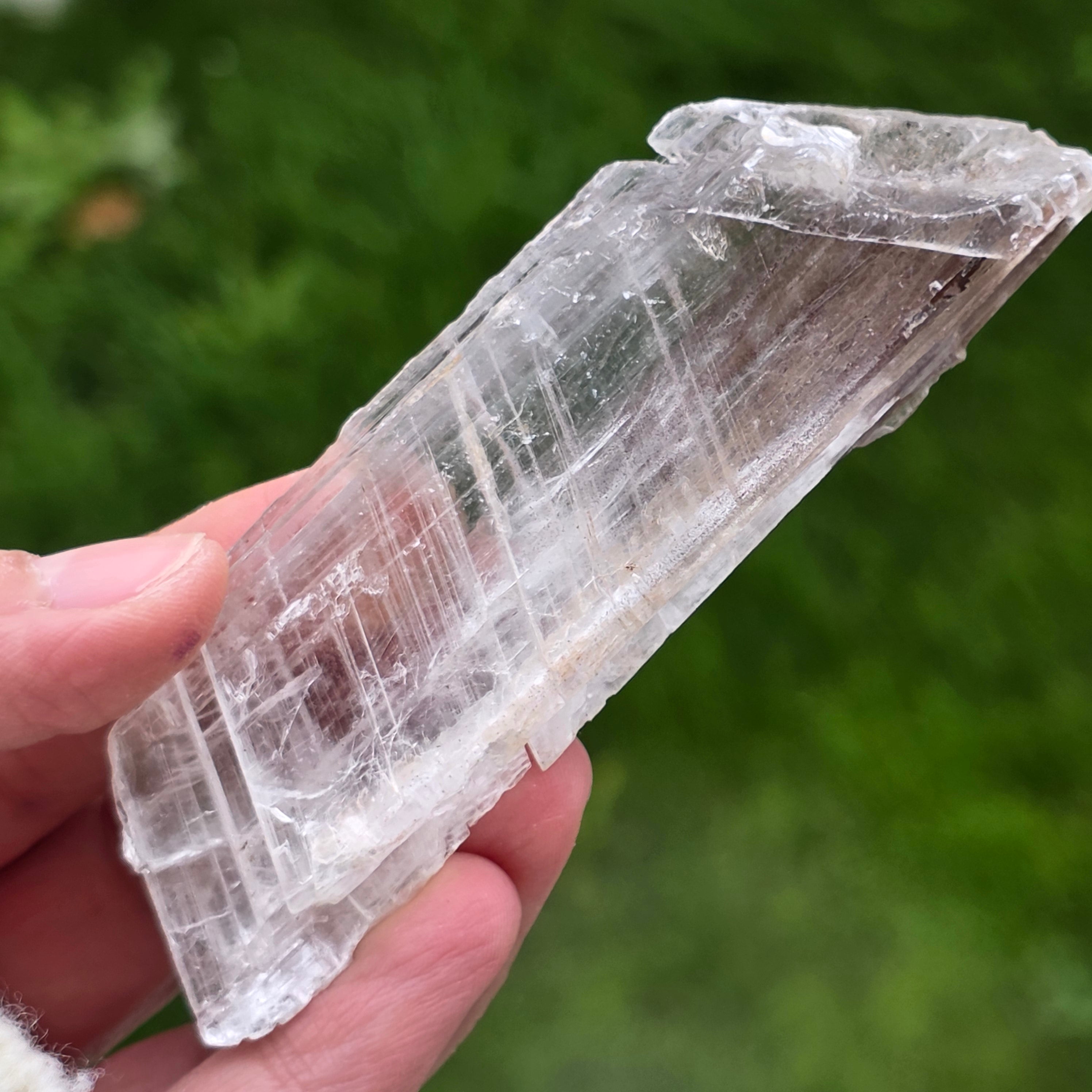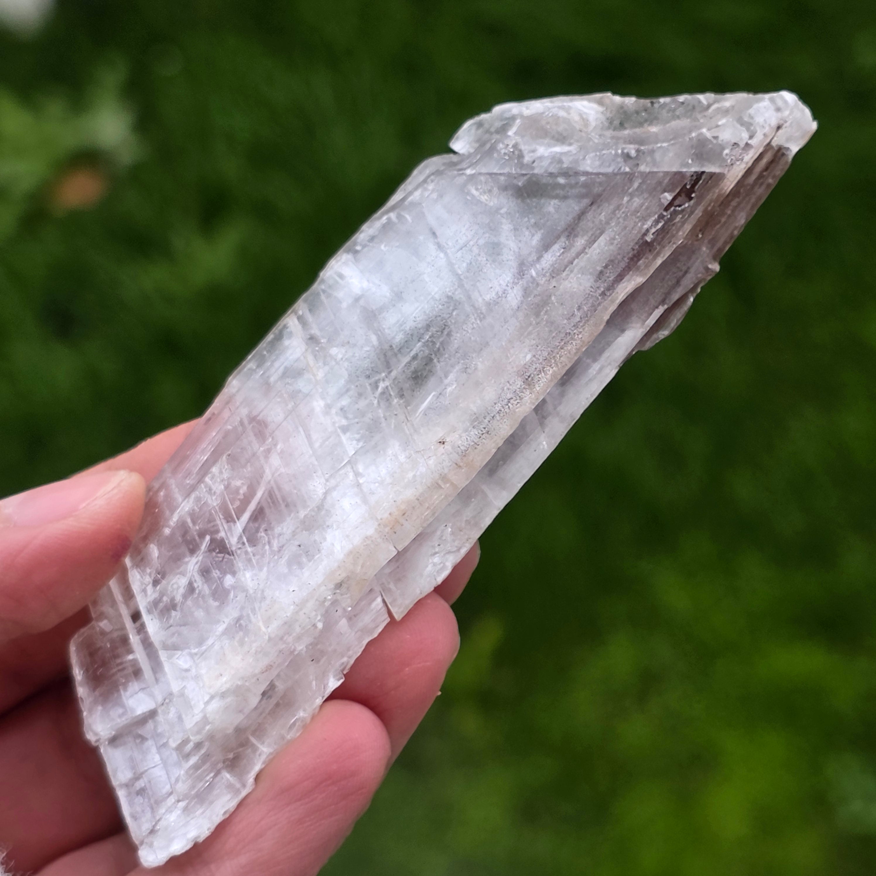 Selenit erscheint in Form von länglichen Kristallen oder durchscheinenden Platten, mit seidigem Glanz und feiner Textur, während Hämatit in Form von Einschlüssen, Häutchen oder natürlichen Ablagerungenvorhanden ist, die die Kristallstruktur betonen und ihr visuelle Tiefe verleihen.