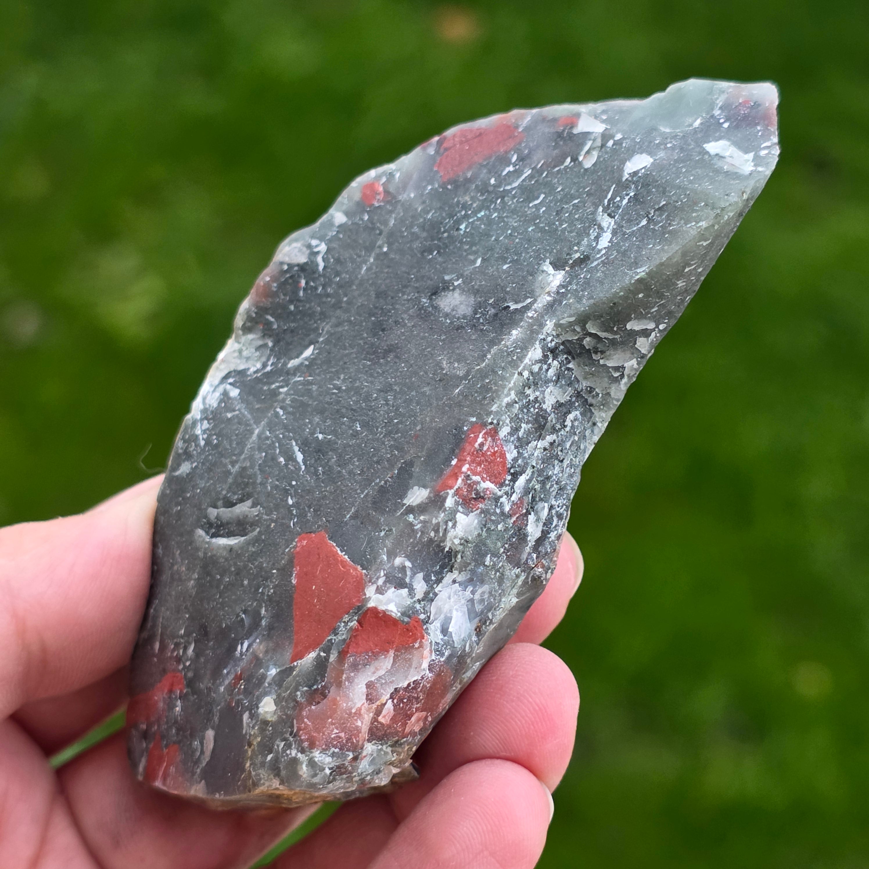 Dem Blutsteinjaspis werden Mut und Selbstvertrauen zugeschrieben. Es soll starke und mutige Energie liefern und Ihnen helfen, Ihre Ideen und Meinungen selbstbewusst auszudrücken.