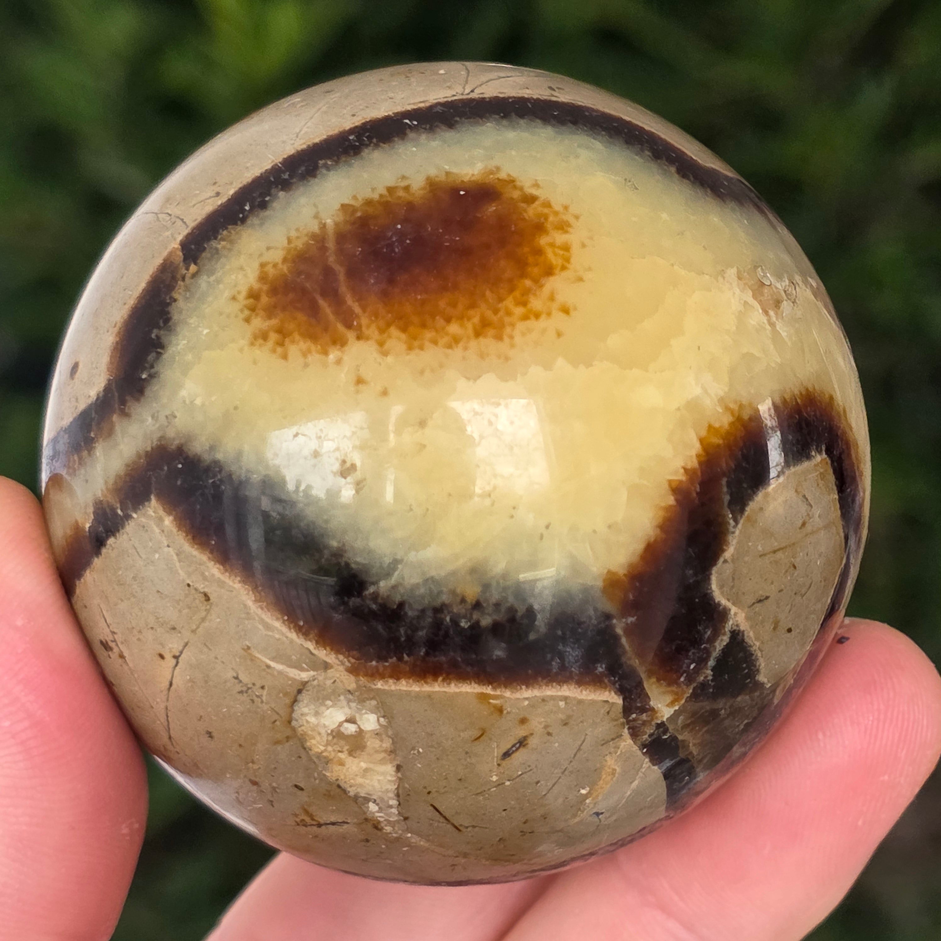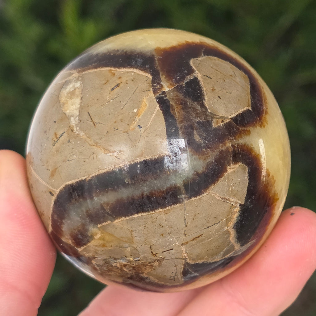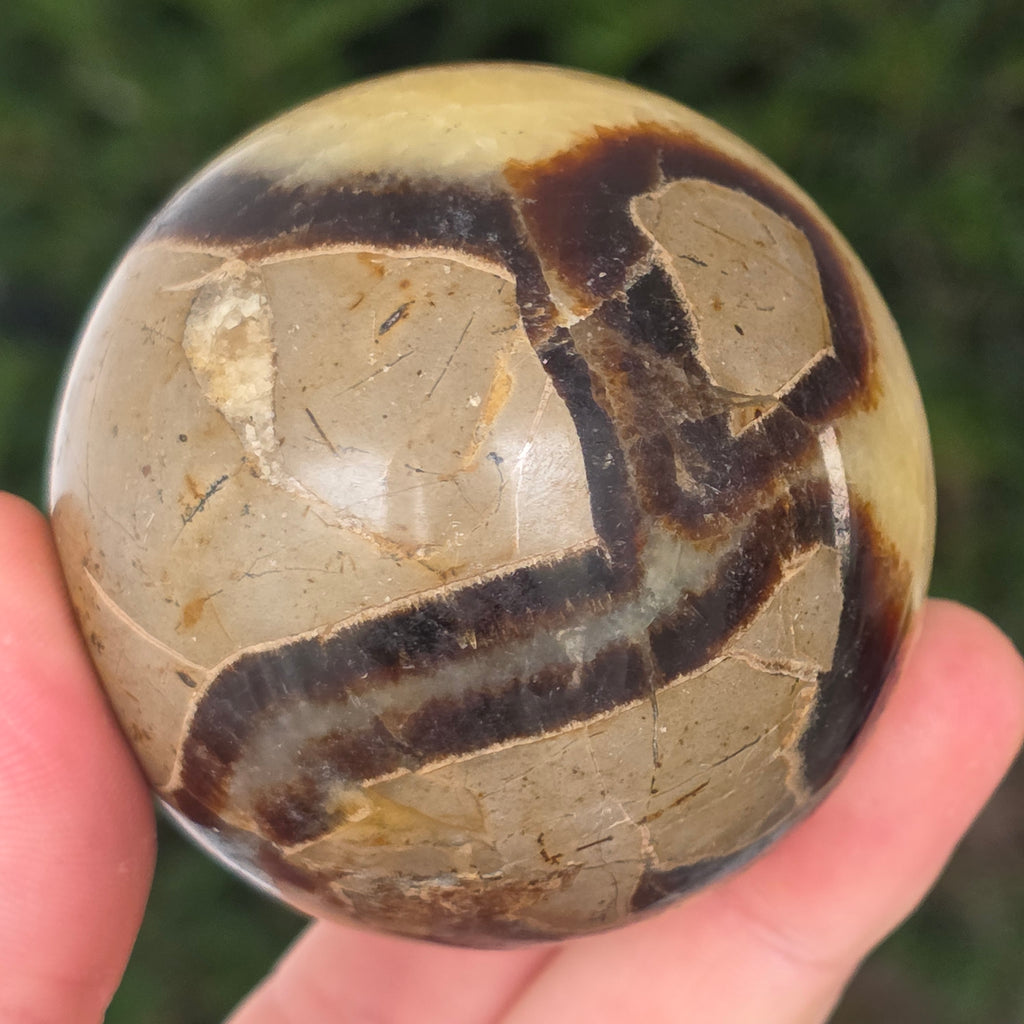 Septaria besteht aus Calcit, Limonit, Gips und Baryt, Mineralien, die in diesem Stein ein einzigartiges Spiel bilden und ihm ein besonderes Aussehen verleihen.