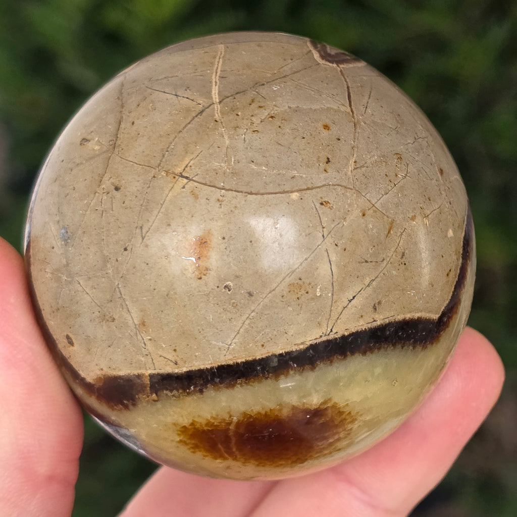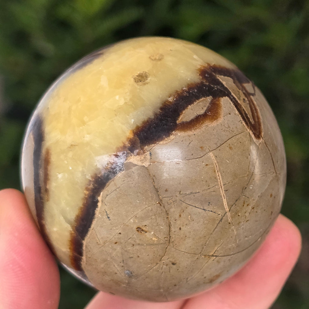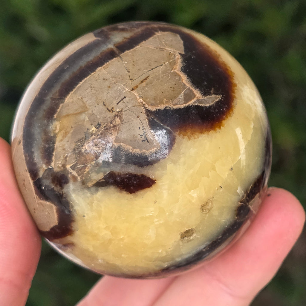 Septaria besteht aus Calcit, Limonit, Gips und Baryt, Mineralien, die in diesem Stein ein einzigartiges Spiel bilden und ihm ein besonderes Aussehen verleihen.