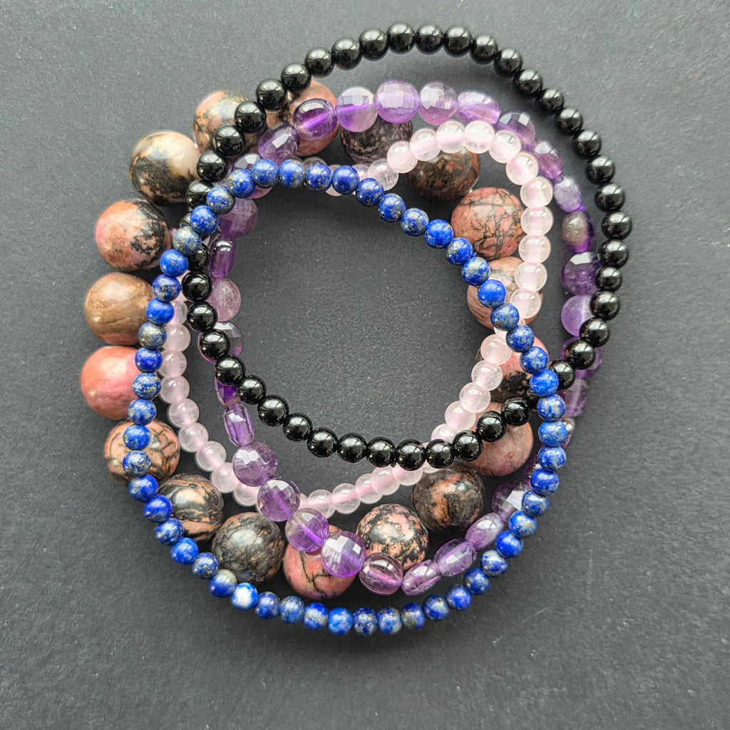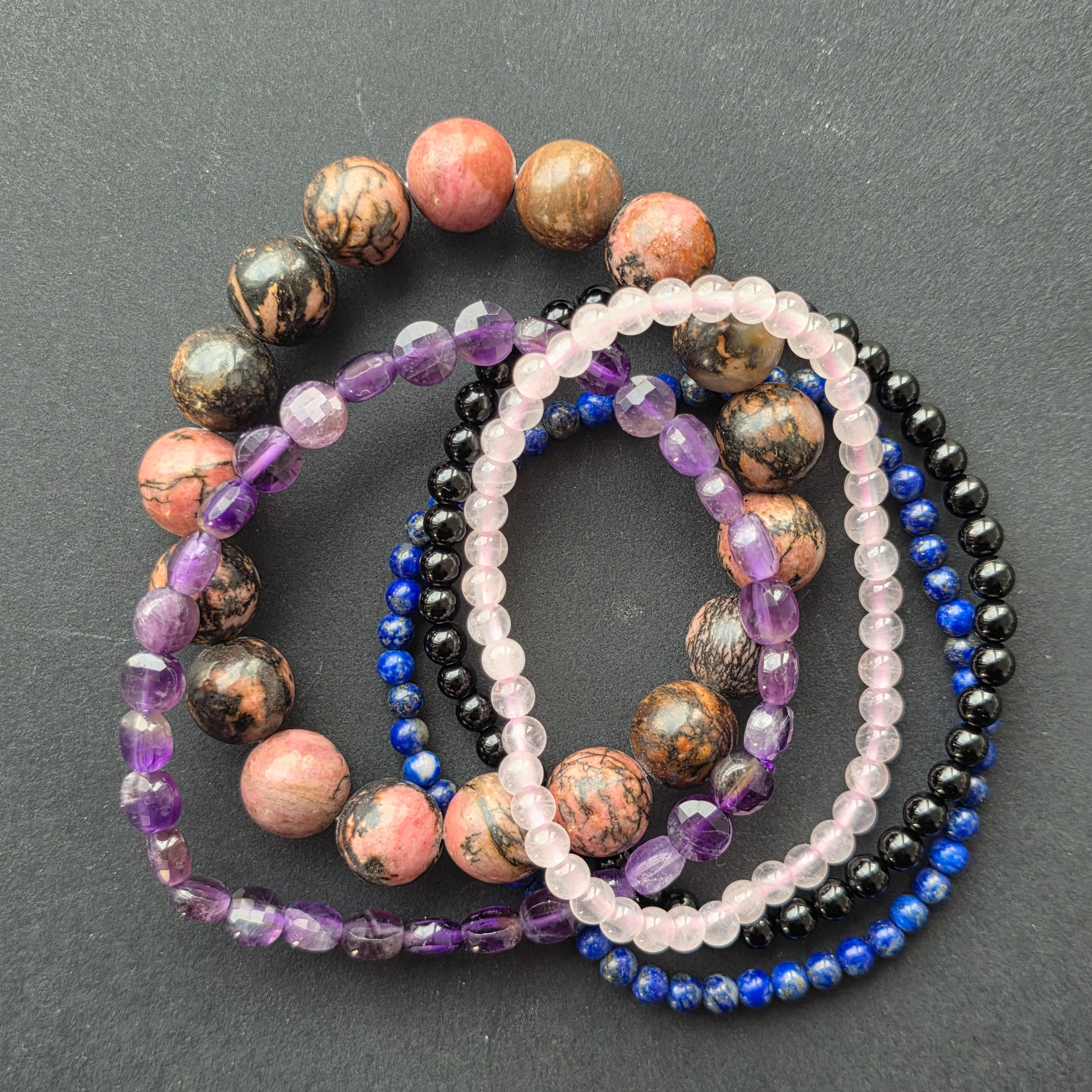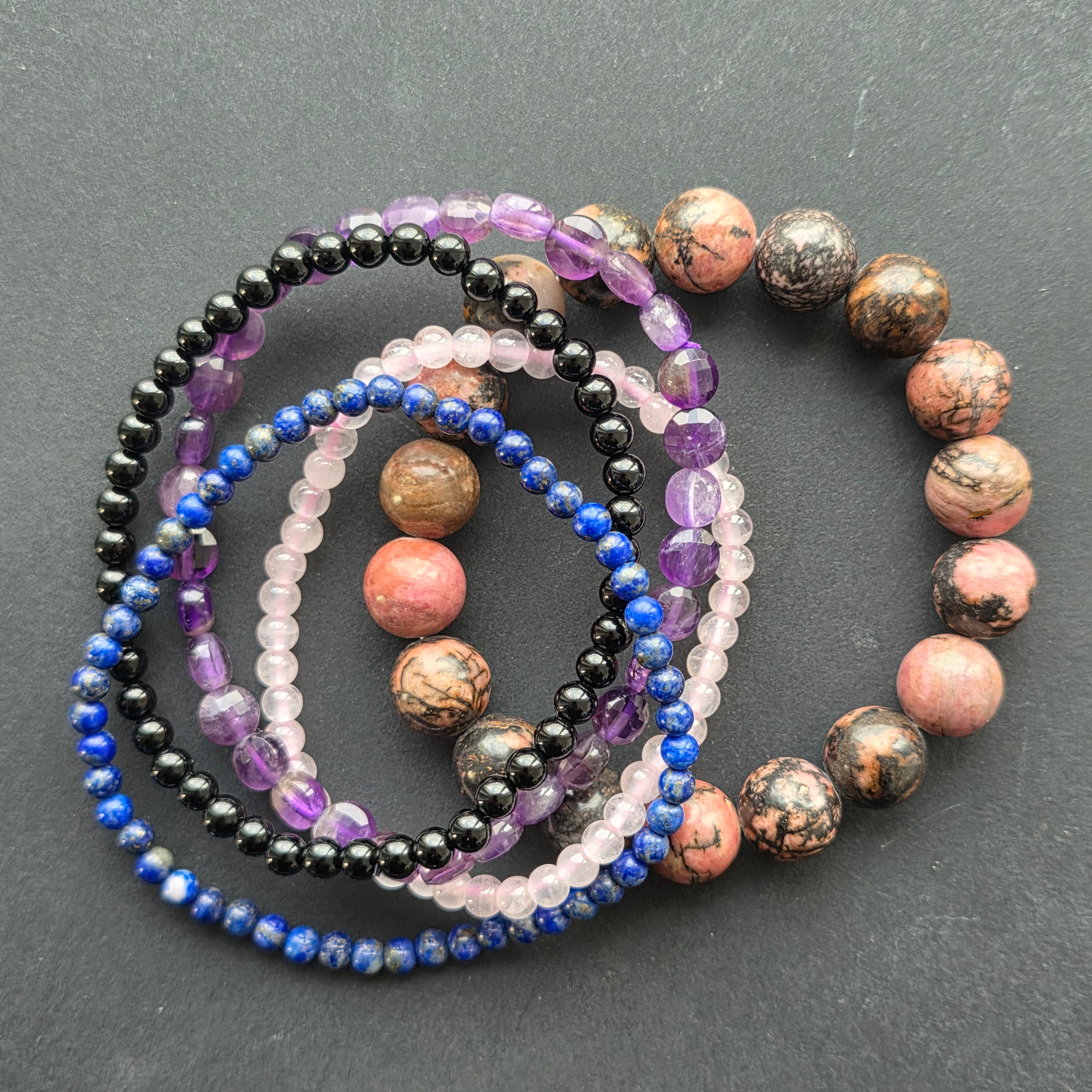 Rhodonit mit 10 mm ist das emotionale Zentrum des Sets — ein Stein für emotionale Ausgeglichenheit, innere Heilung und reife Mitgefühlsfähigkeit, im direkten Einklang mit der loyalen und zärtlichen Natur der Stier-Frau.
