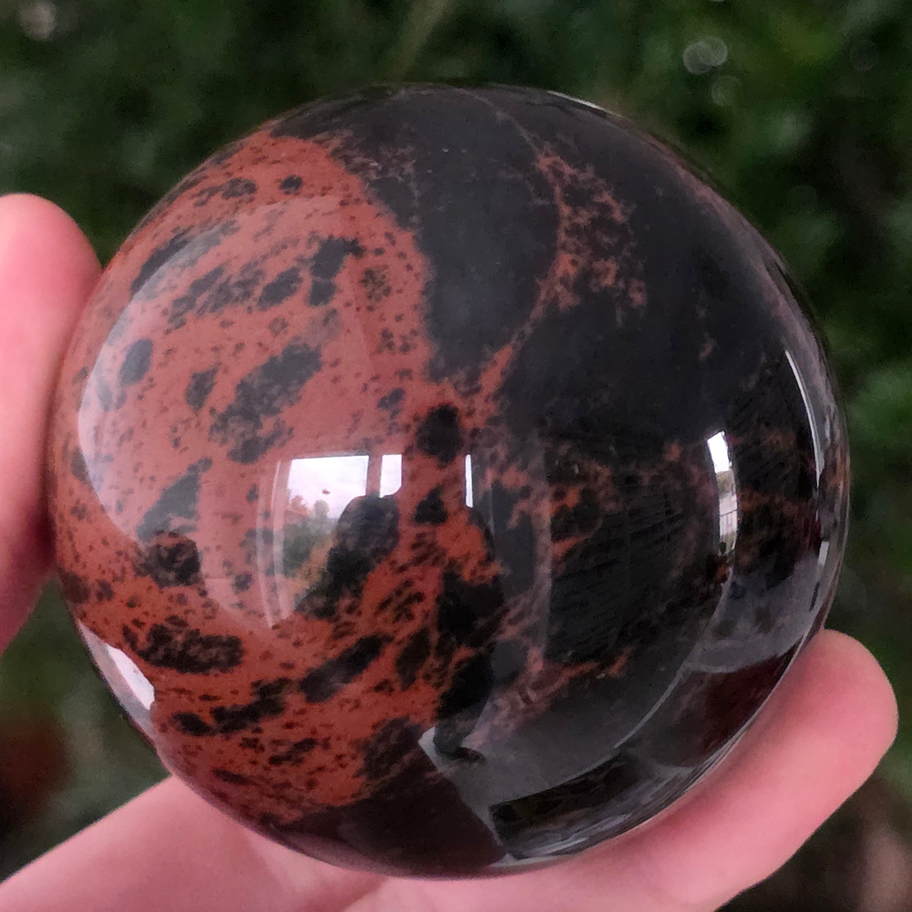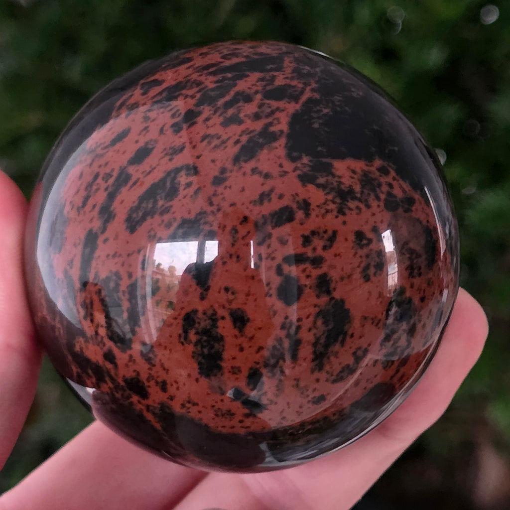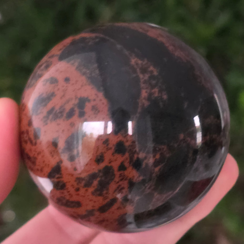 Lasă-te inspirat de forța liniștită a Pământului prin această sferă din obsidian mahon.
