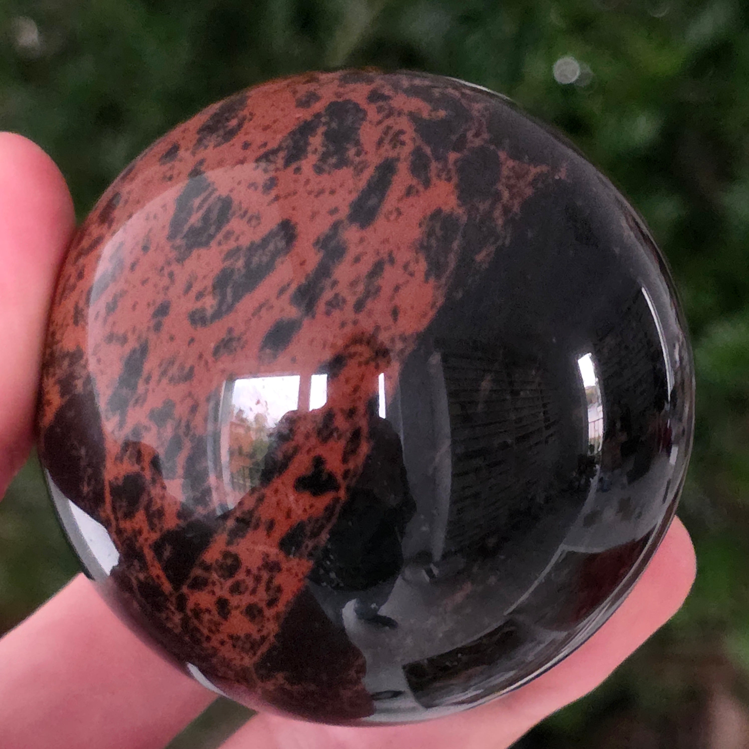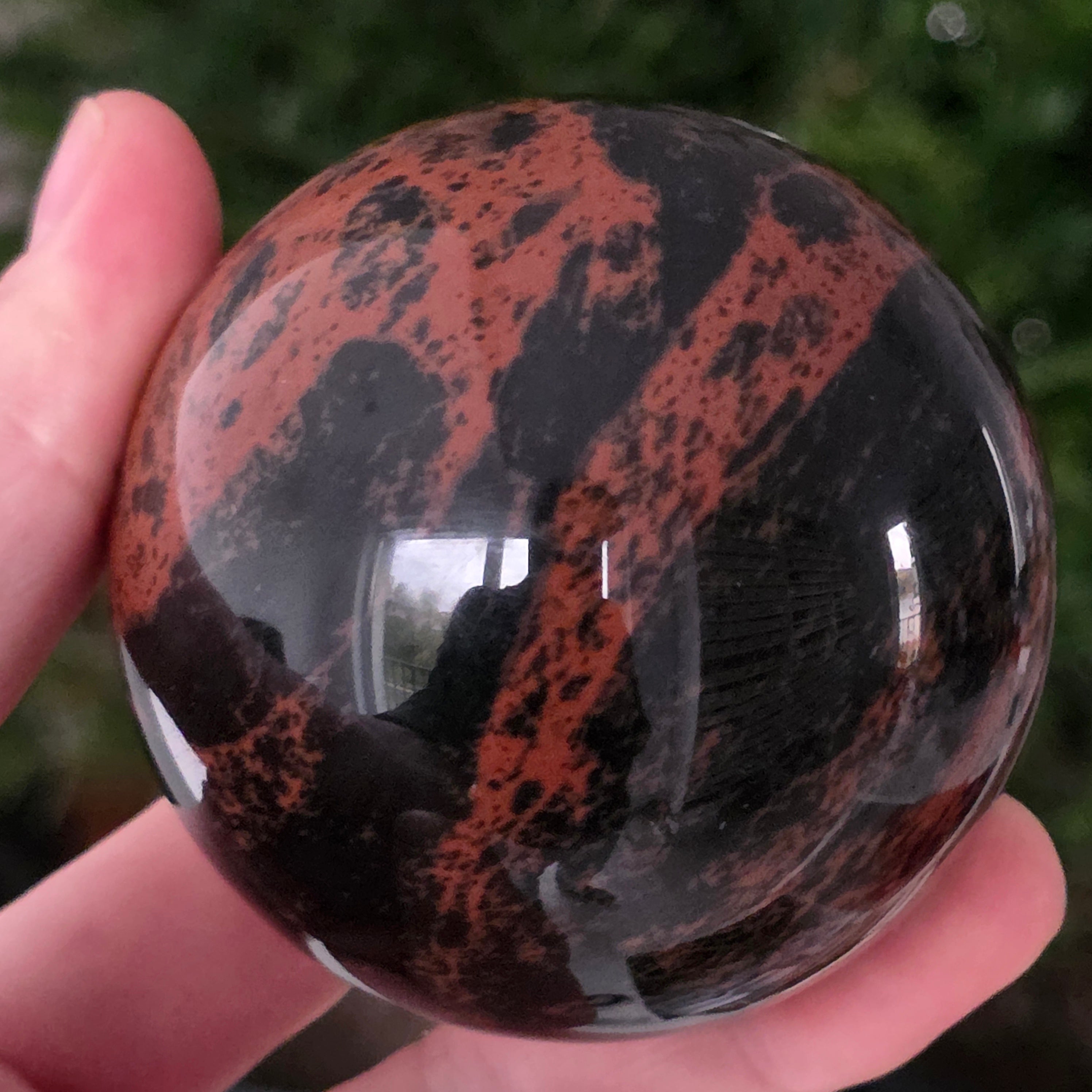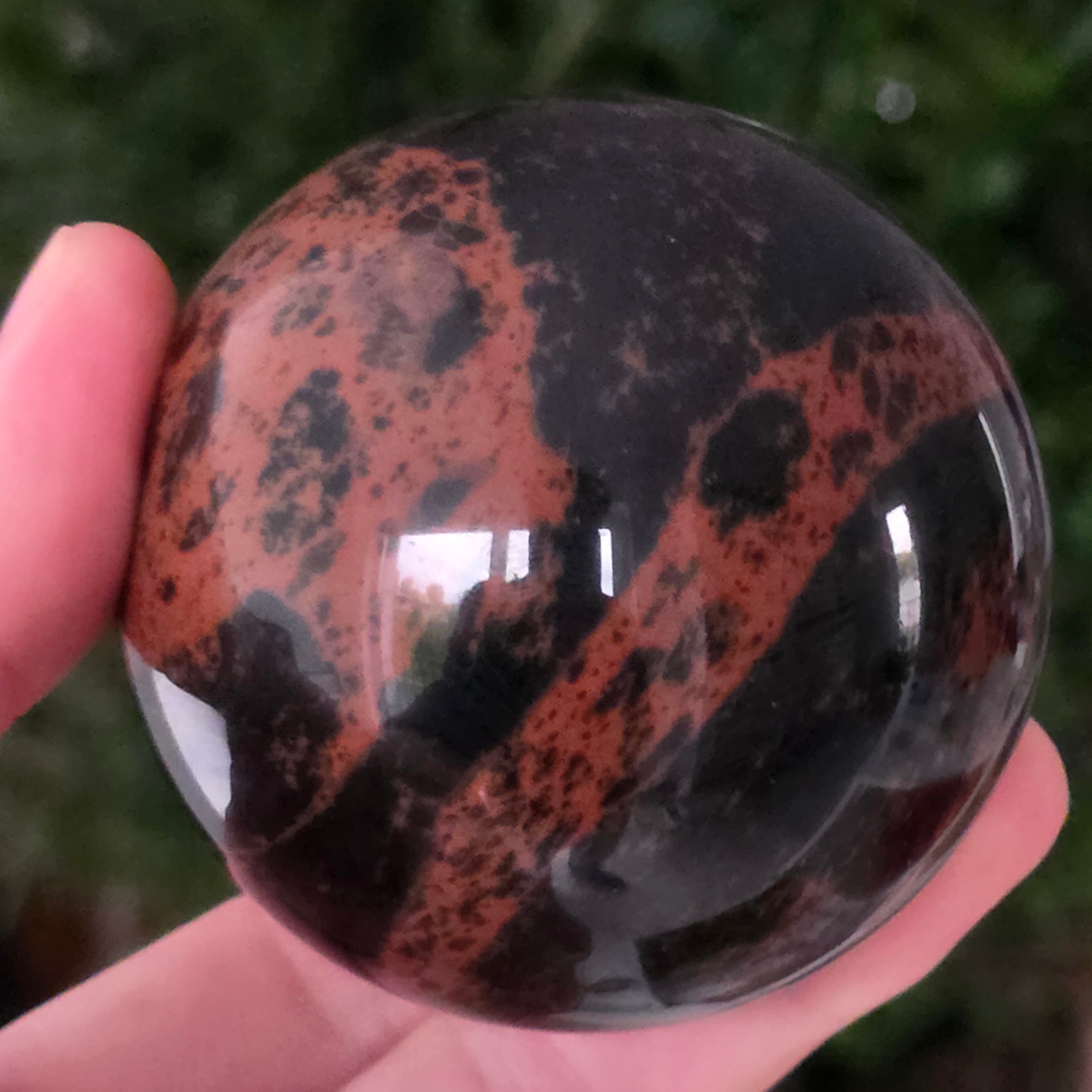 Lasă-te inspirat de forța liniștită a Pământului prin această sferă din obsidian mahon.