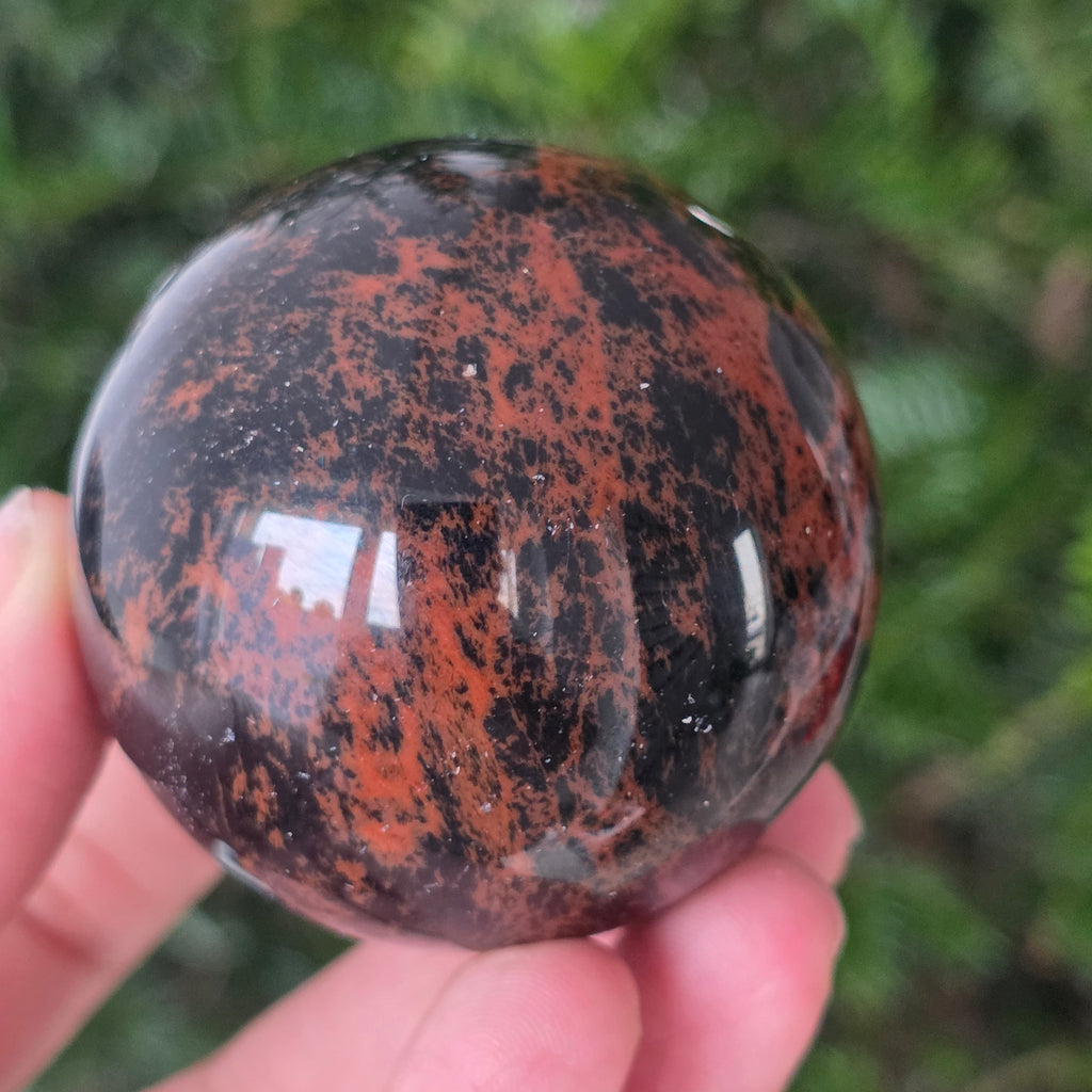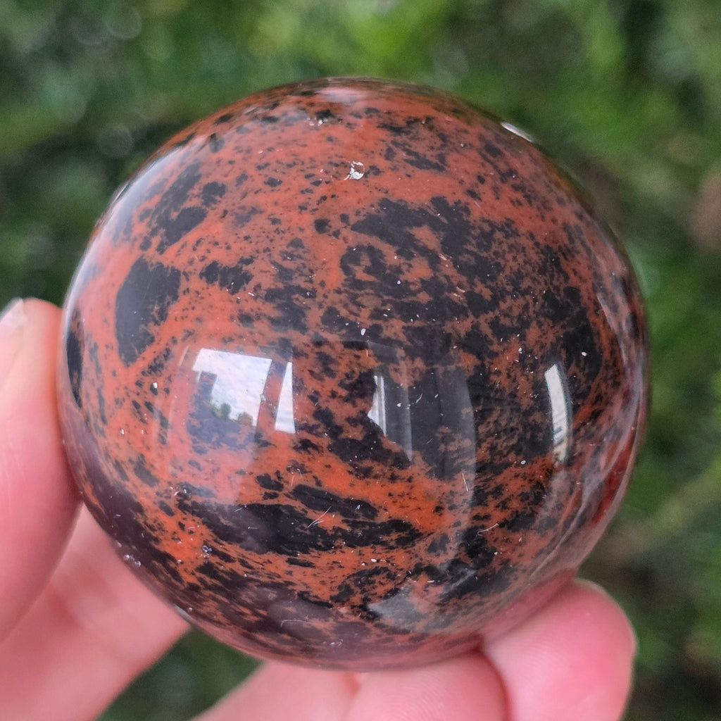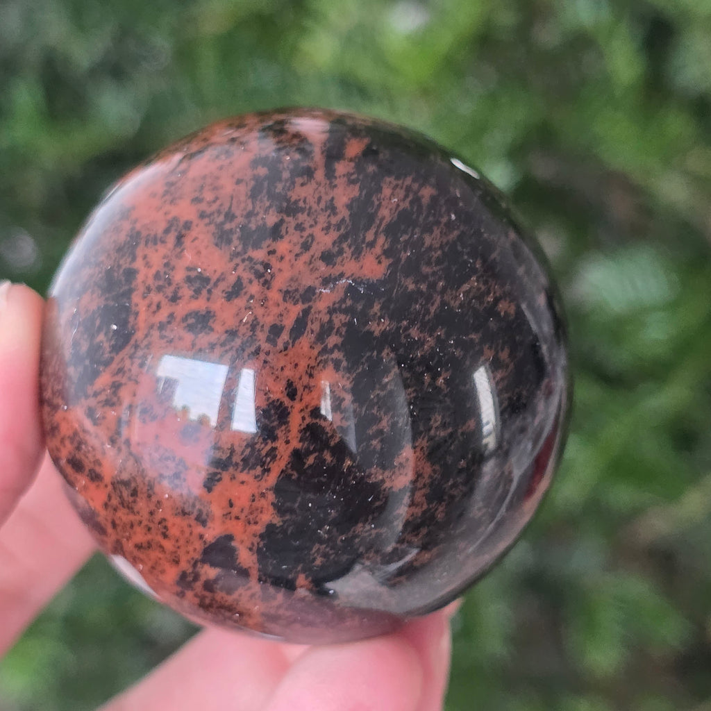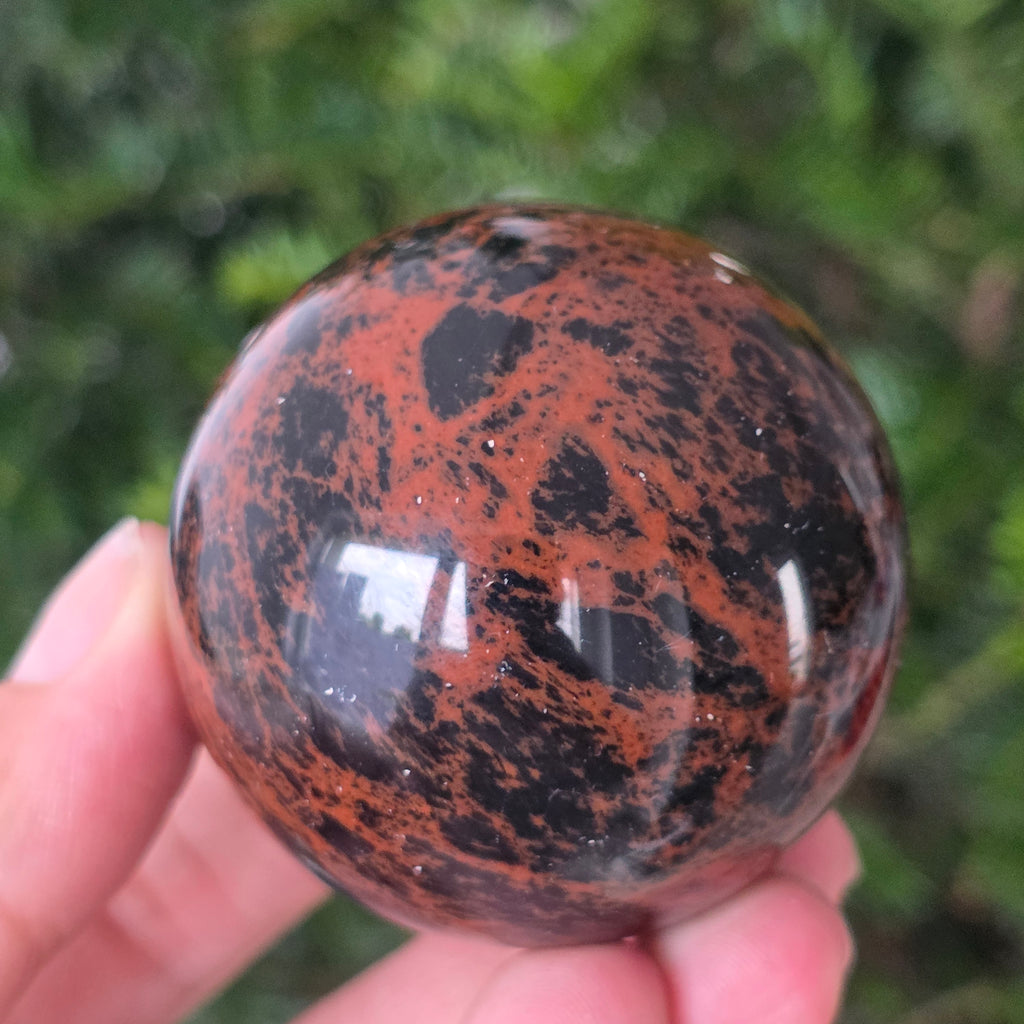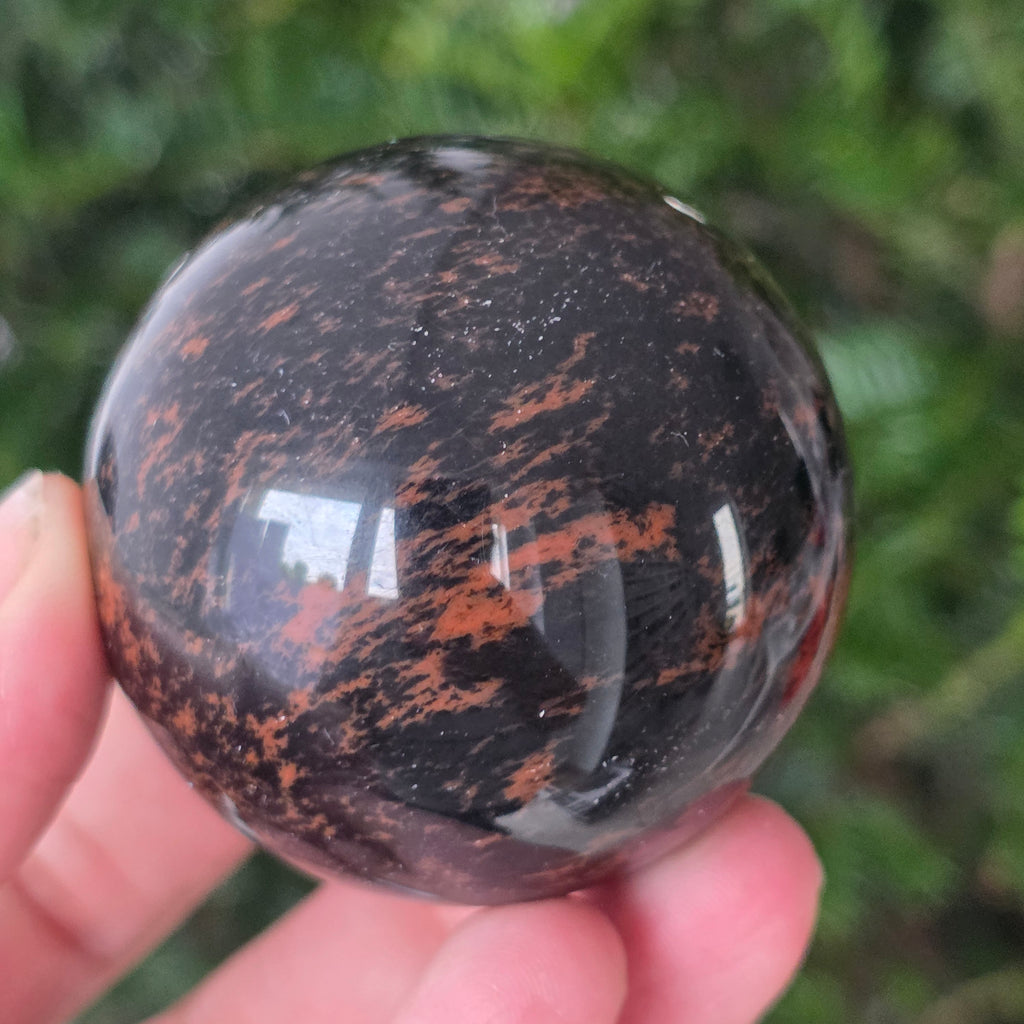 Lasă-te inspirat de forța liniștită a Pământului prin această sferă din obsidian mahon.