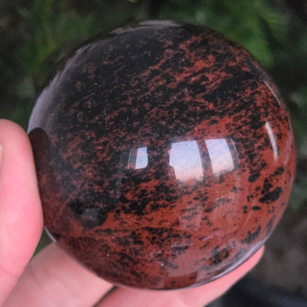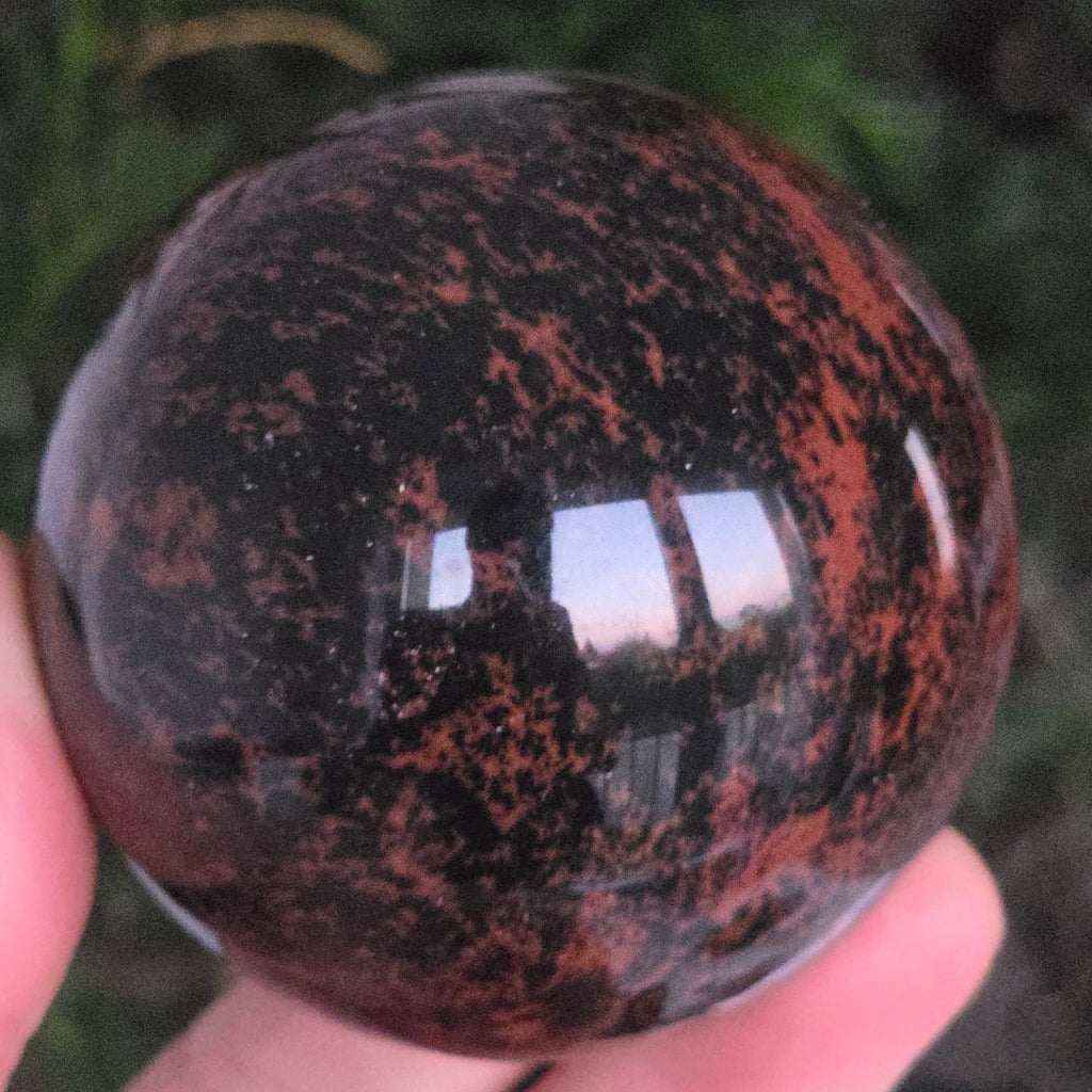Lasă-te inspirat de forța liniștită a Pământului prin această sferă din obsidian mahon.