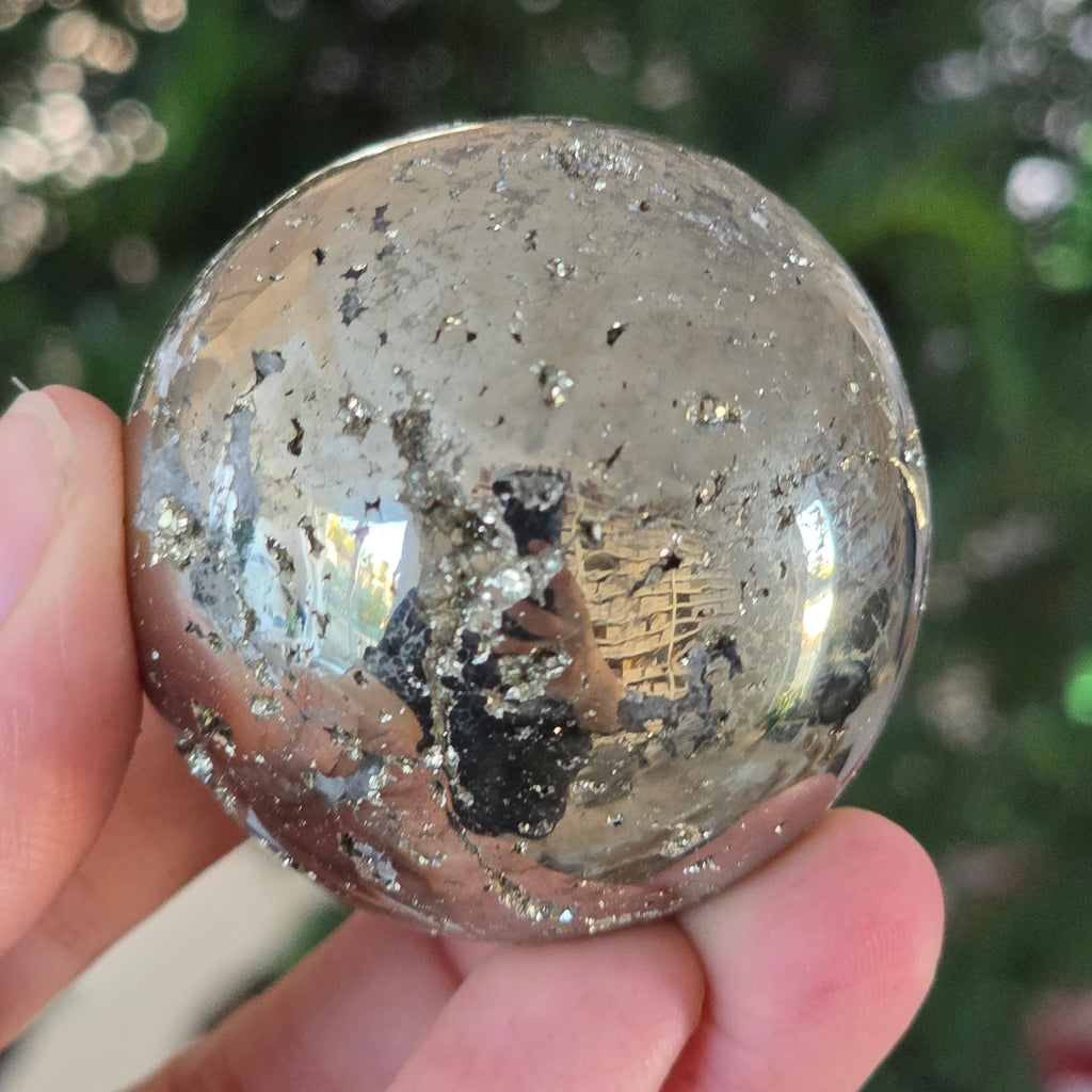 Sfera din pirita peruviană emană putere, abundență și claritate mentală. Fiecare reflex auriu amintește de lumina conștienței și de forța interioară care transformă intențiile în realitate. O piesă spectaculoasă, potrivită atât pentru colecționari, cât și ca obiect decorativ cu energie vibrantă.
