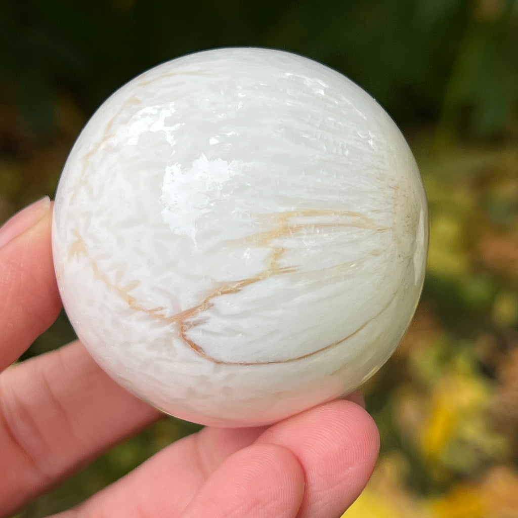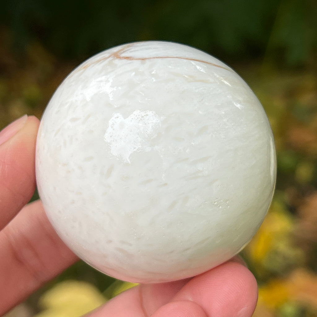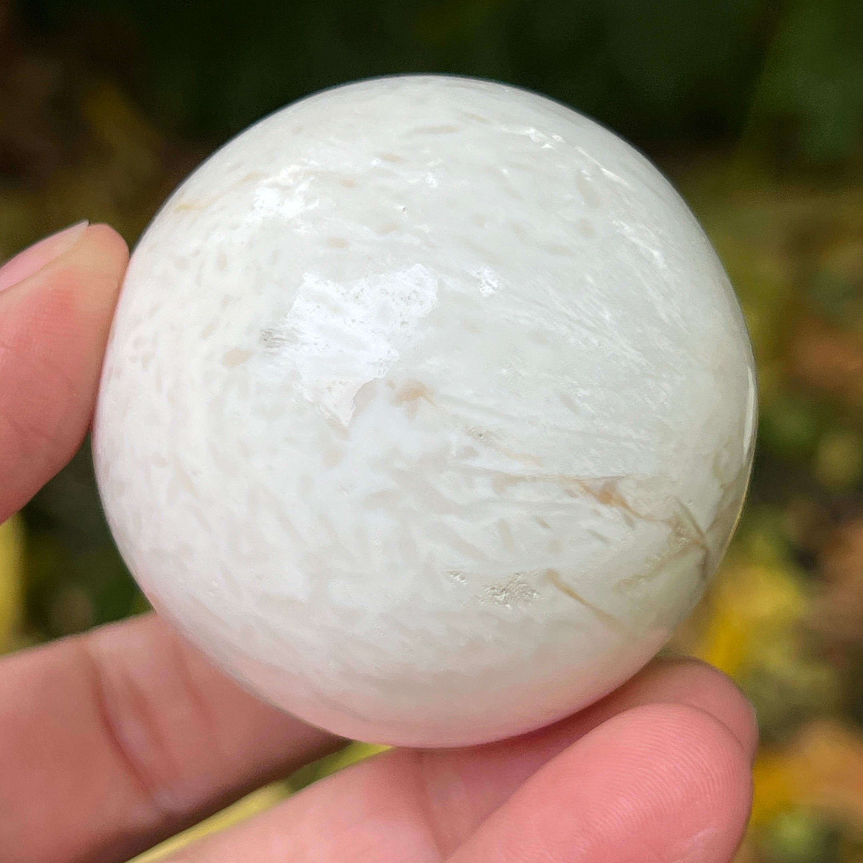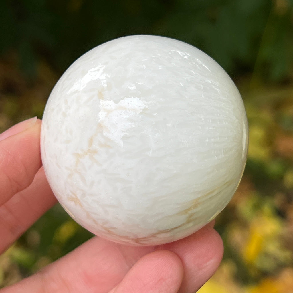 Scolecitul este o piatră delicată și luminoasă, aparținând familiei zeoliților, recunoscută pentru structura sa fină, fibros-radială și strălucirea mătăsoasă. De obicei albă sau crem, uneori cu nuanțe subtile de roz sau bej, această piatră emană o puritate aproape eterică, amintind de calmul lăuntric și de tăcerea din care se naște pacea.