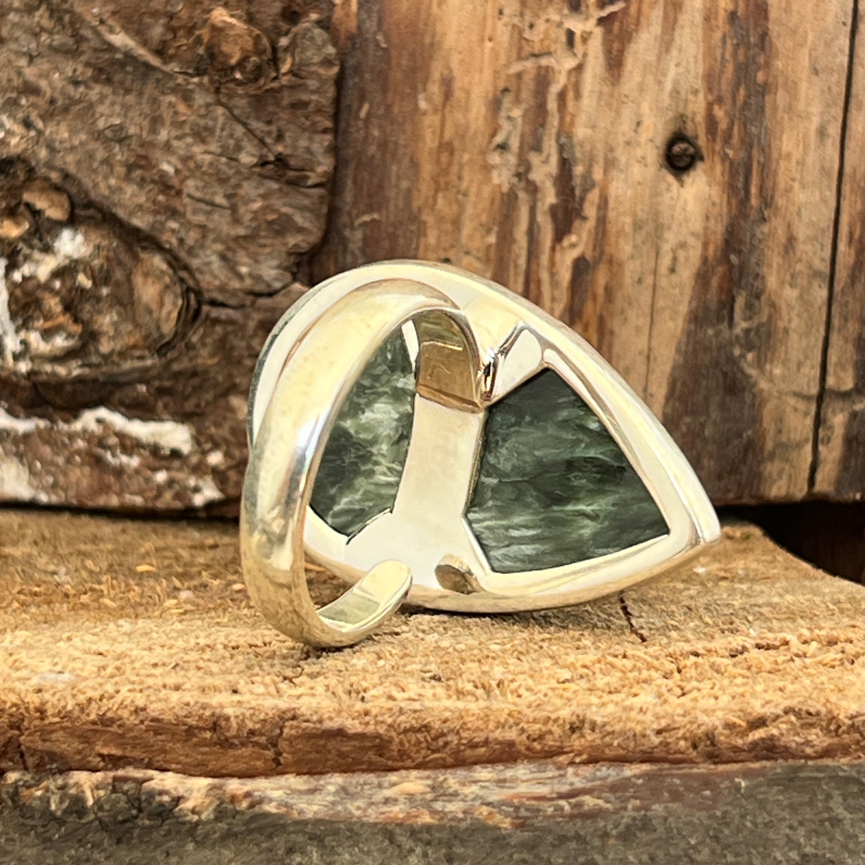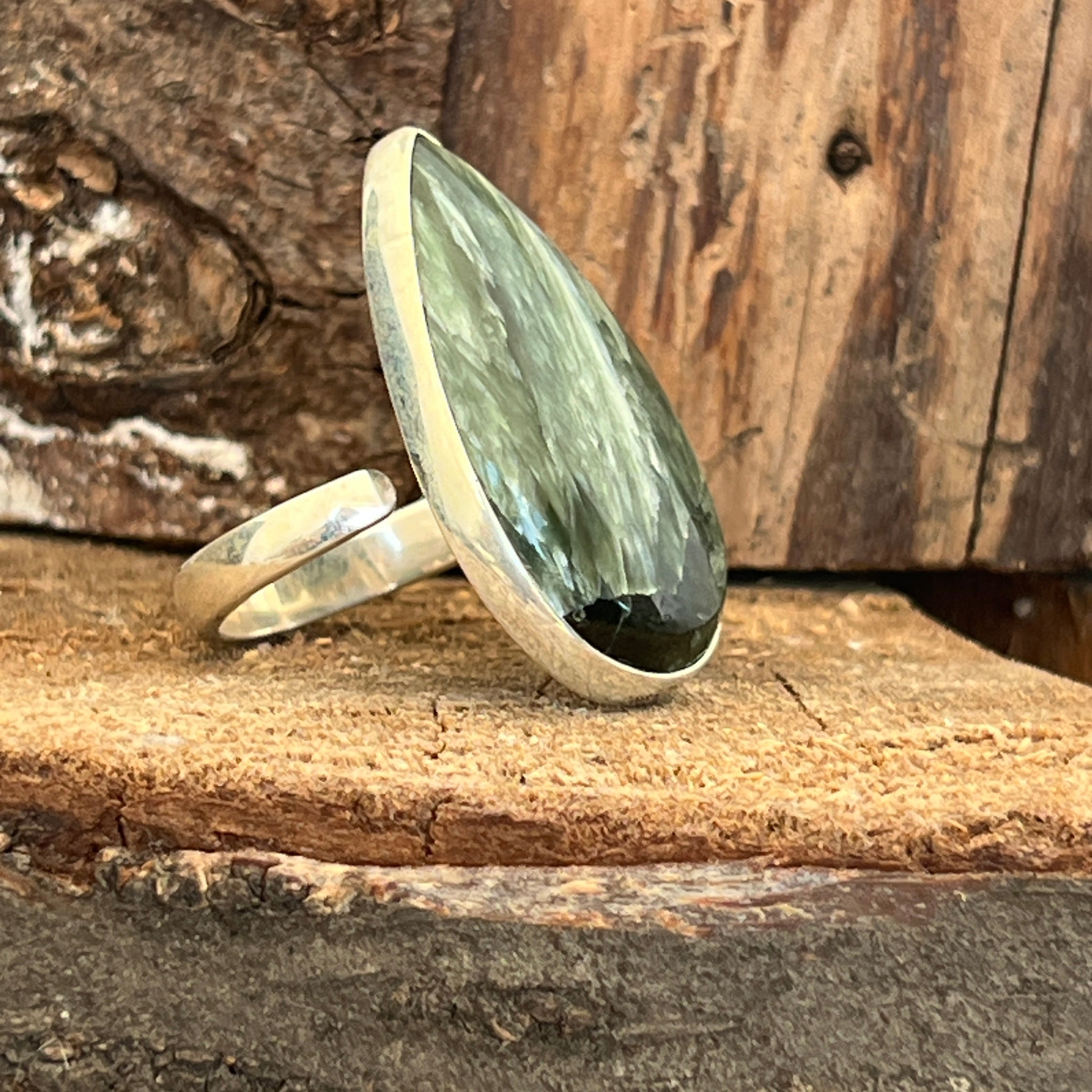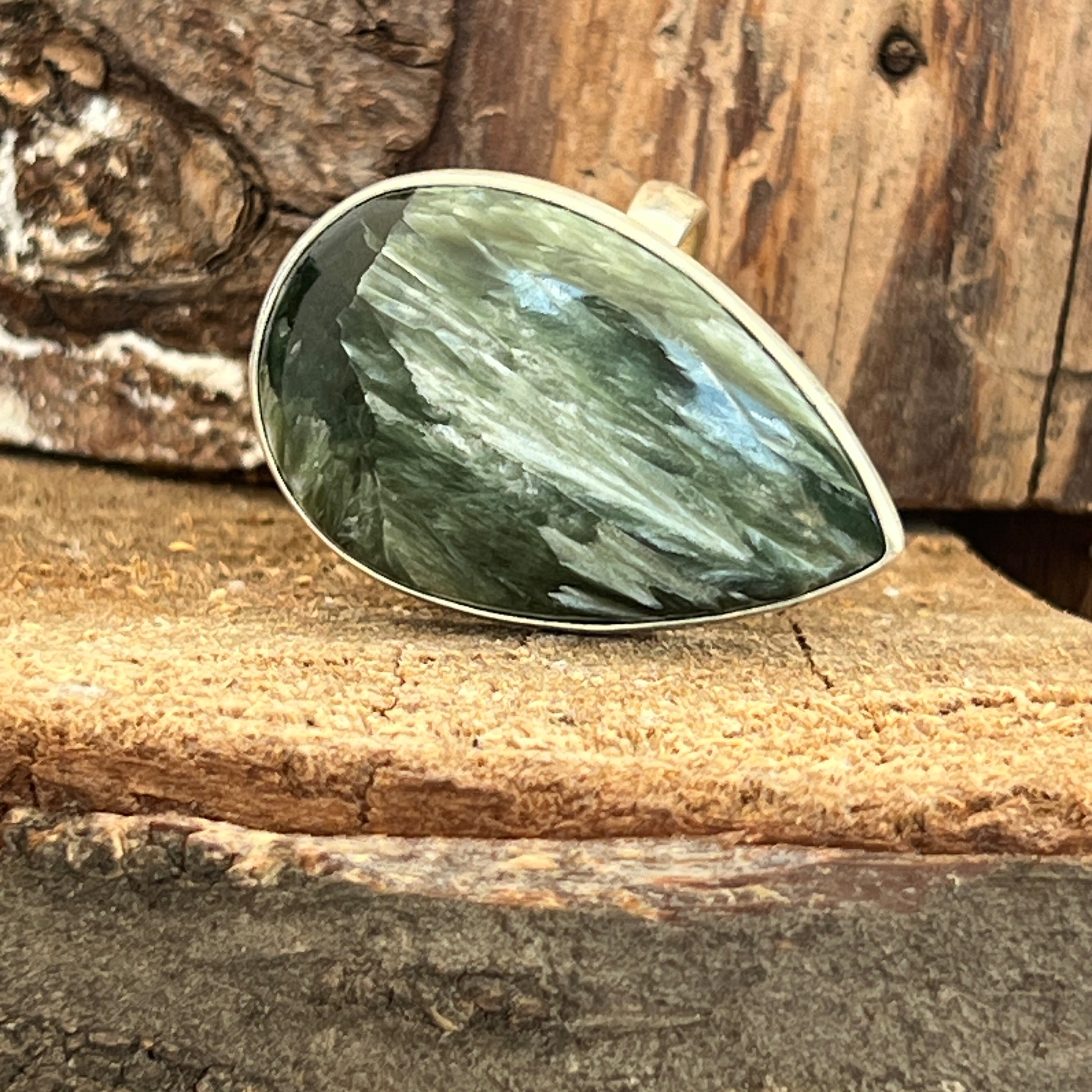 Serafinitul ist bekannt für seine subtilen grünen, harmonisch kombiniert mit silbernen oder weißen Streifen, die den Flügeln eines Engels ähneln. Diese Kombination von Farben und natürlichen Mustern erzeugt ein zartes und charmantes Erscheinungsbild im Schmuck. Serafinitus wird oft mit engelhaften und spirituellen Energien verbunden, die als Stein des göttlichen Lichts und der Liebe angesehen werden.