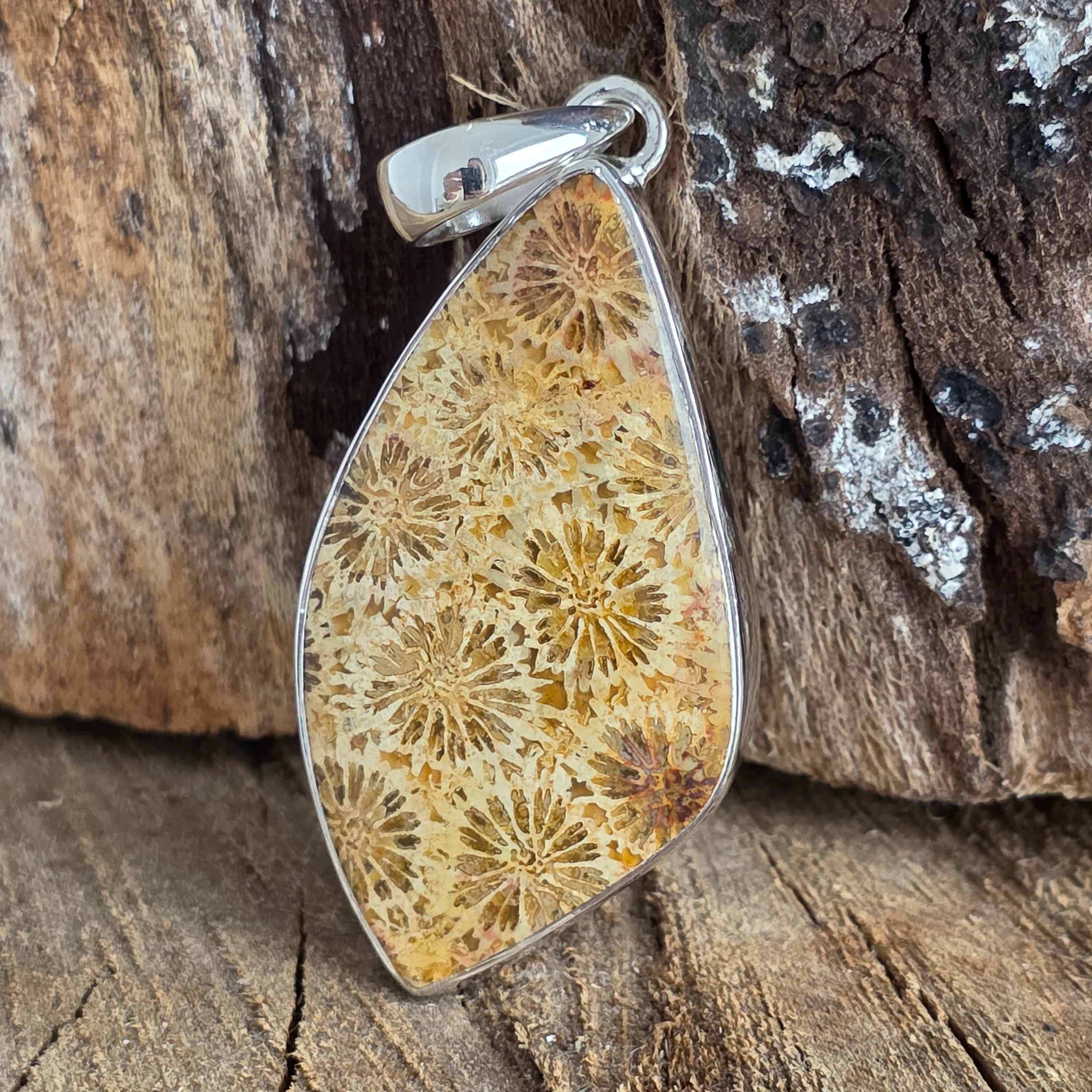 Silber versteinerte Korallenanhänger | Modell 1