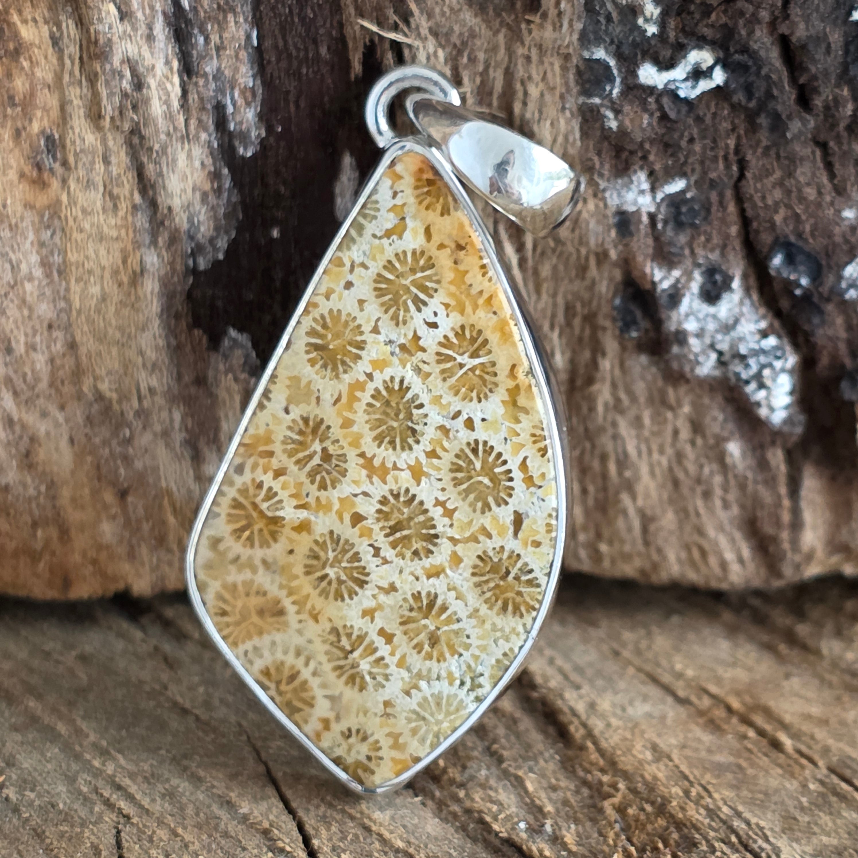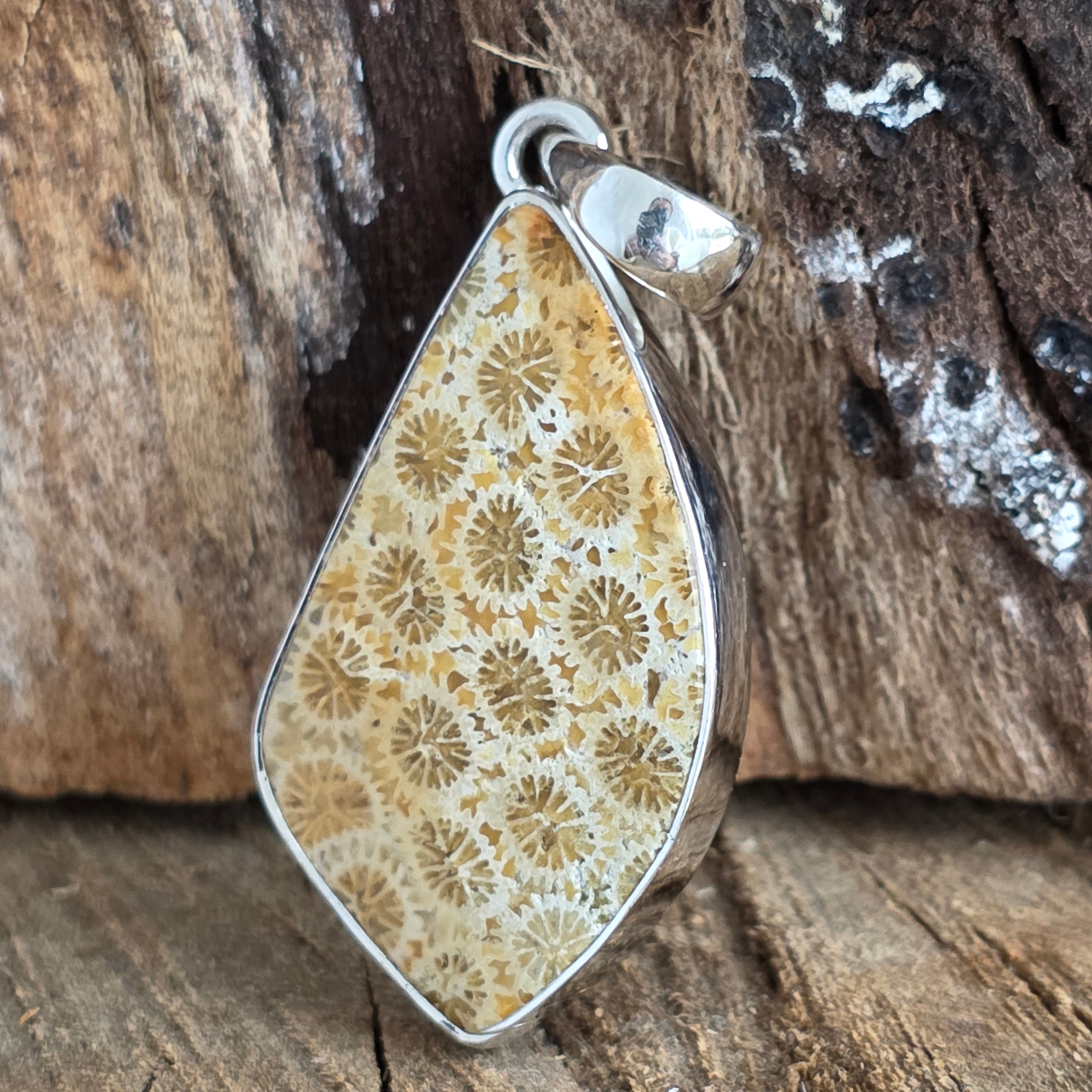 Rezensionen- Silber versteinerte Korallenanhänger | Modell 2