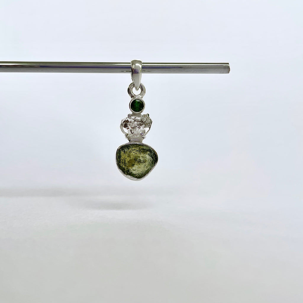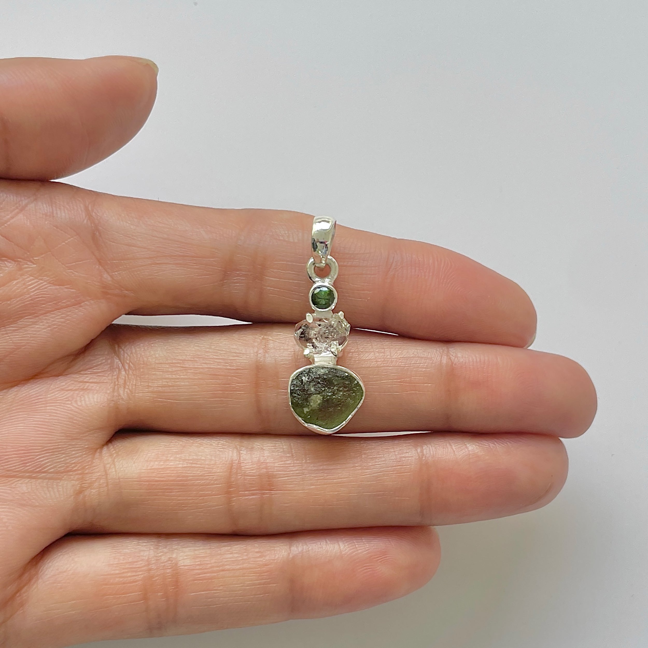 Rezensionen- Silberner Moldavit-Anhänger | Modell 7