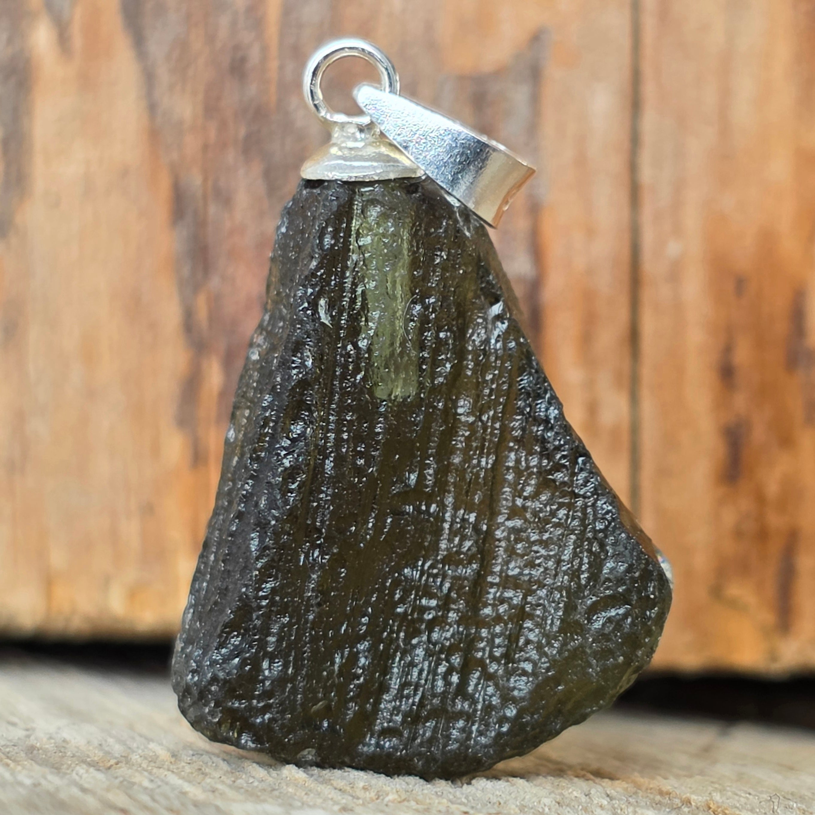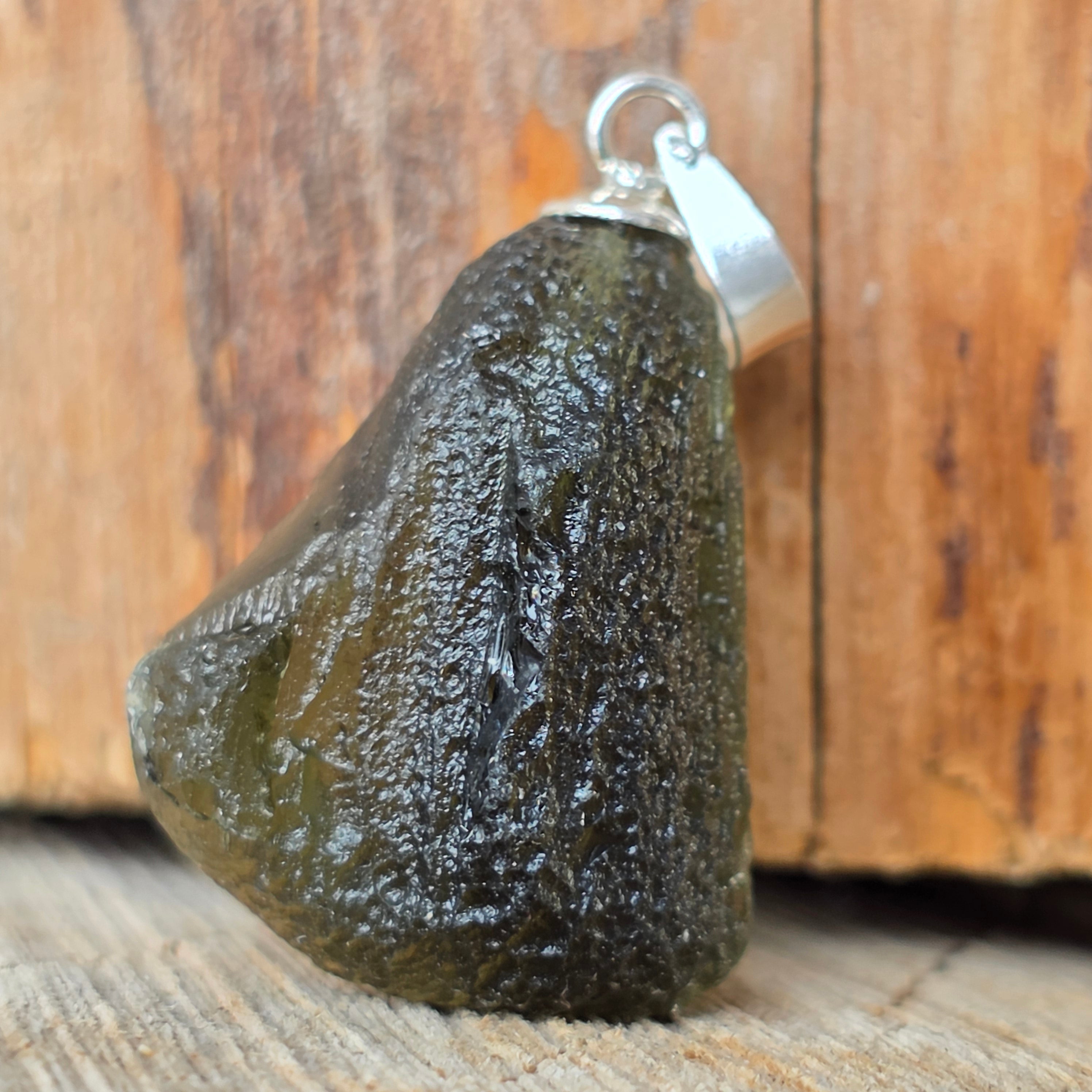 Beschreibung - Silberner Moldavit-Anhänger | Modell 8