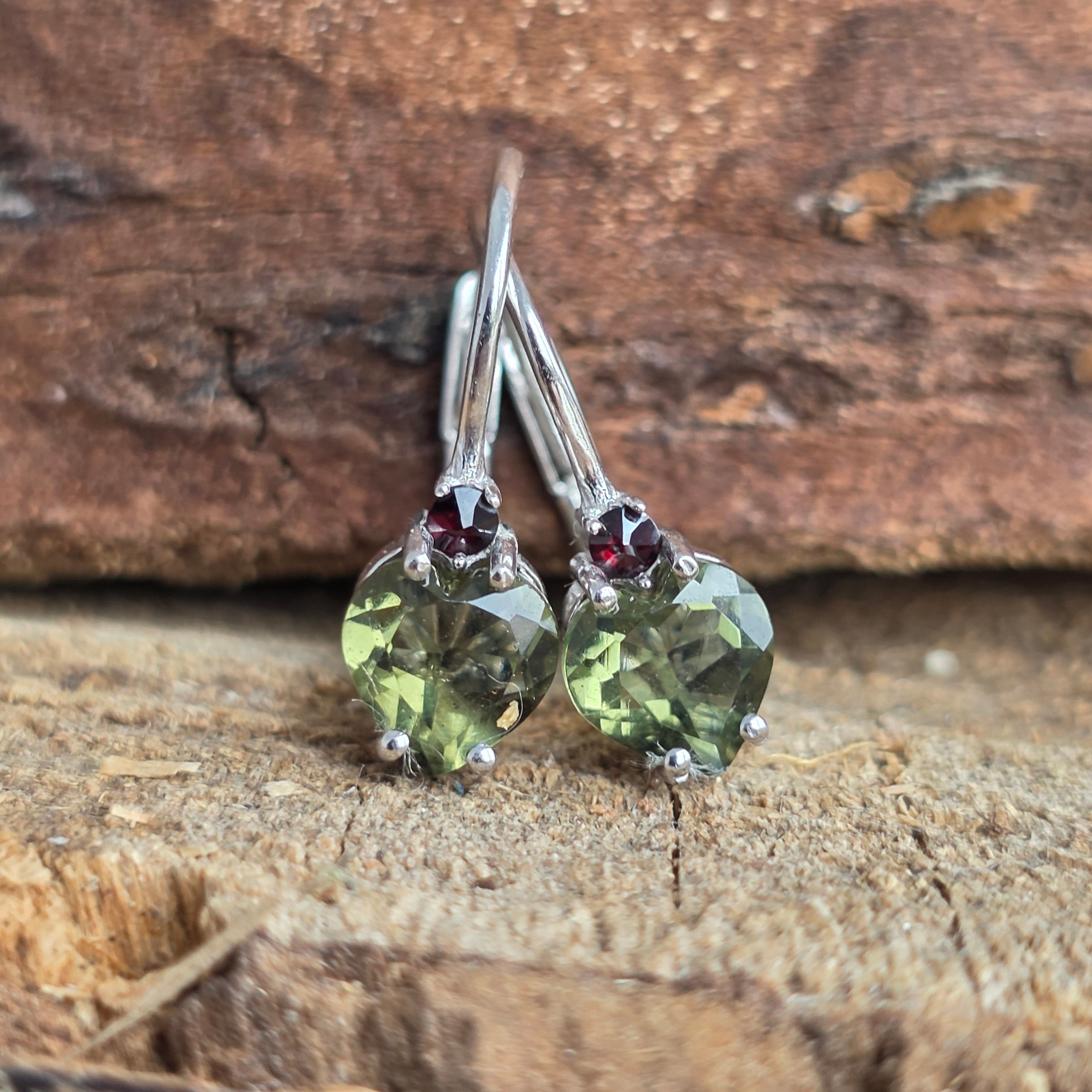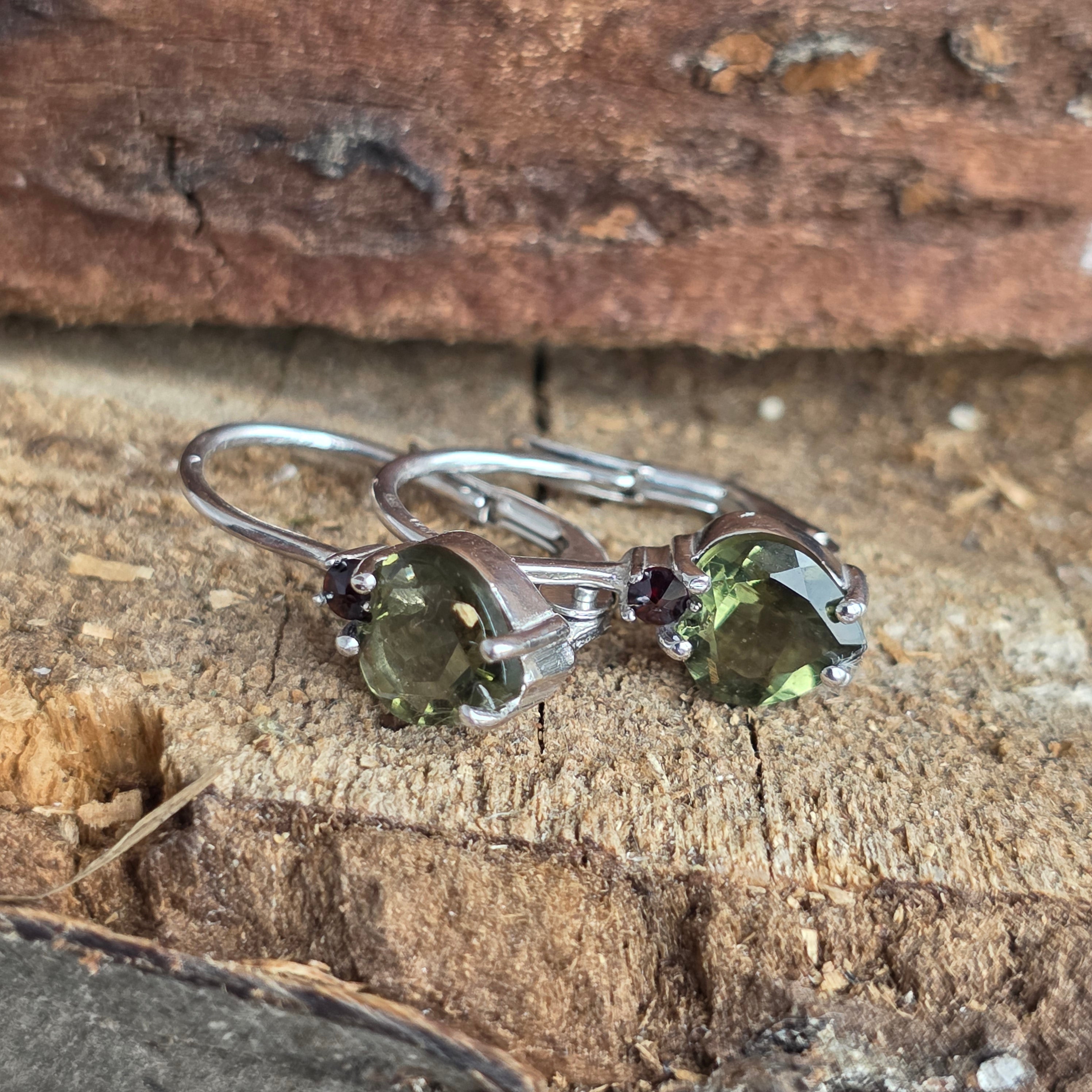 Beschreibung - Silberne Moldavit-Ohrringe | GRANAT