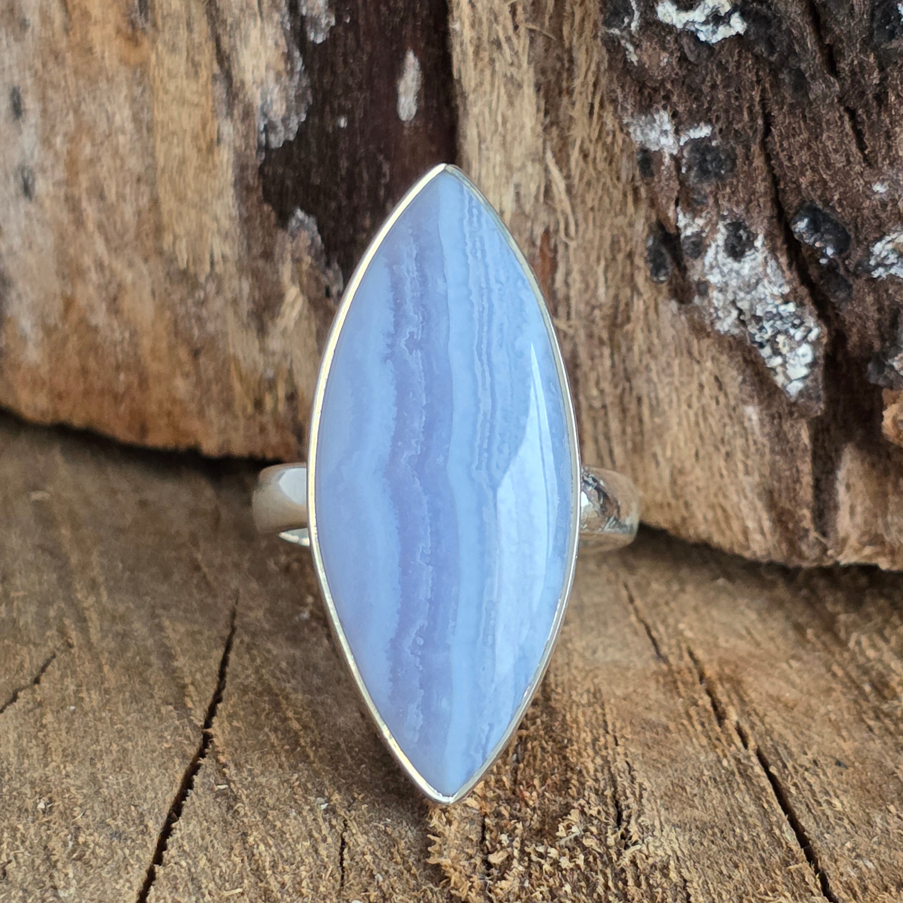Silberner Chalcedonblauer Spitzenring | Modell 1