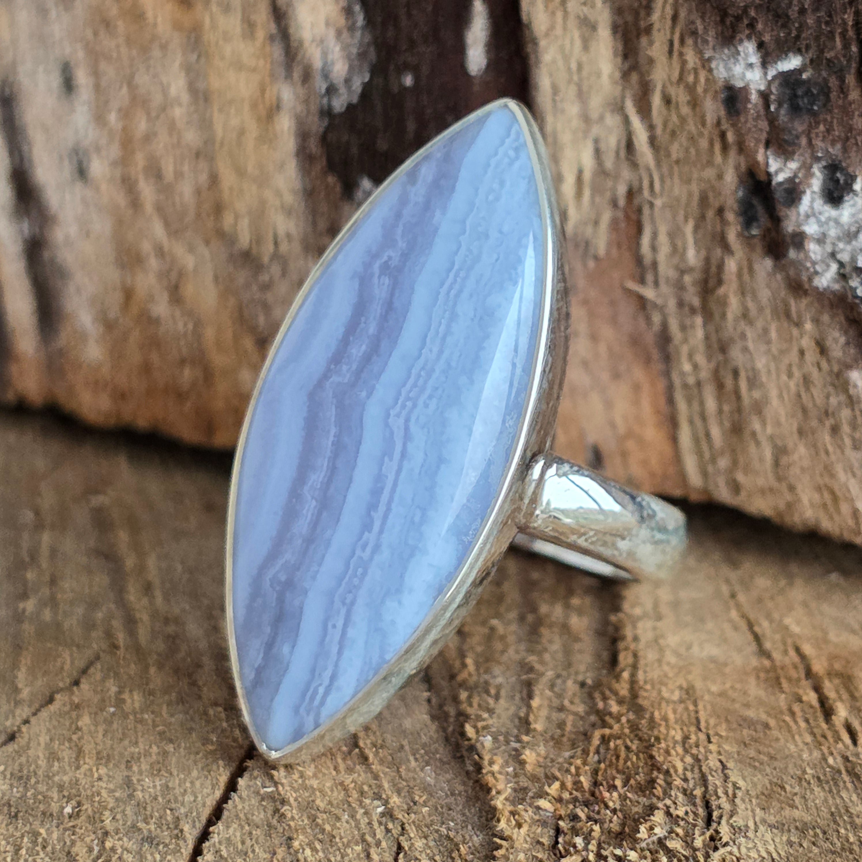 Rezensionen- Silberner Chalcedonblauer Spitzenring | Modell 1