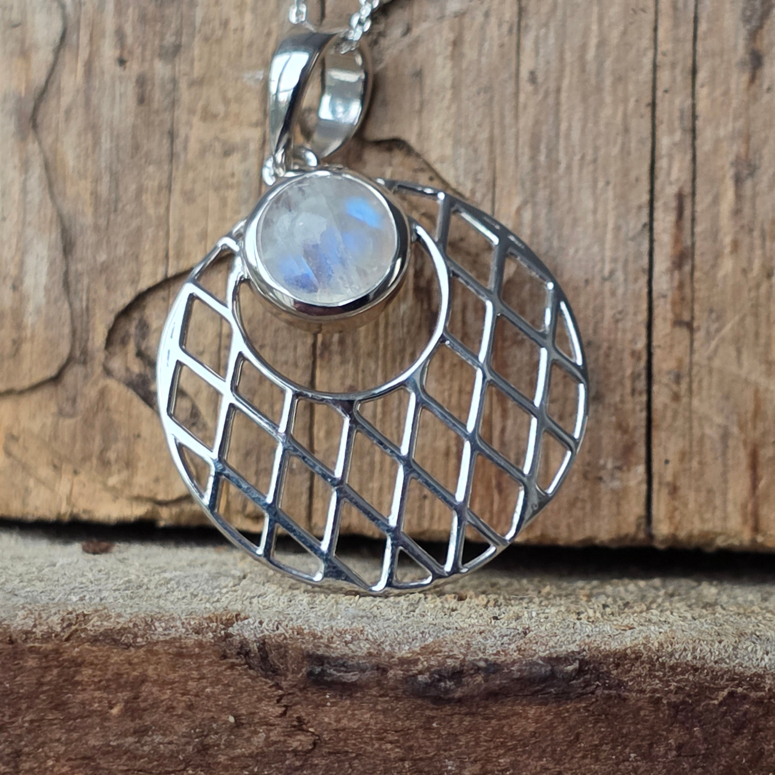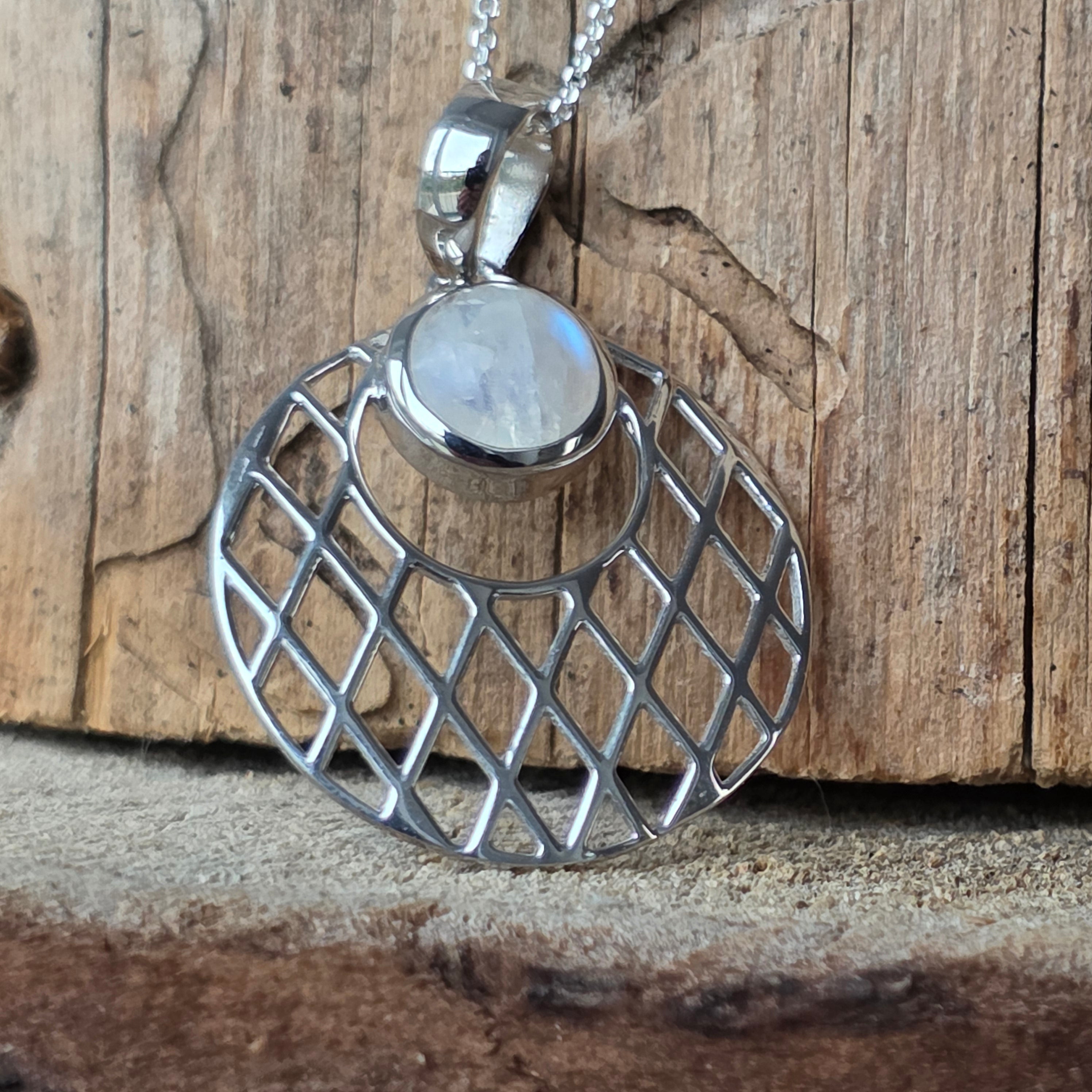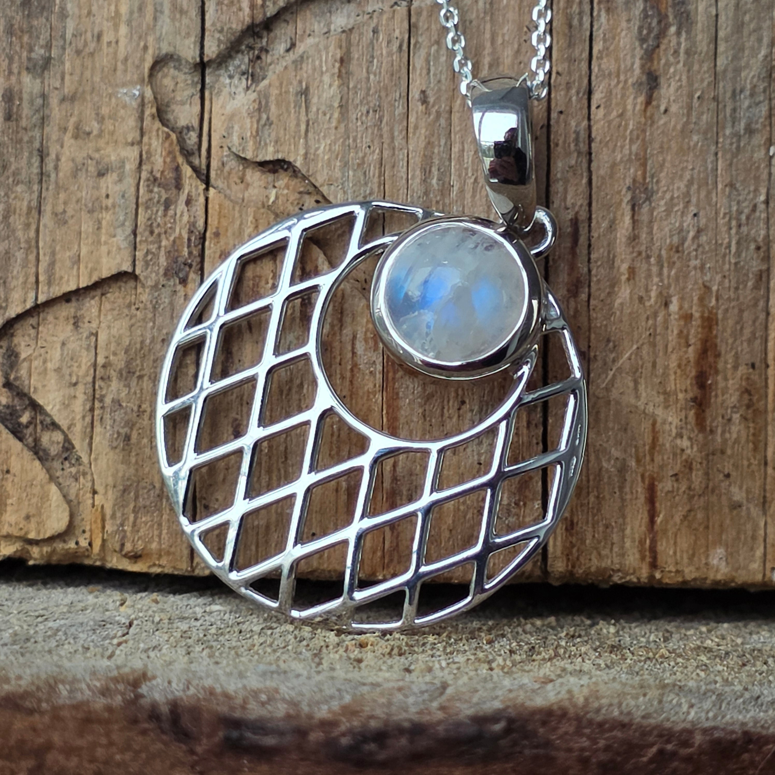 Ein besonderer Anhänger, der die natürliche Schönheit des Mondsteins mit der Eleganz von Silber vereint – ein Symbol für die Harmonie zwischen Himmel und Erde.