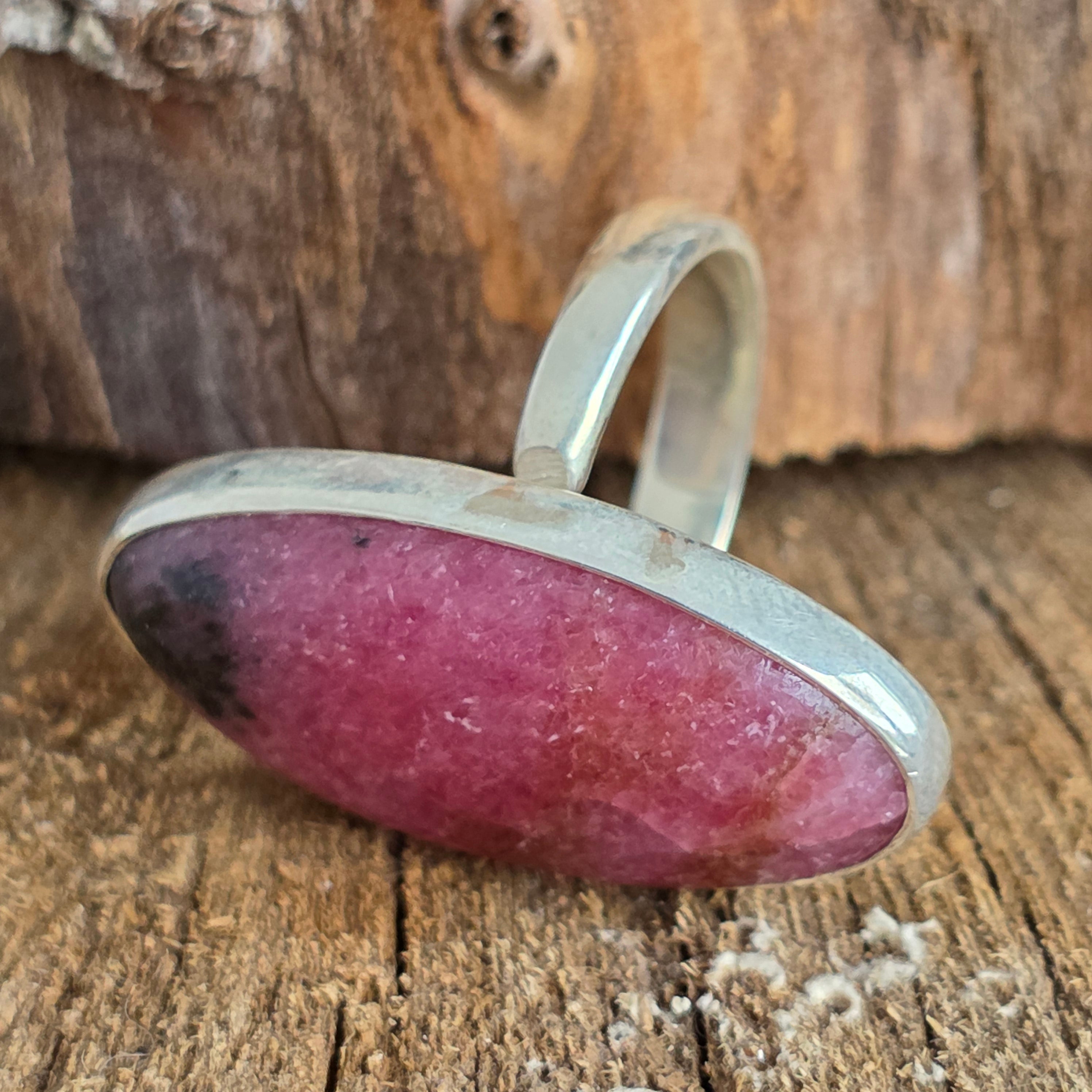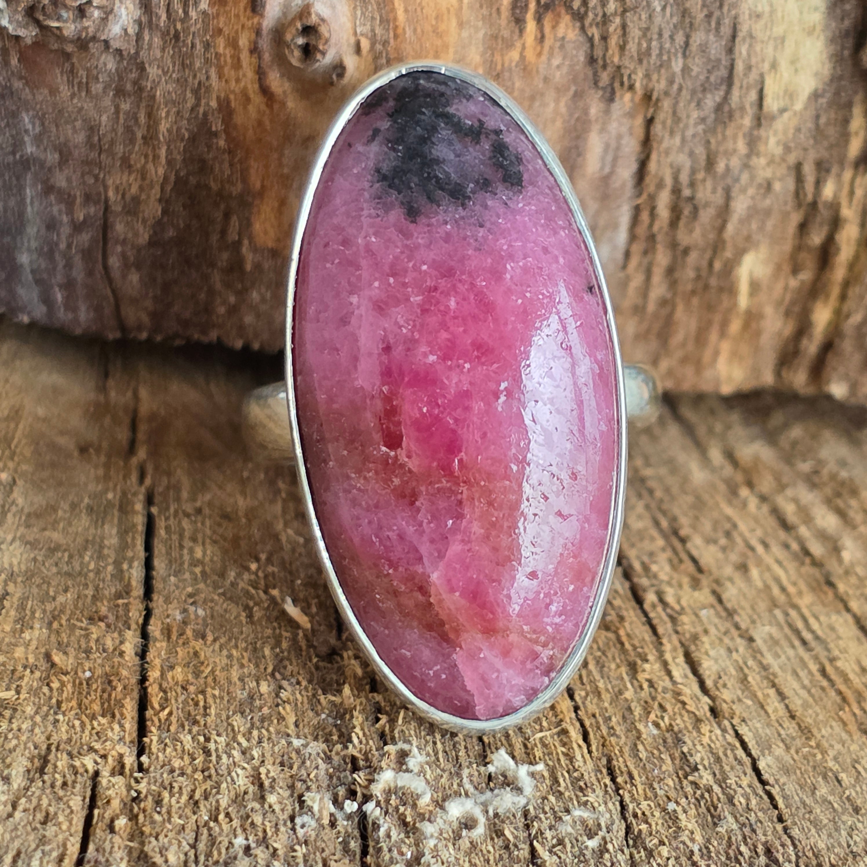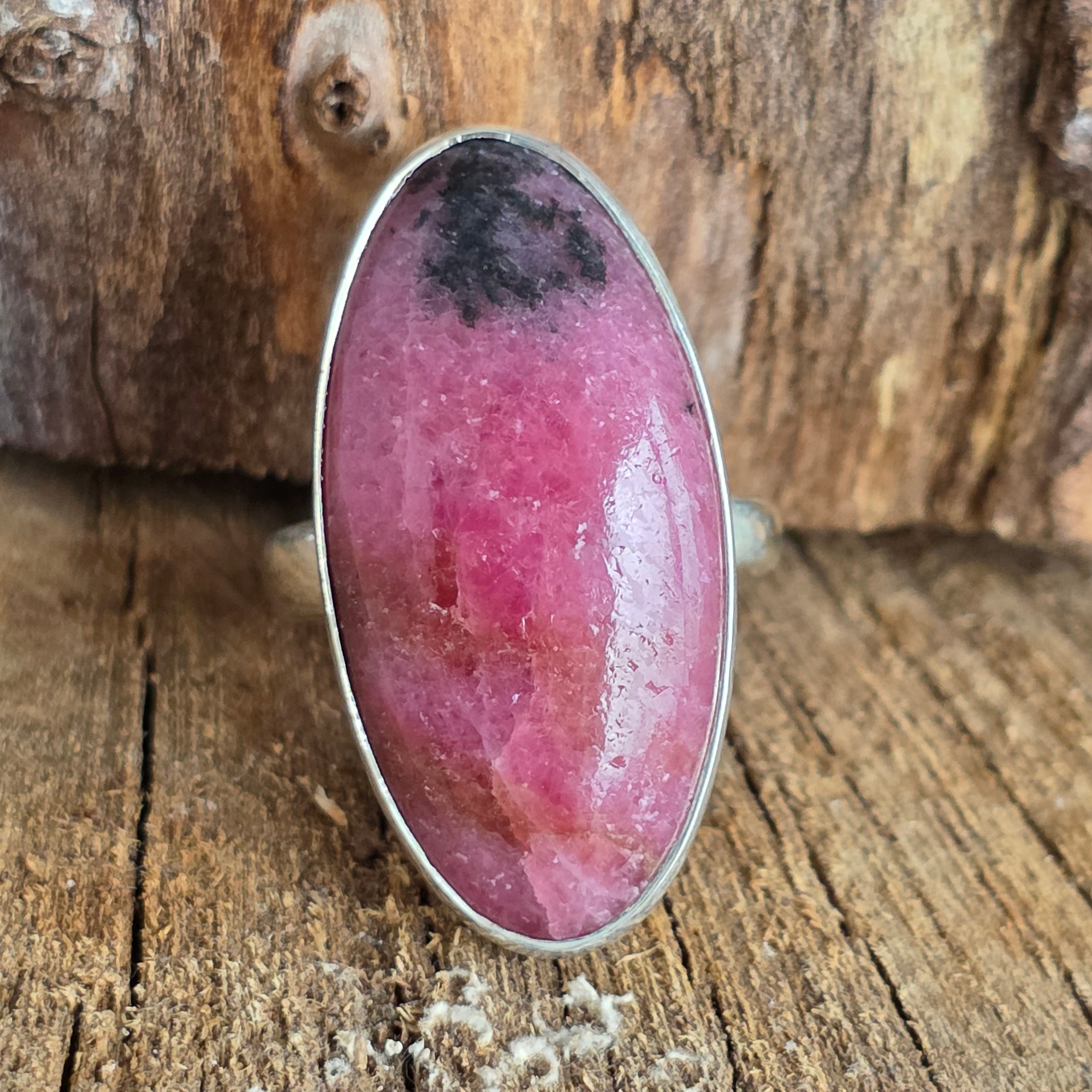 Tragen Sie diesen Rhodonit-Ring, um Ihrem Leben Eleganz und Harmonie zu verleihen – ein einzigartiges Schmuckstück, geschaffen für Seelen, die die natürliche Schönheit und heilende Energie von Kristallen lieben.