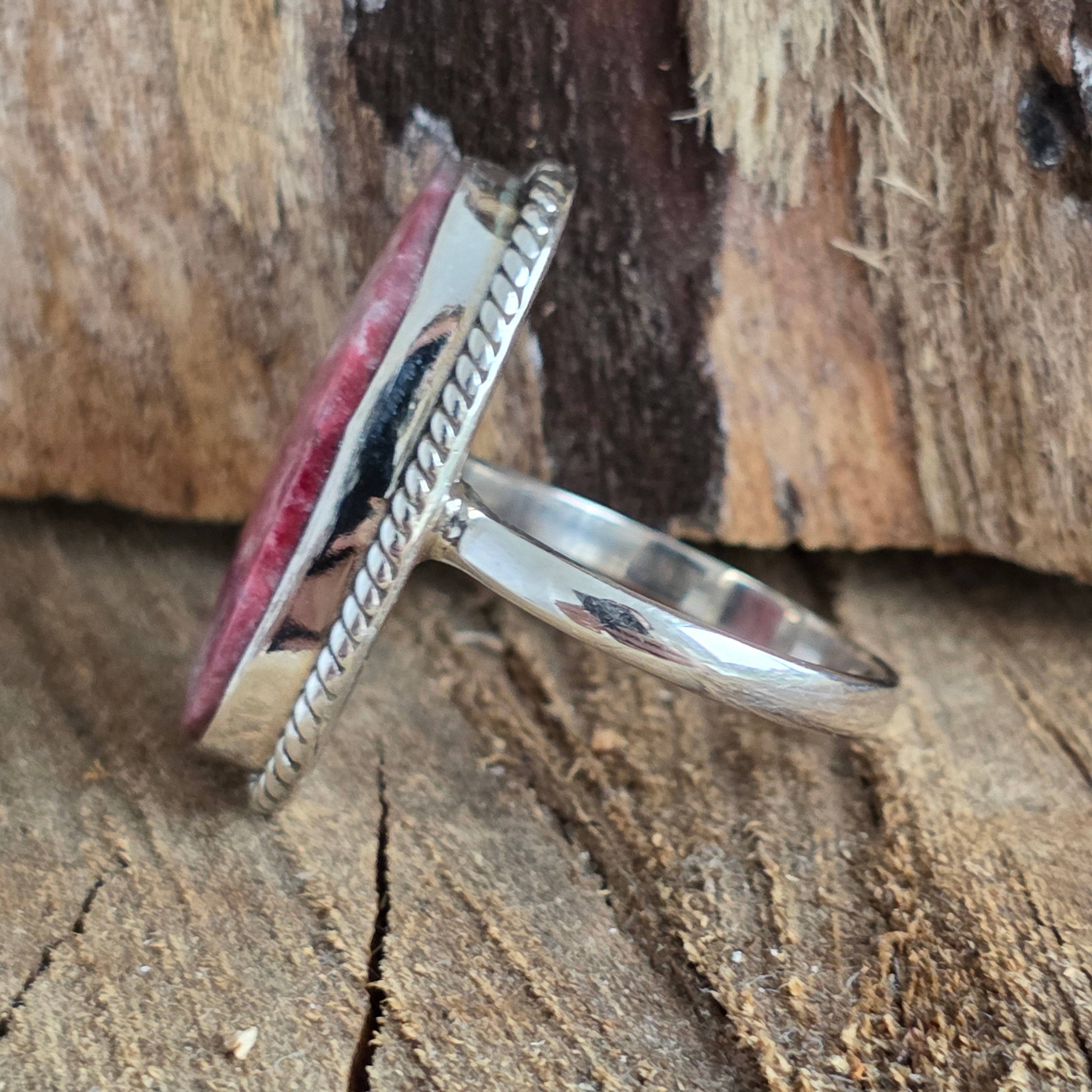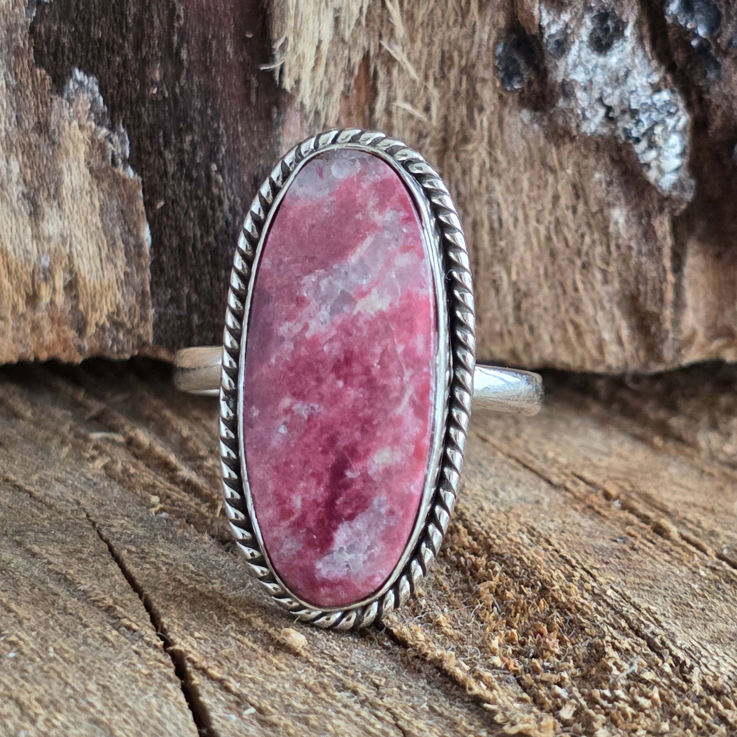 Ein 925er Silberring, der die Energie der nordischen Erde in sich trägt – Die Tulit, eine Zoisit-Rosa-Sorte mit natürlicher Textur und subtilen Farbvariationen zwischen Lachsrosa, Fuchsia und Kreideweiß.