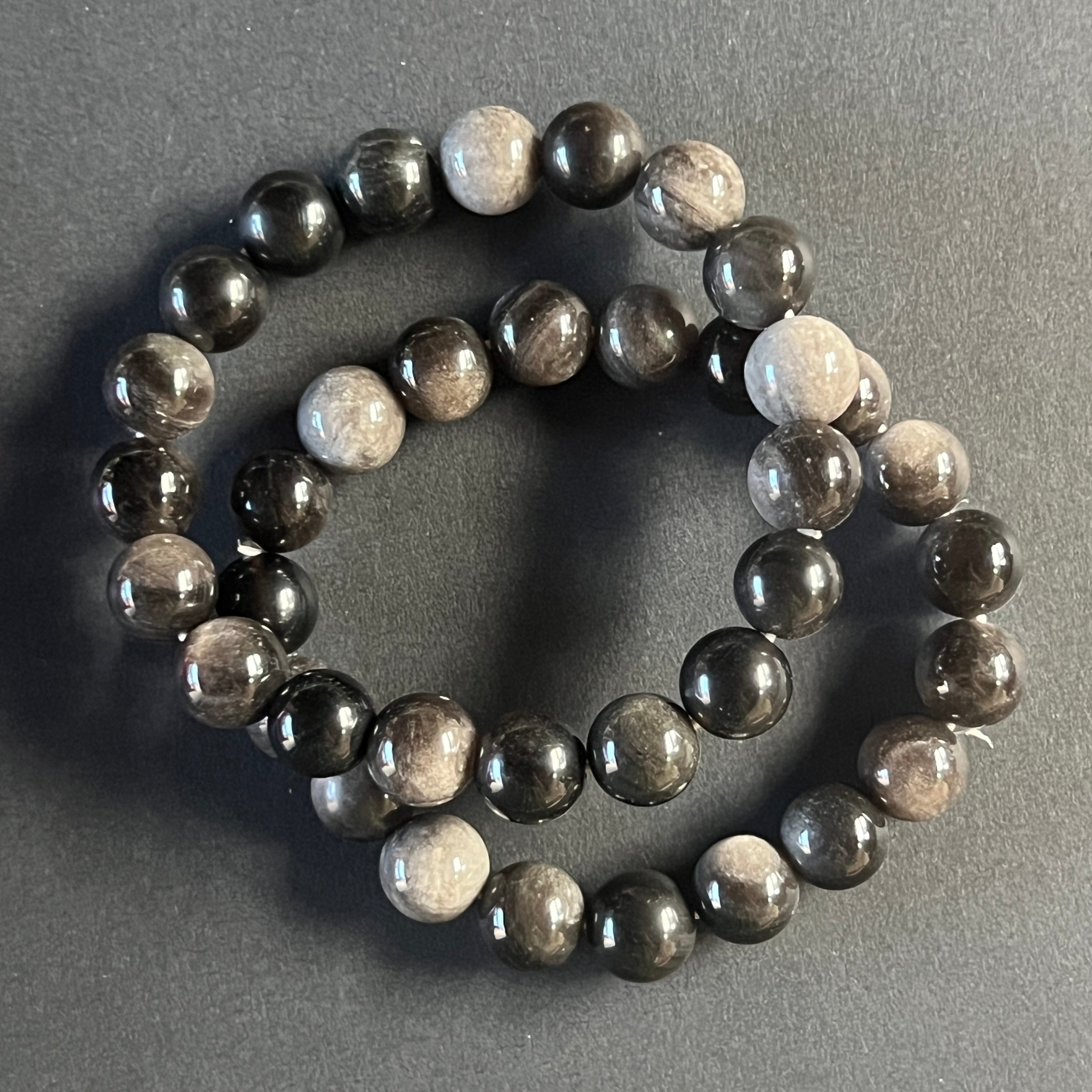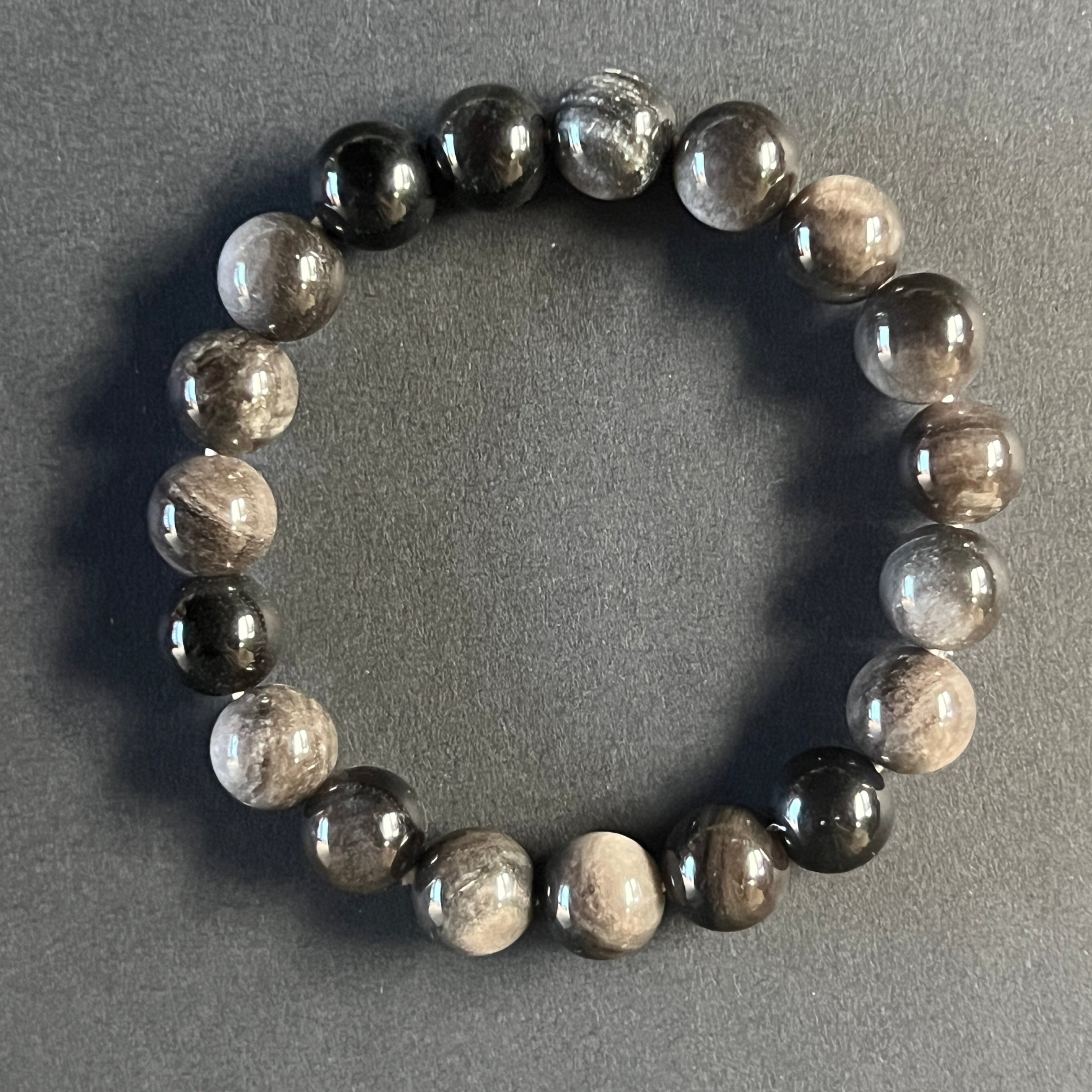 Beschreibung - Silbernes Obsidianarmband 10 mm