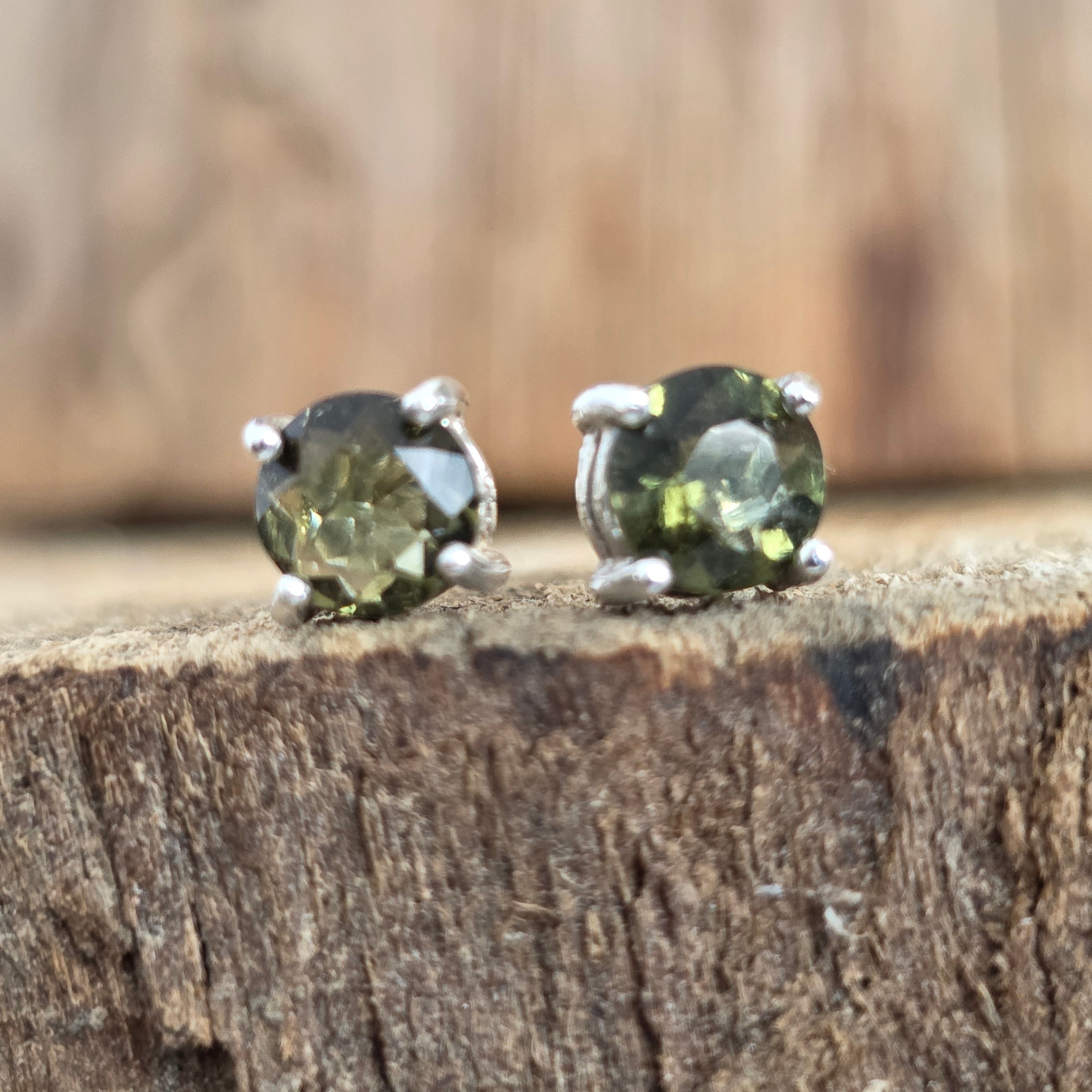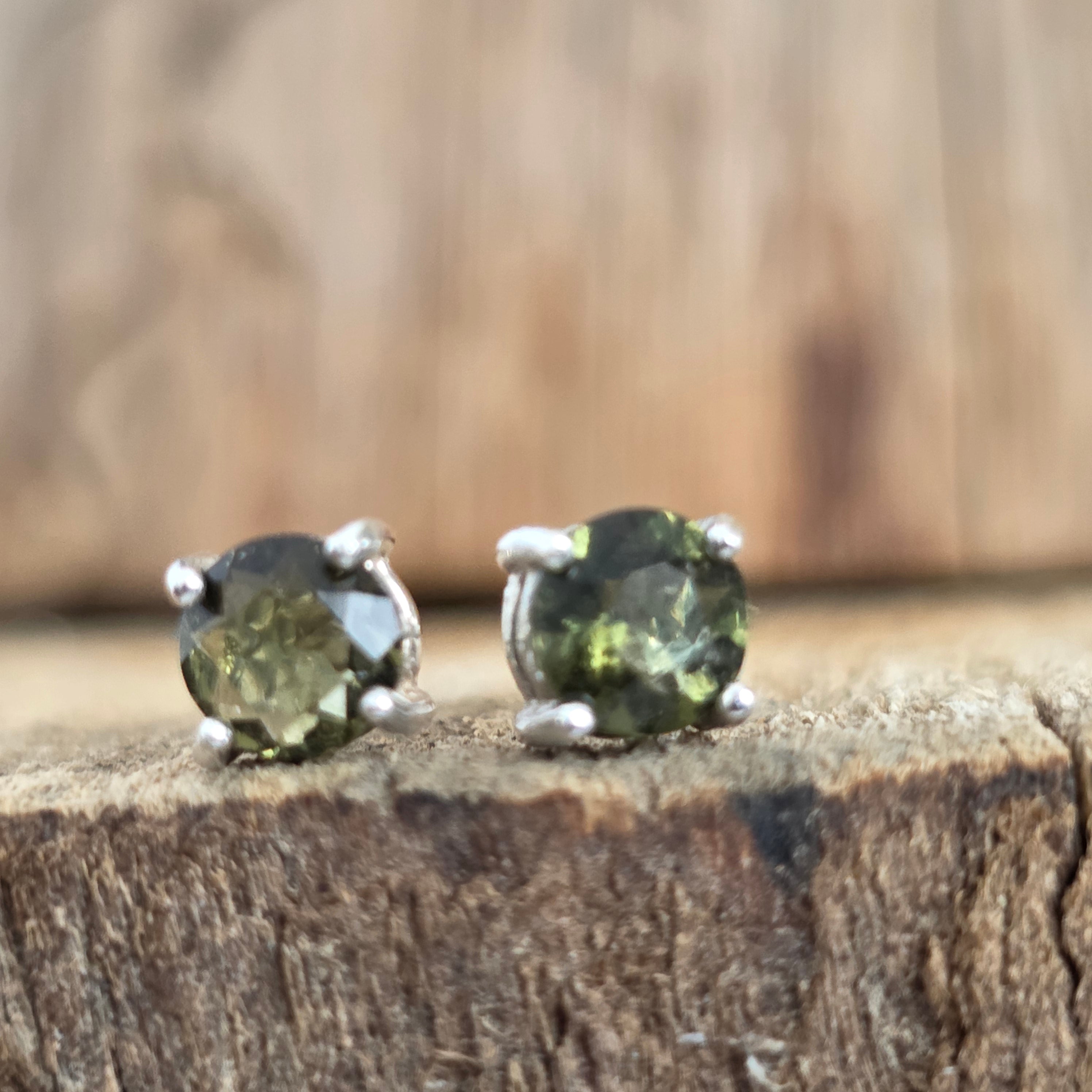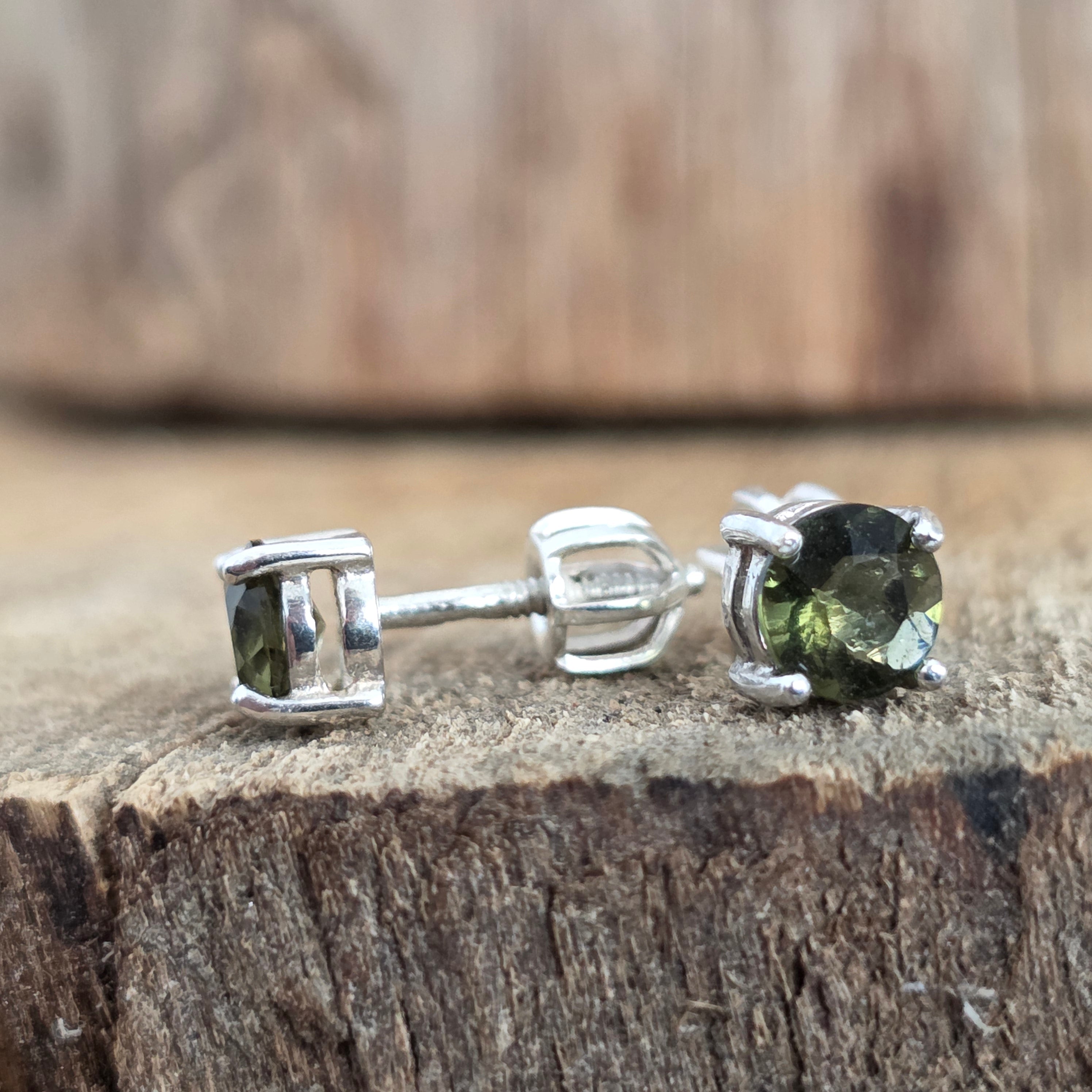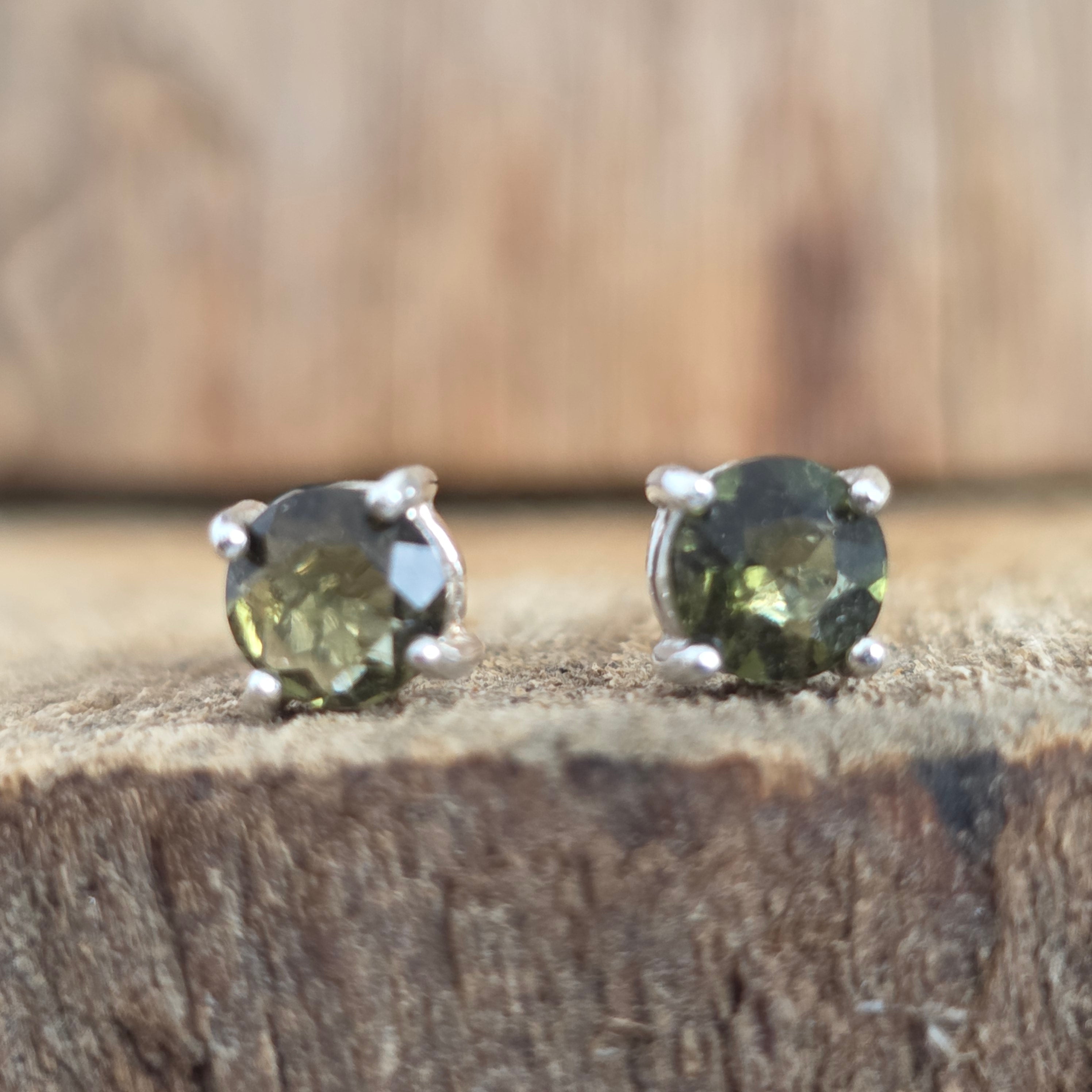 Silberohrstecker mit Moldavit 0,5 mm rund