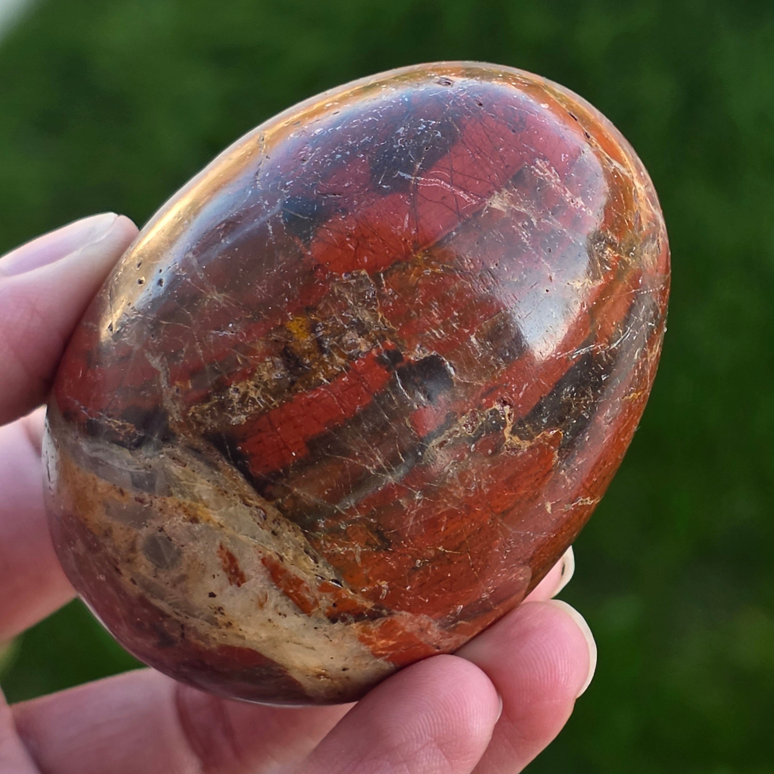 Roter Jaspis wird auch der Stein des Mutes und der Stärke genannt. Dieser Stein erhöht das Energieniveau, regt die Durchblutung und die Lust auf Leben an.