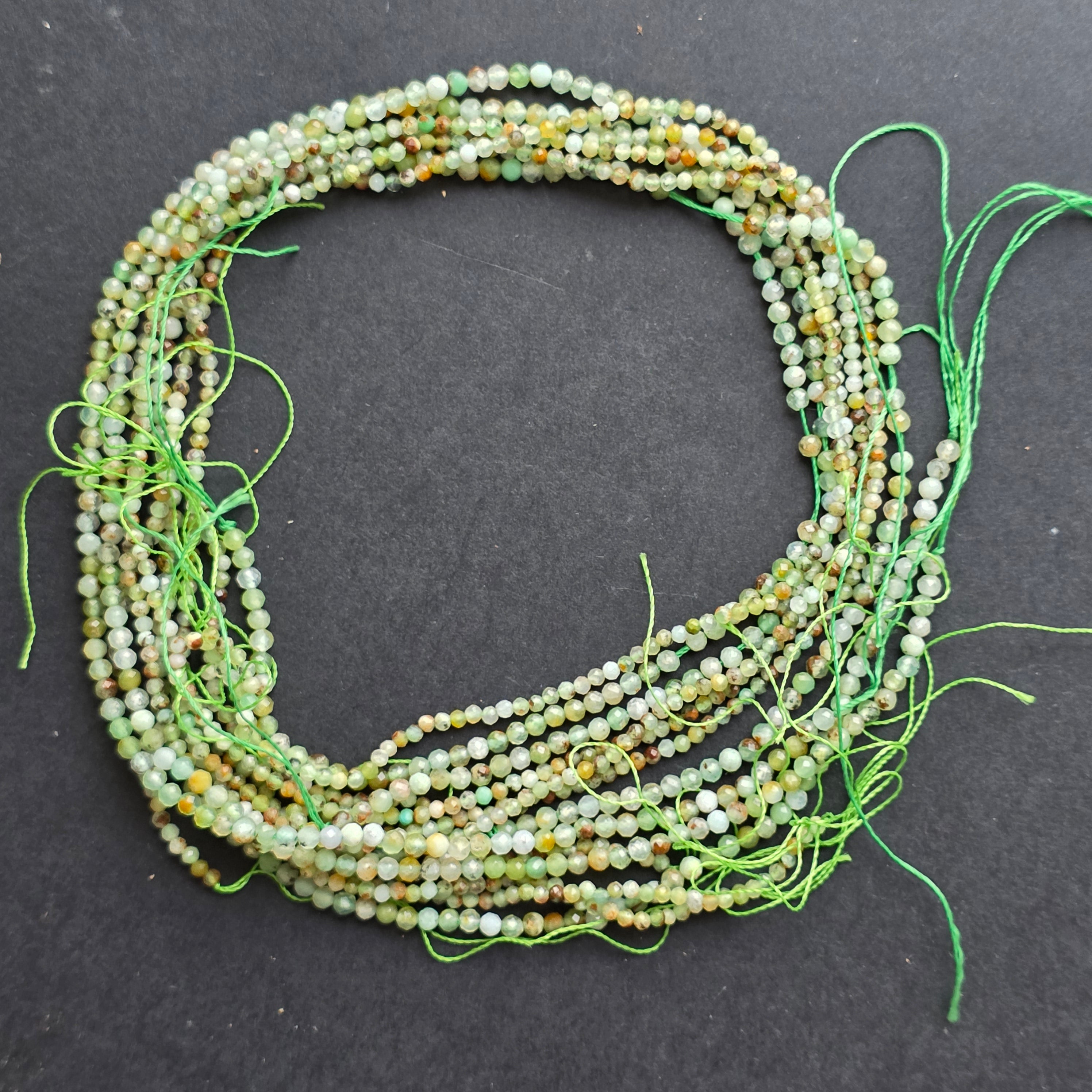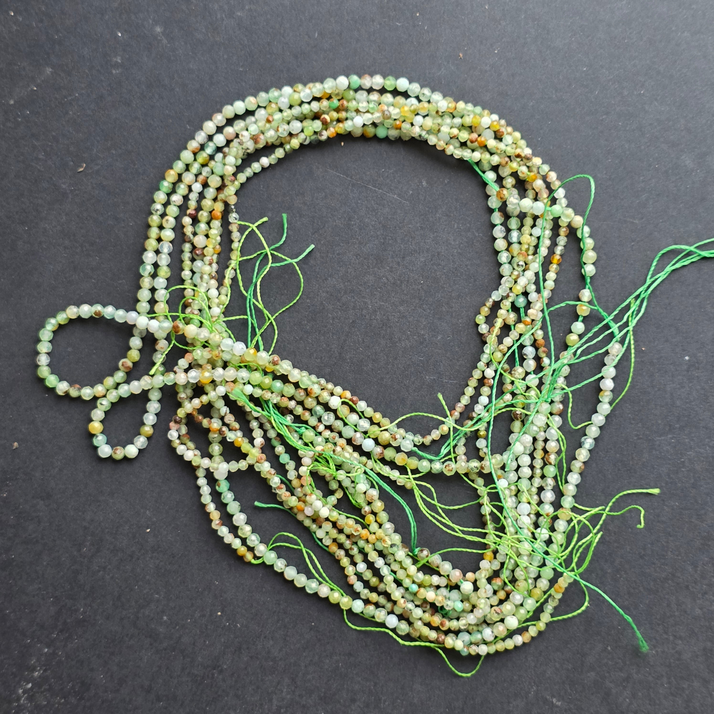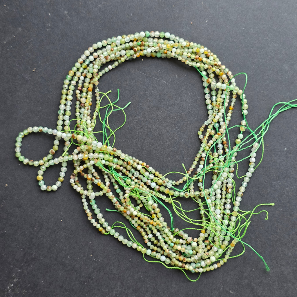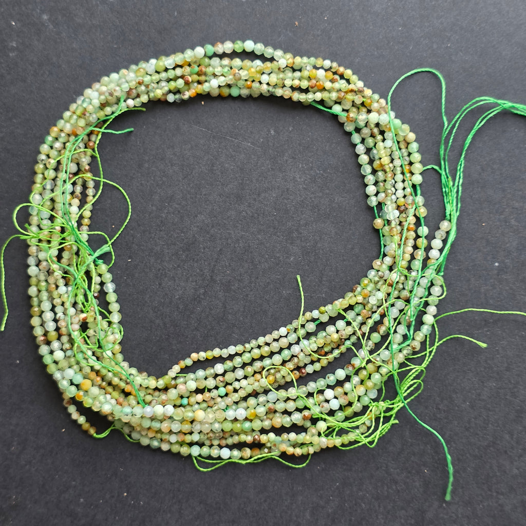 Chrysoprasschnur, bestehend aus natürliche facettierte kugelförmige Perlen, perfekt für Halsketten, Armbänder oder anderen handgefertigten Schmuck.