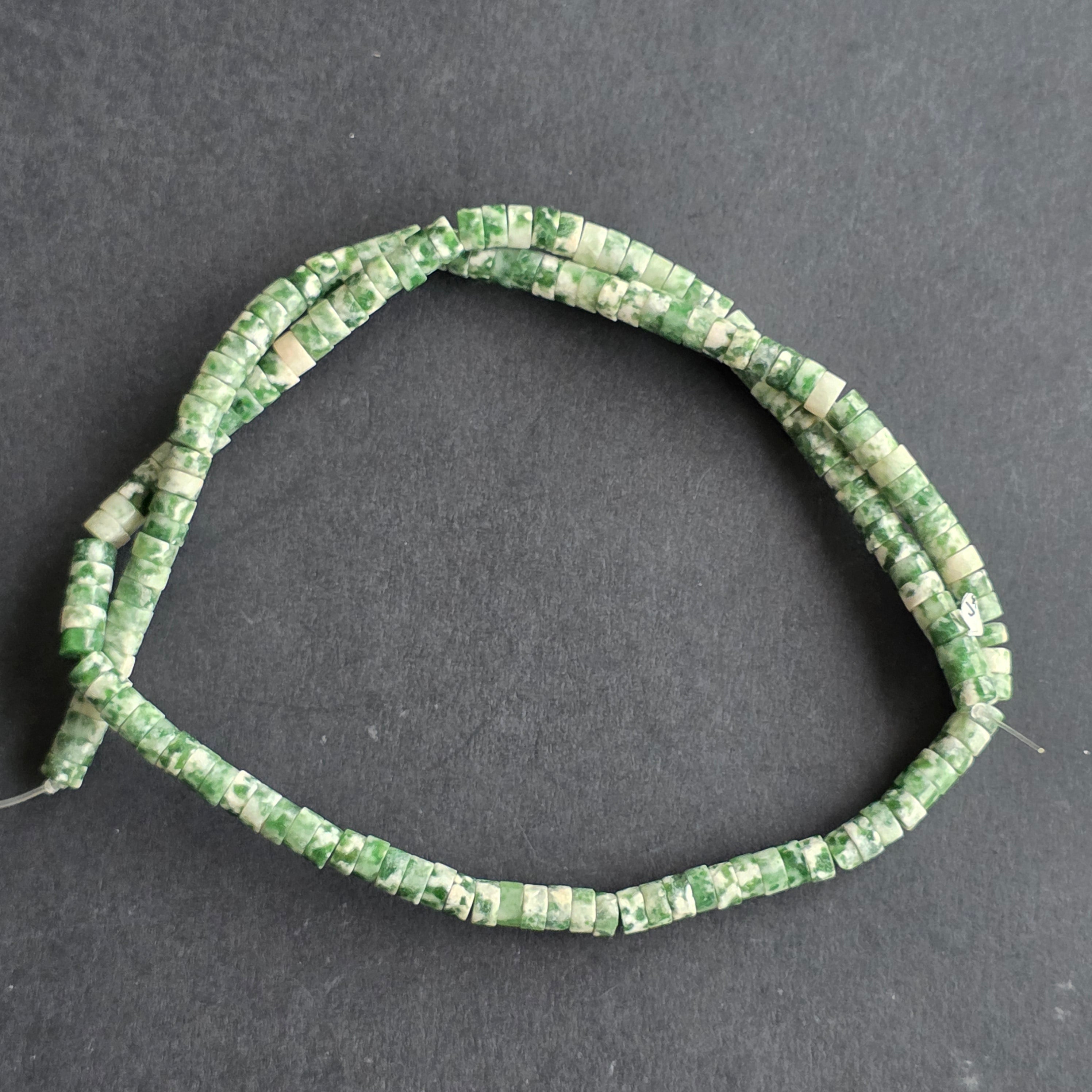 Șirag de JAD VERDE, alcătuit din discuri naturale, perfect pentru coliere, brățări sau alte bijuterii handmade.