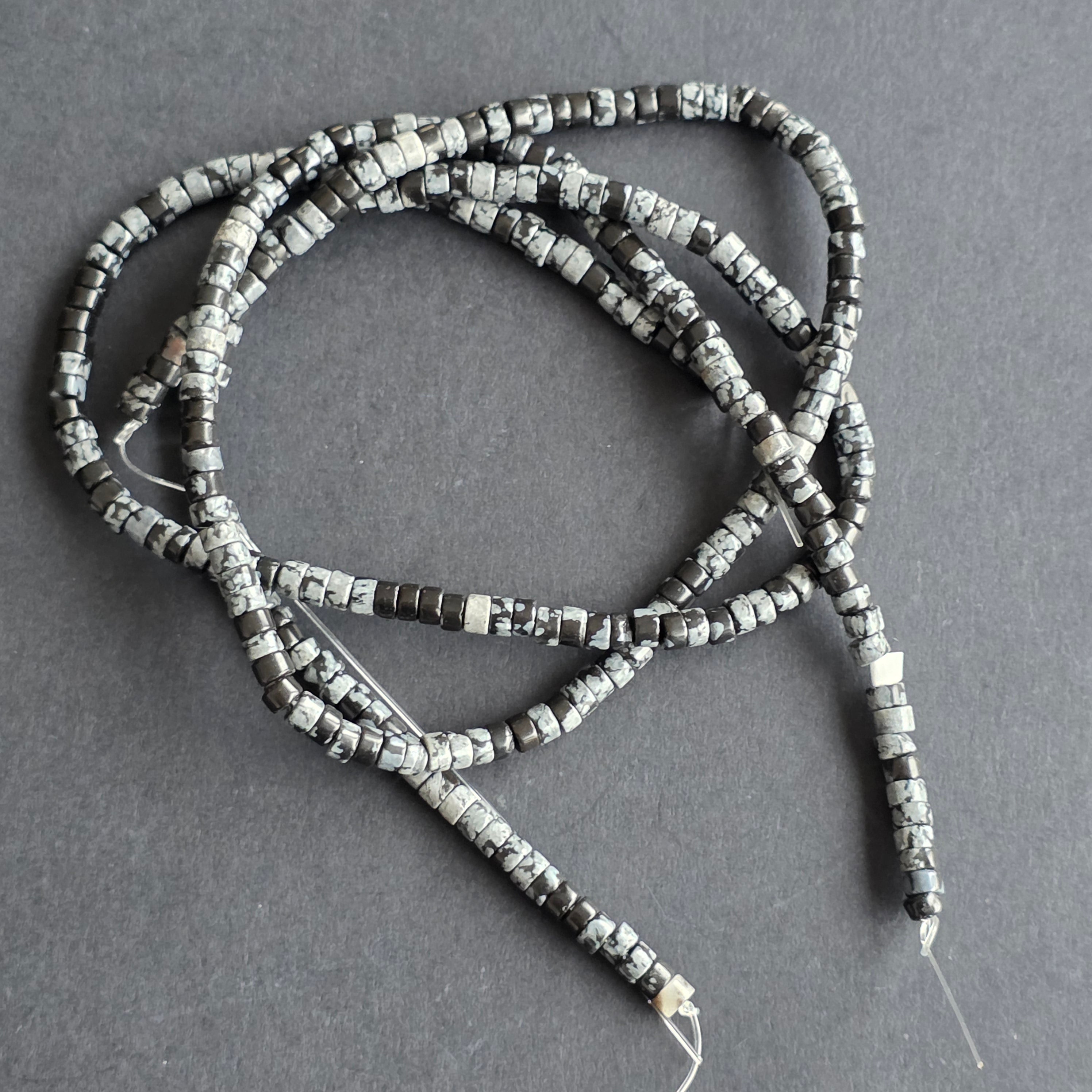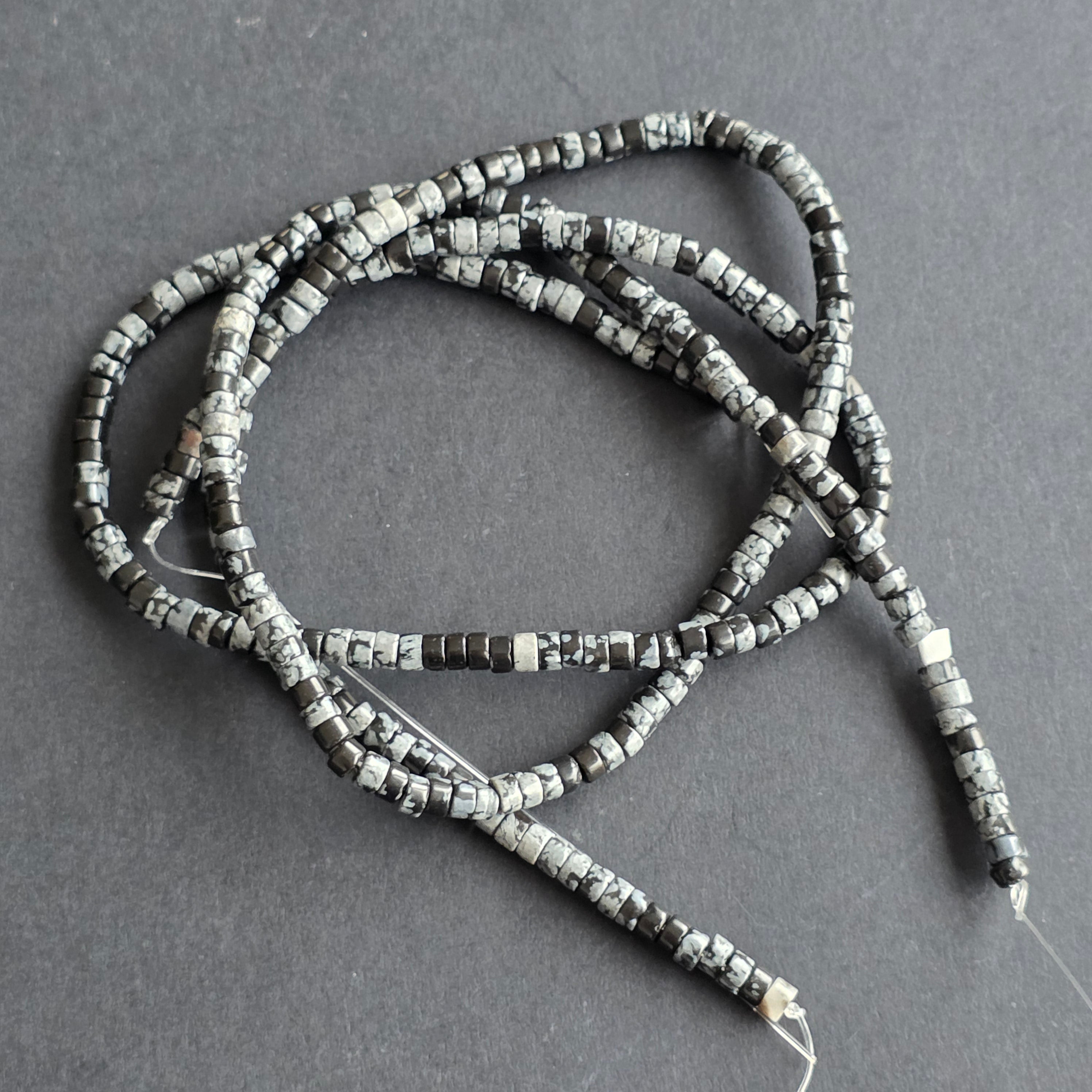 Sirag de obsidian, alcătuit din discuri naturale, perfect pentru coliere, brățări sau alte bijuterii handmade.