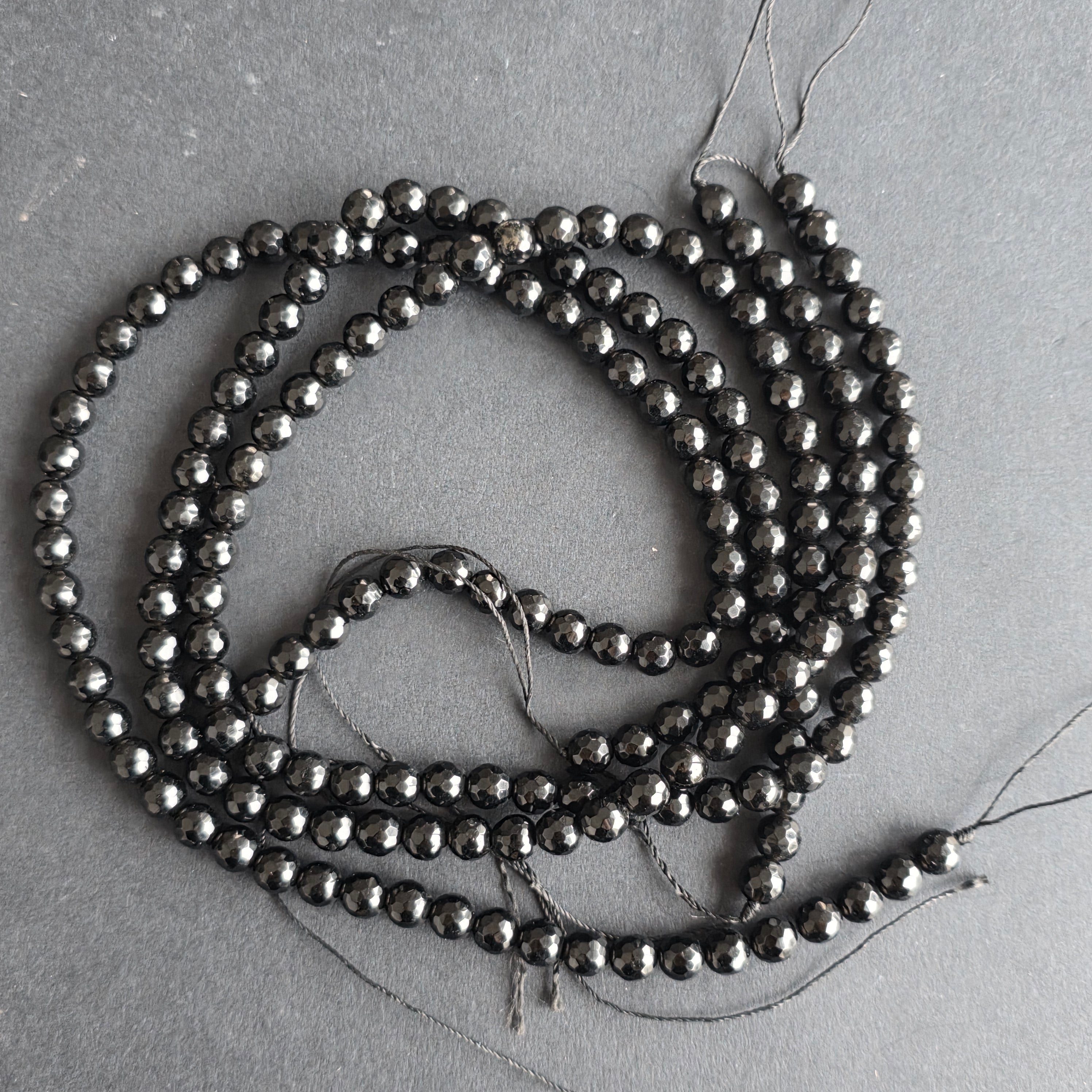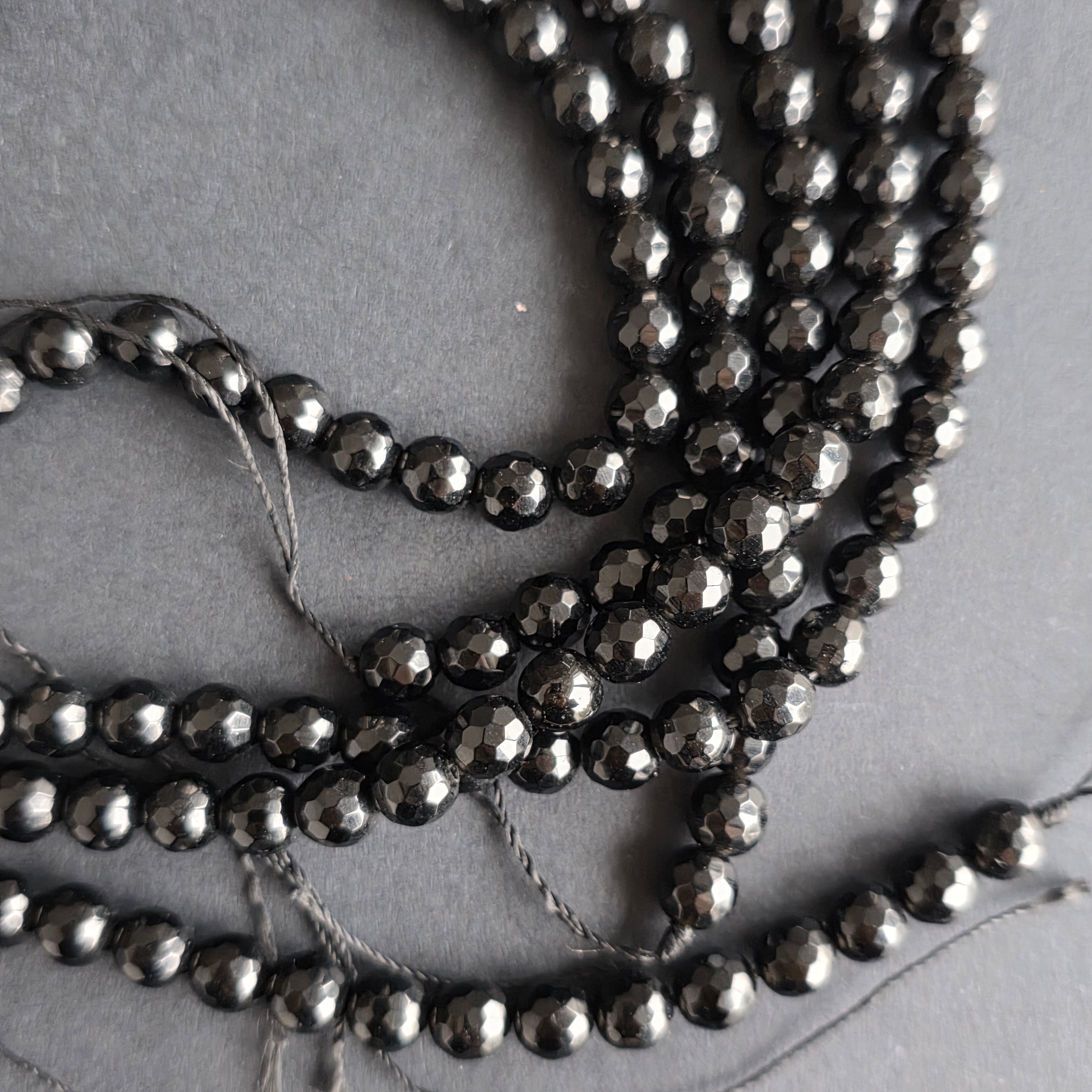 Sirag margele pietre semipretioase sfere fatetate OBSIDIAN NEGRU