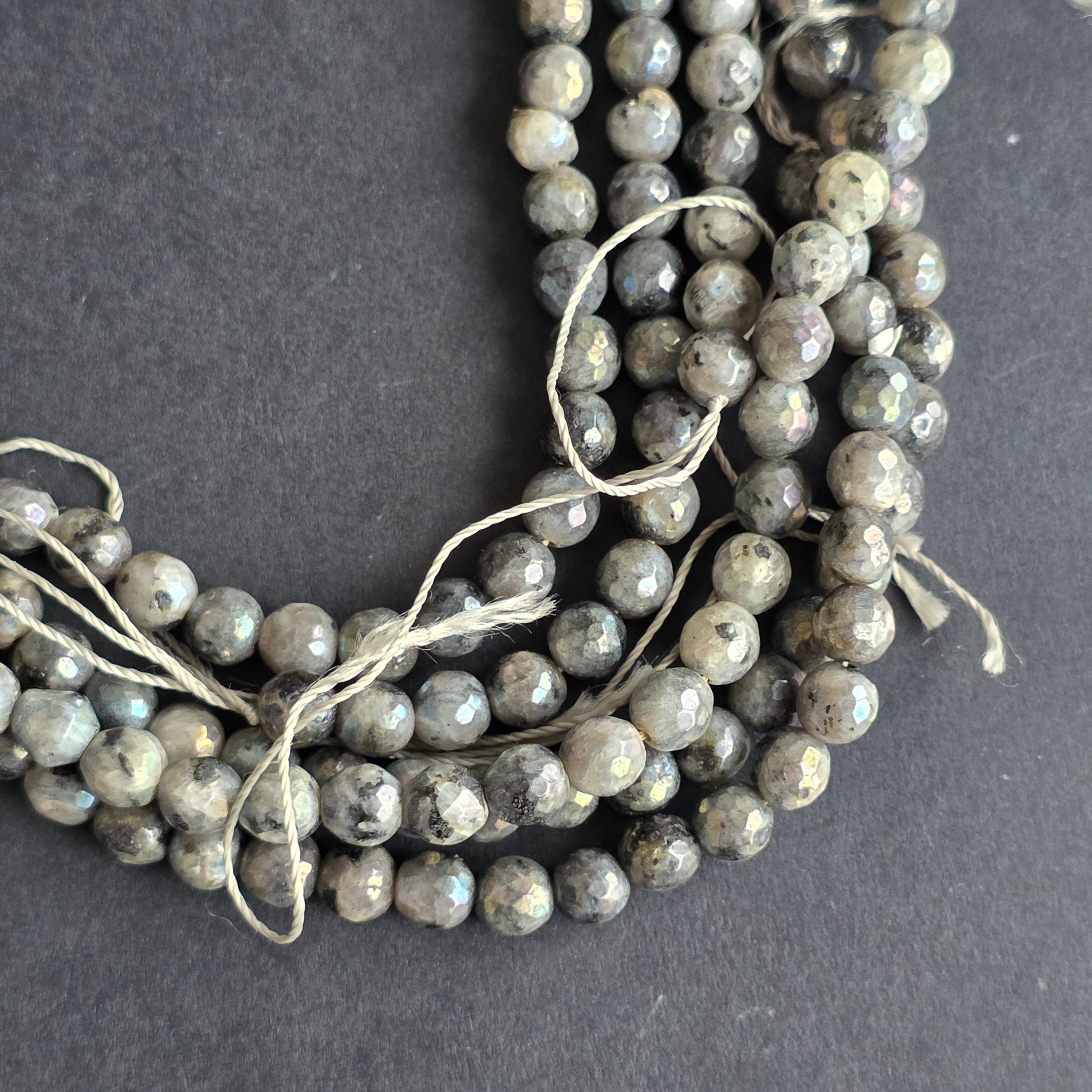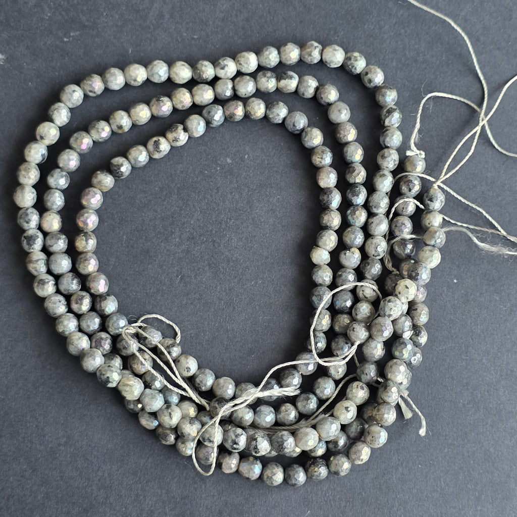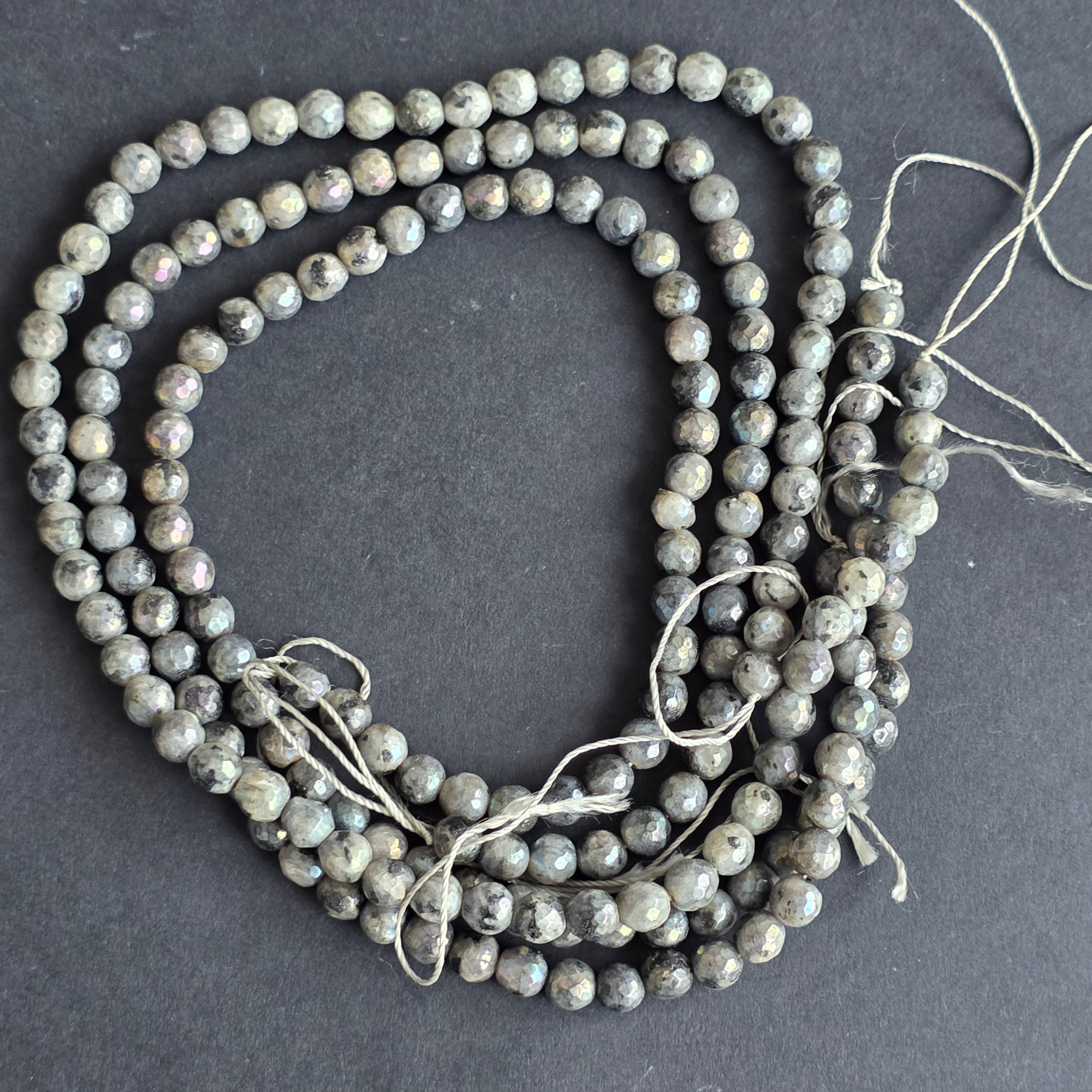 Șirag de LARVIKIT, alcătuit din SFERE FATETATE naturale, perfect pentru coliere, brățări sau alte bijuterii handmade.