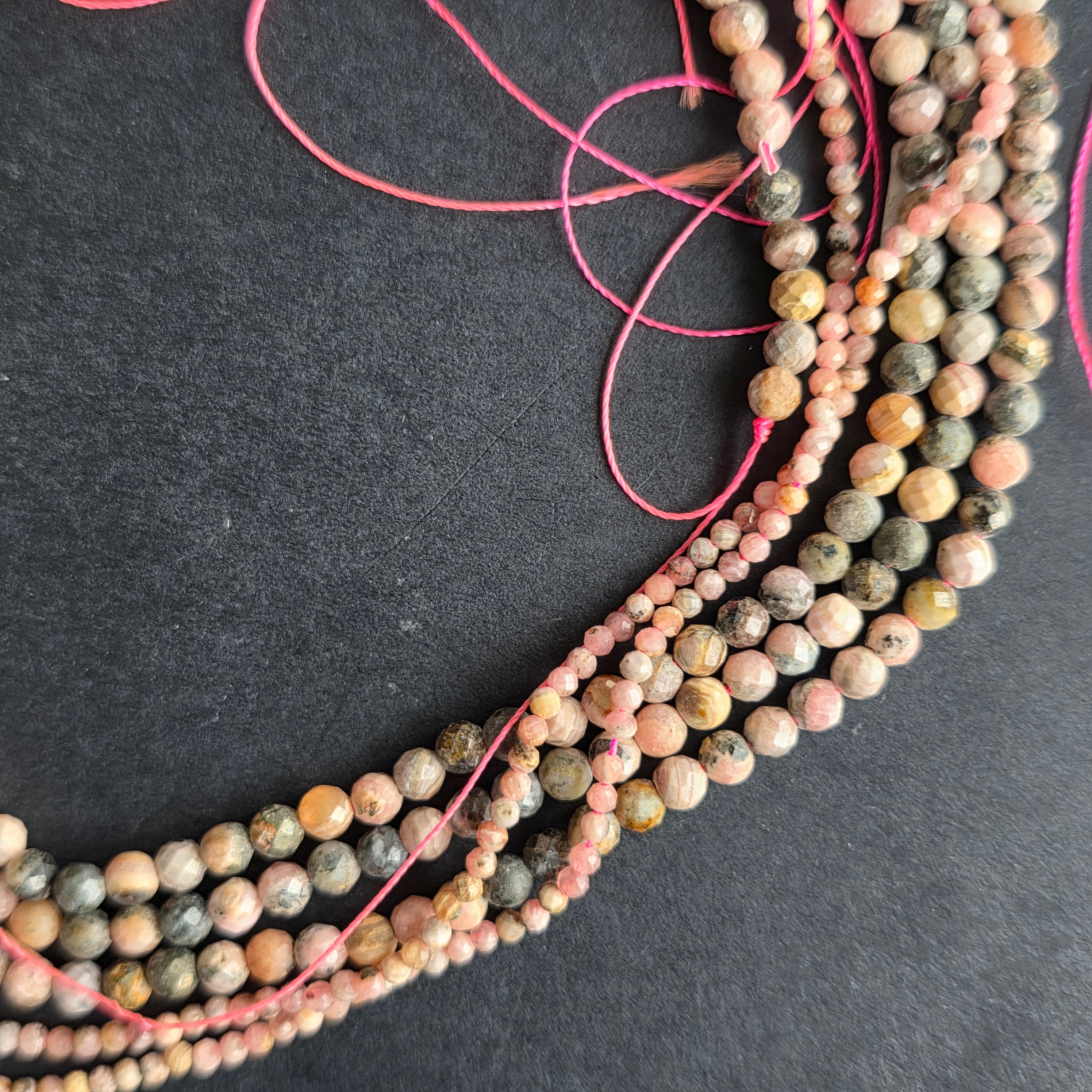 Sirag de RODOCROZIT, alcătuit din mărgele sferice fatetate naturale, perfect pentru coliere, brățări sau alte bijuterii handmade.