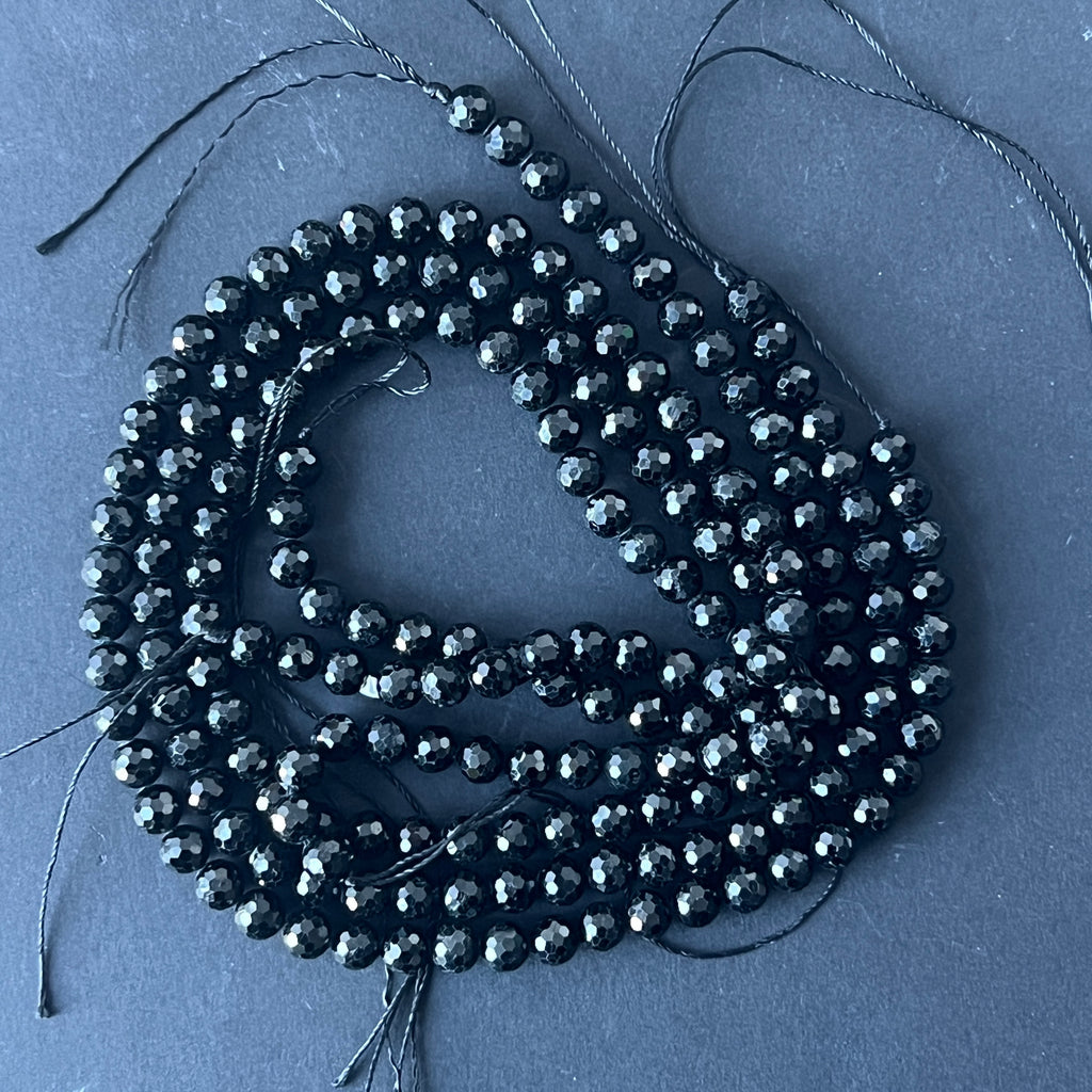Sirag margele pietre semipretioase sfere fatetate turmalina neagra