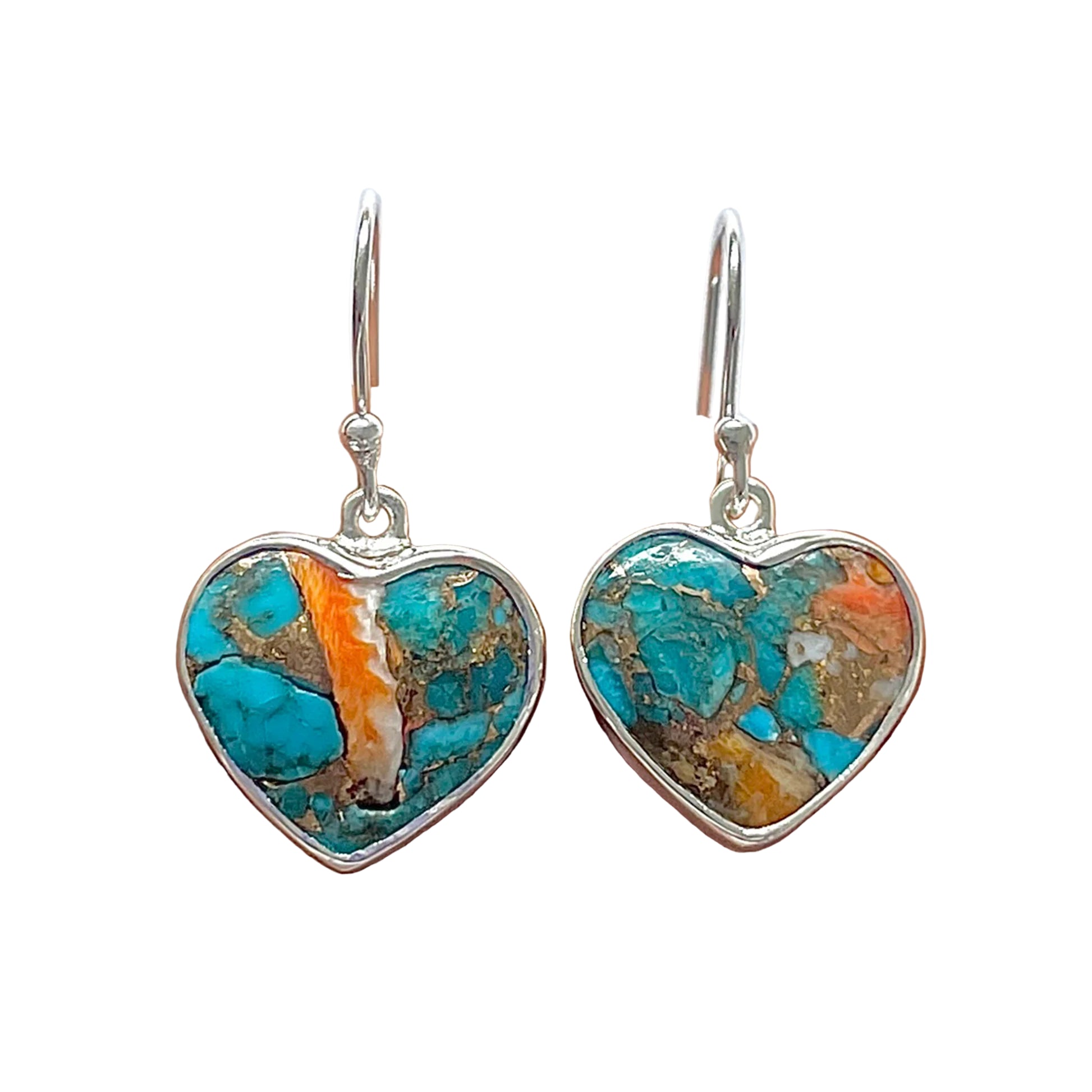 Diese einzigartigen Herzohrringe schaffen es, die Energie des Meeres und der Sonne zu erfassen. Der Kontrast zwischen der intensiven blauen Türkis und den warmen orange und weißen Schattierungen der stacheligen Austernschale erzeugt ein lebhaftes Juwel, das die Freiheit des Ozeans und die Freude des gegenwärtigen Moments hervorruft.