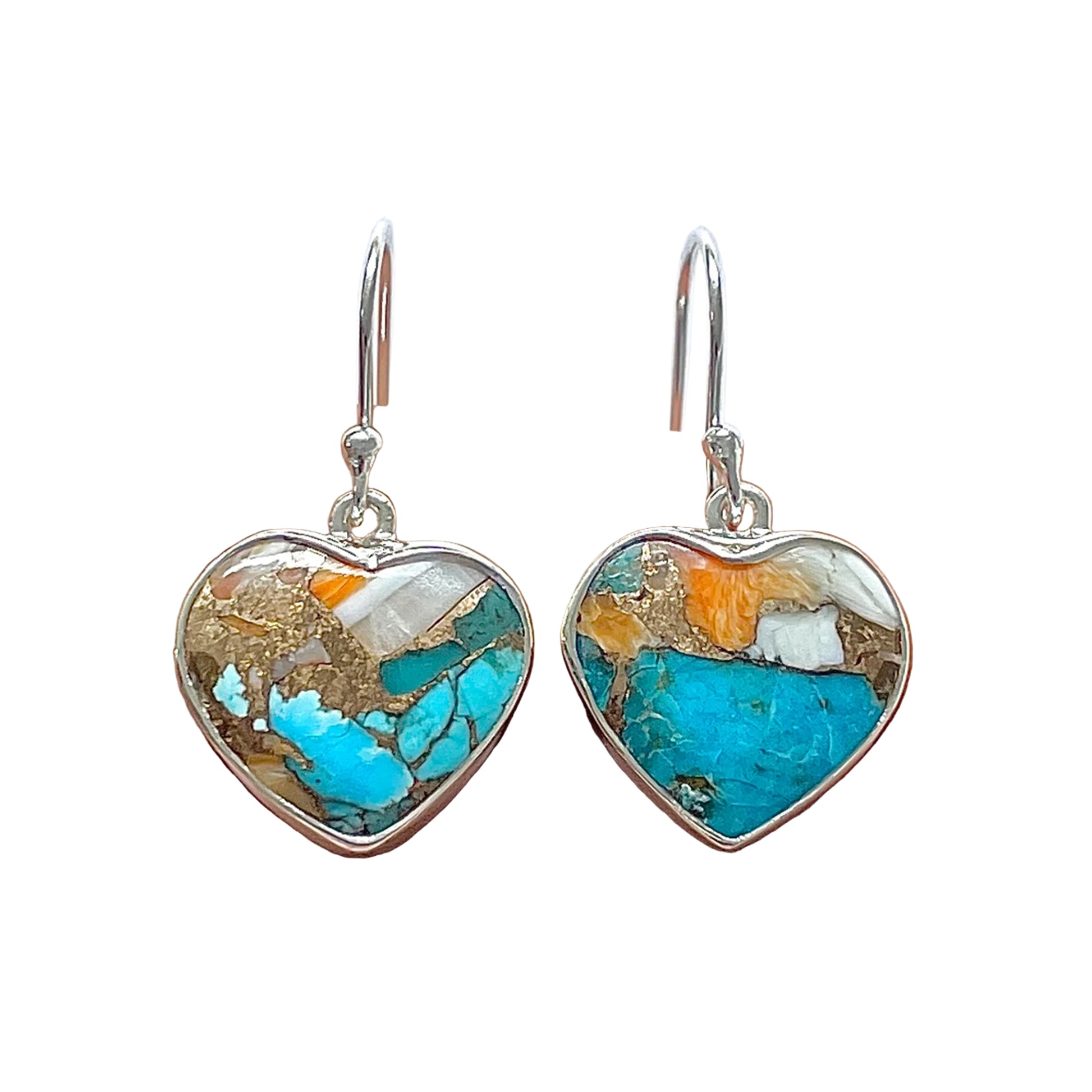 Diese einzigartigen Herzohrringe schaffen es, die Energie des Meeres und der Sonne zu erfassen. Der Kontrast zwischen der intensiven blauen Türkis und den warmen orange und weißen Schattierungen der stacheligen Austernschale erzeugt ein lebhaftes Juwel, das die Freiheit des Ozeans und die Freude des gegenwärtigen Moments hervorruft.