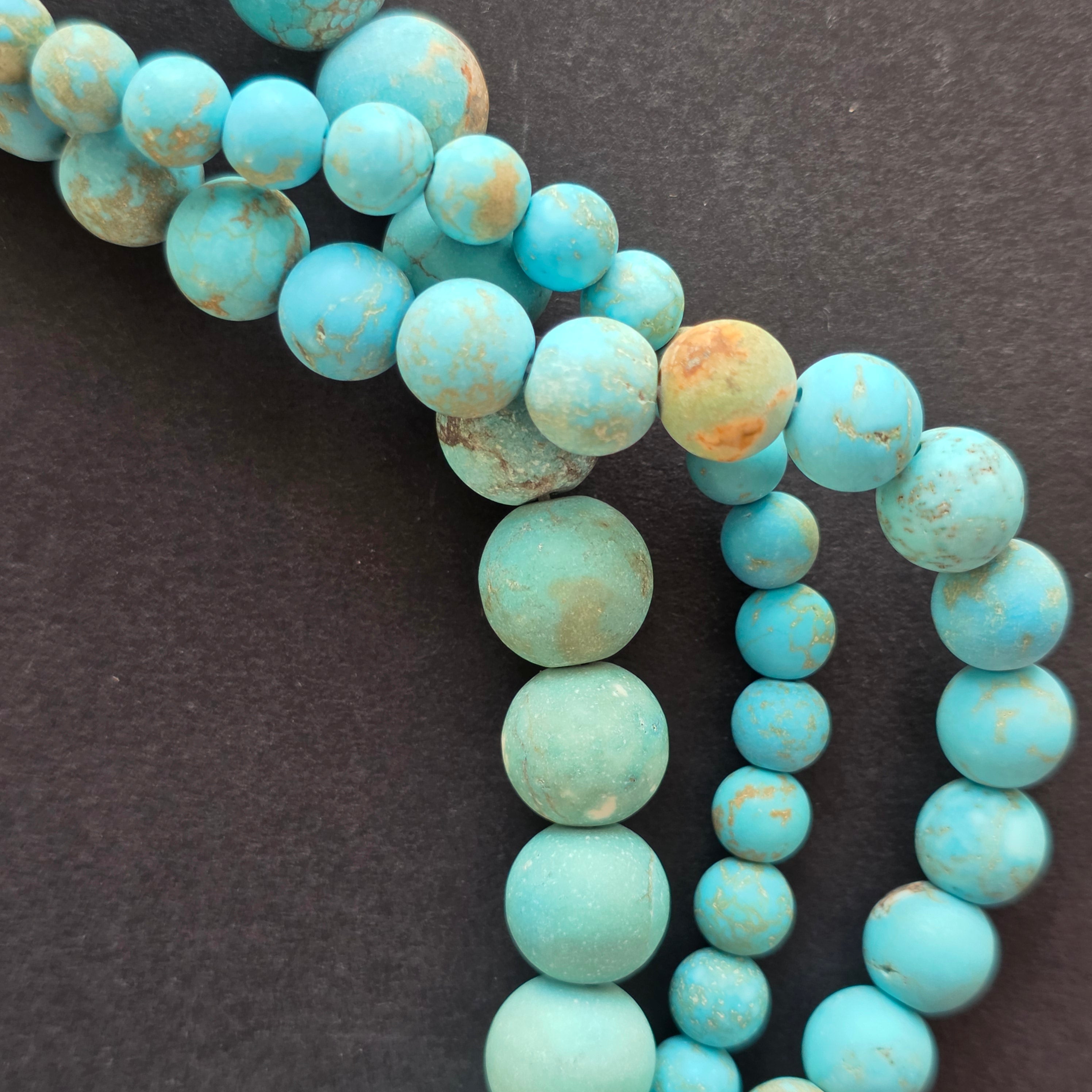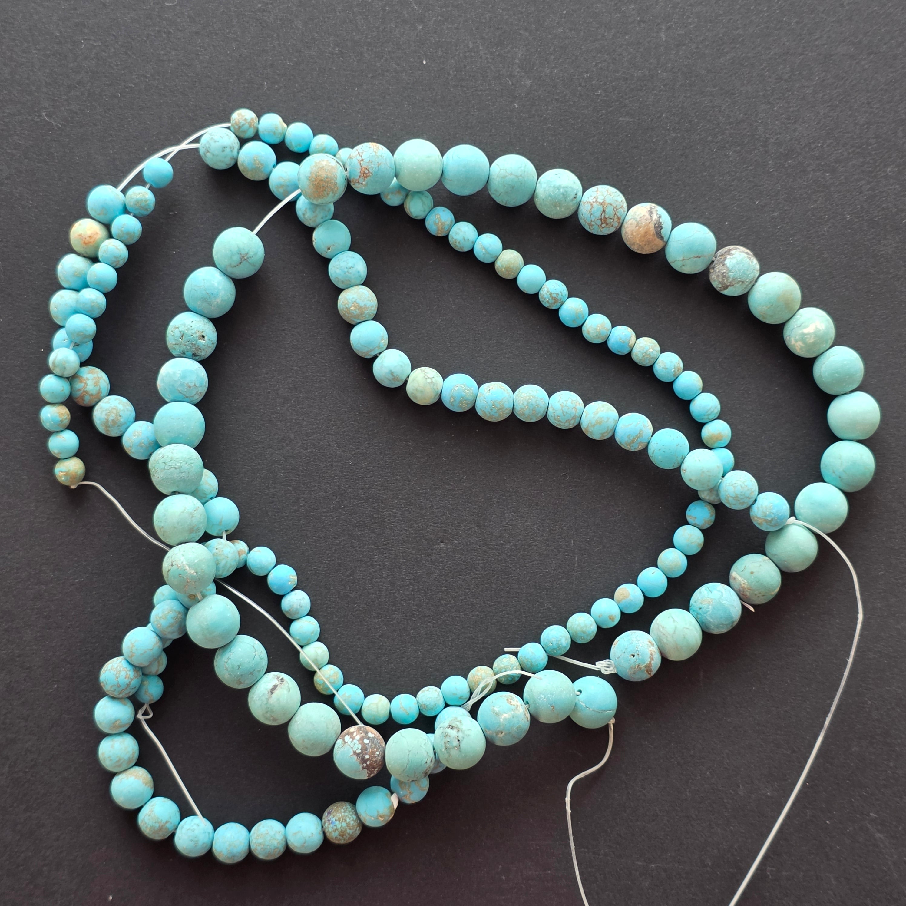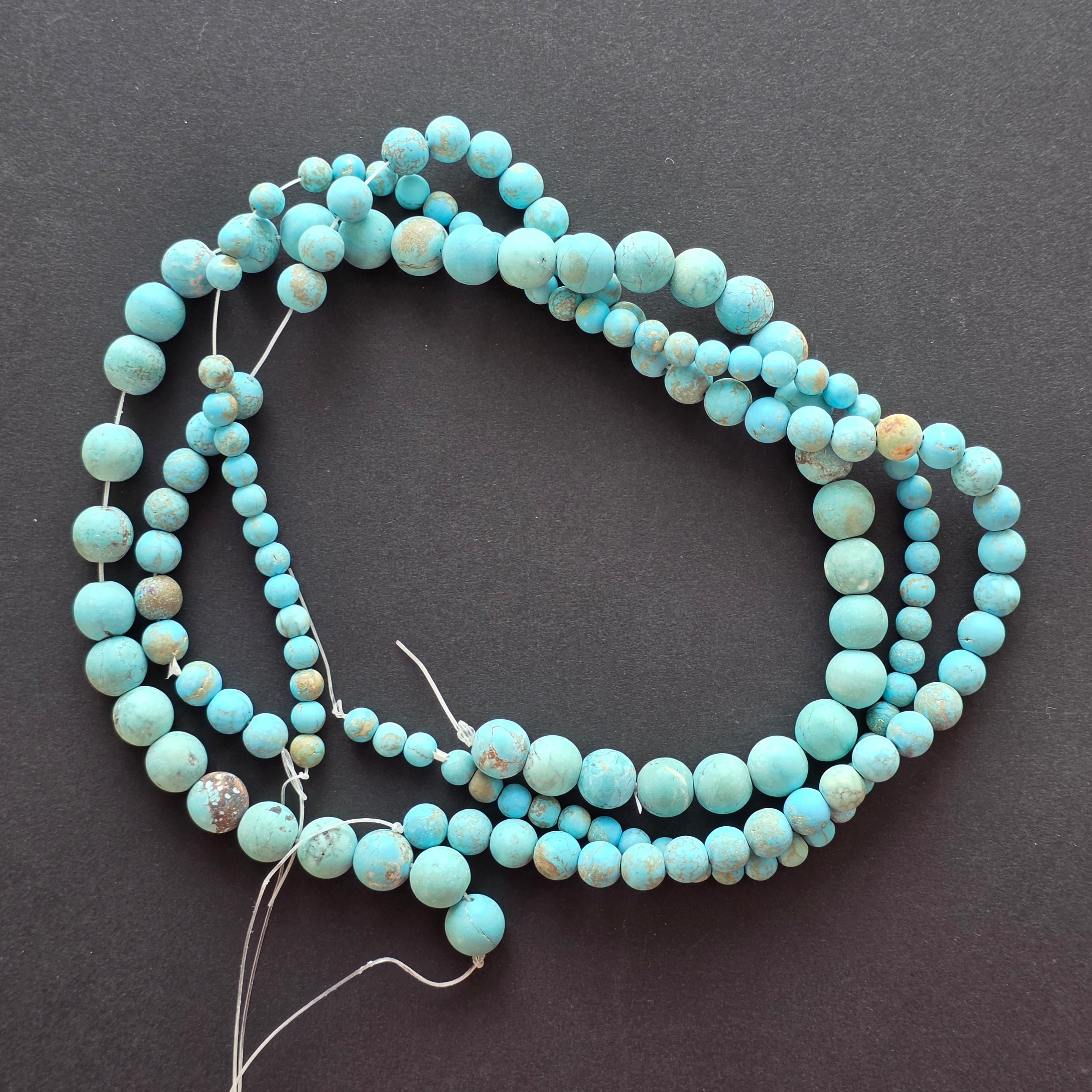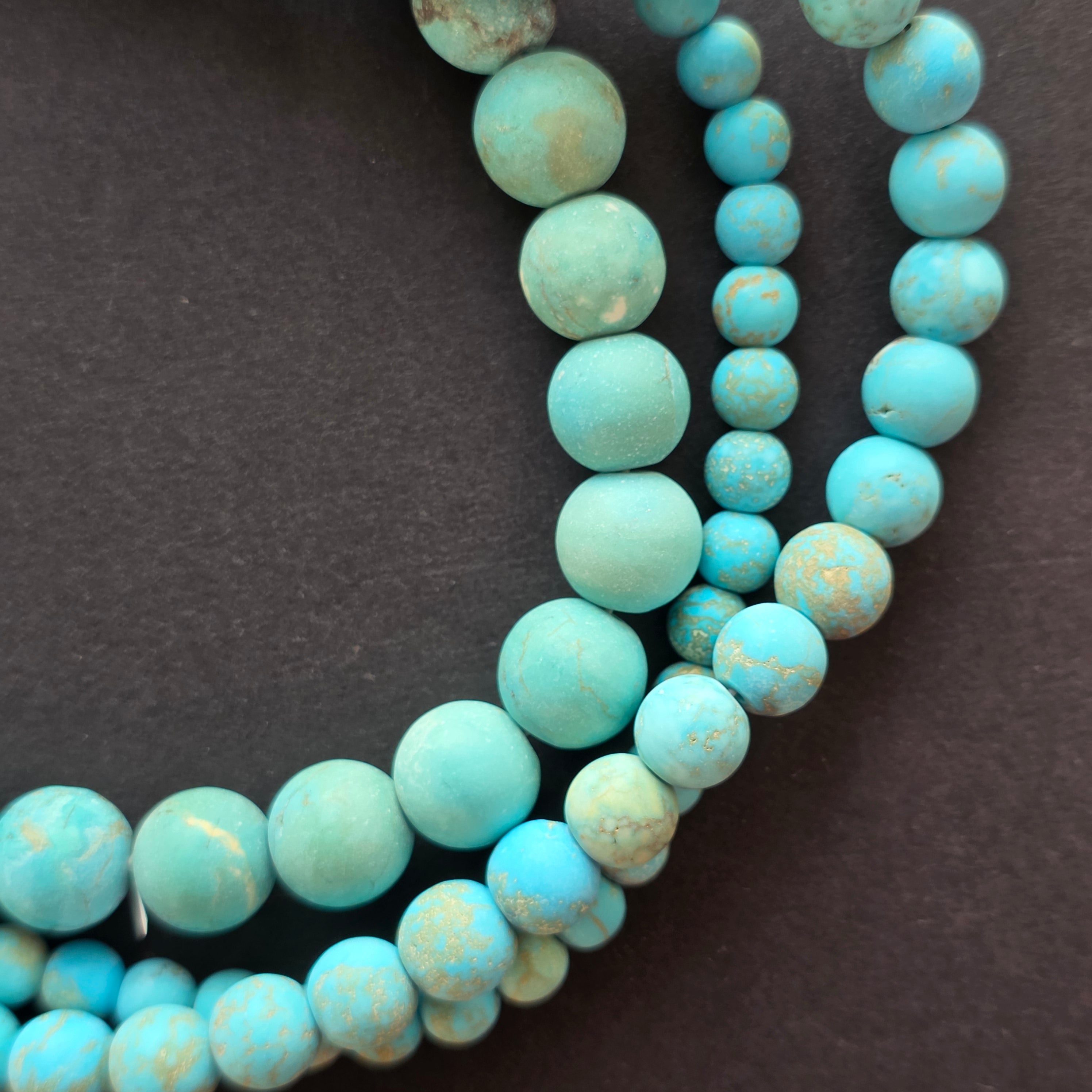 Perlenkette aus BLAUEM HOWLIT, bestehend aus matten, natürlichen, runden Perlen, perfekt für Halsketten, Armbänder oder andere handgefertigte Schmuckstücke.