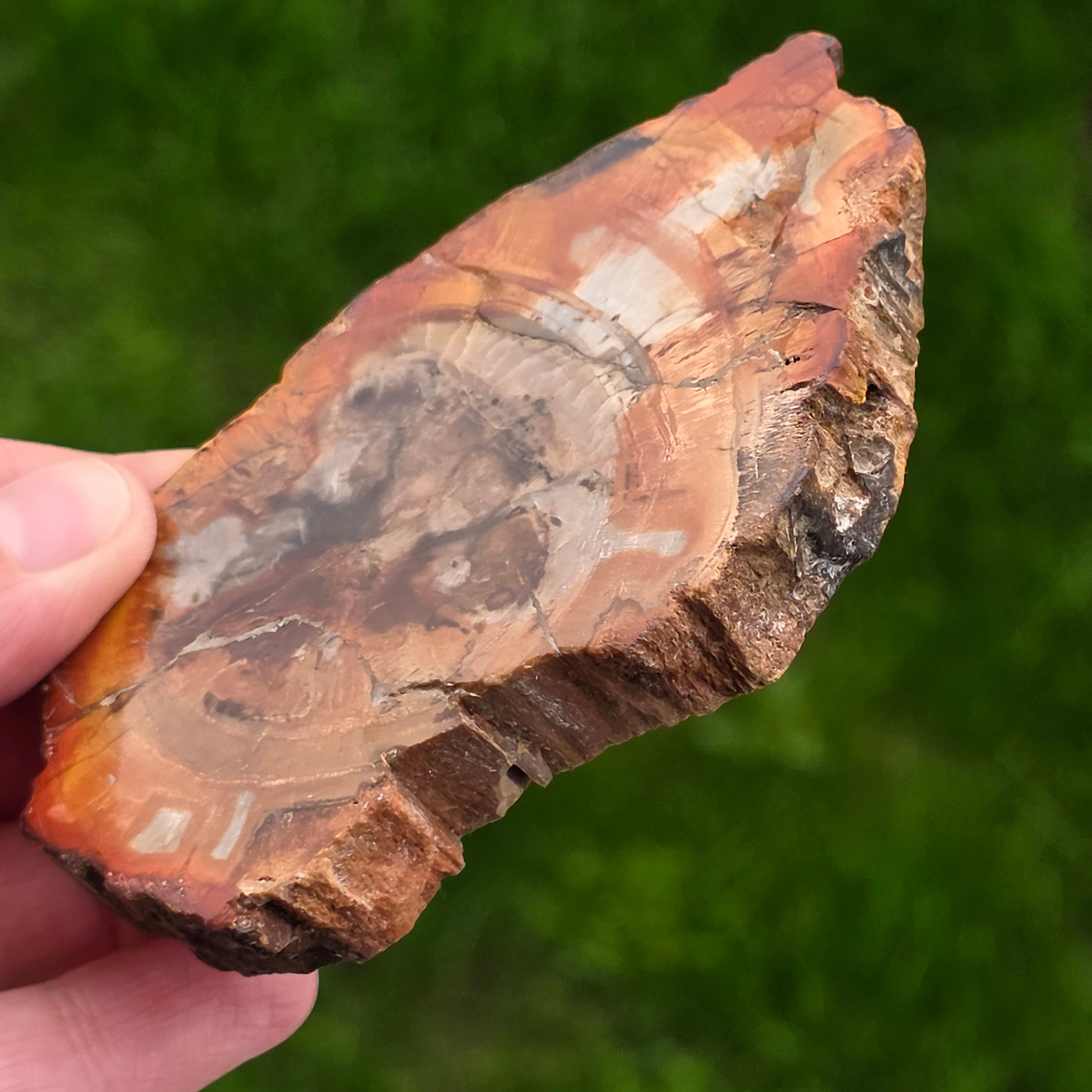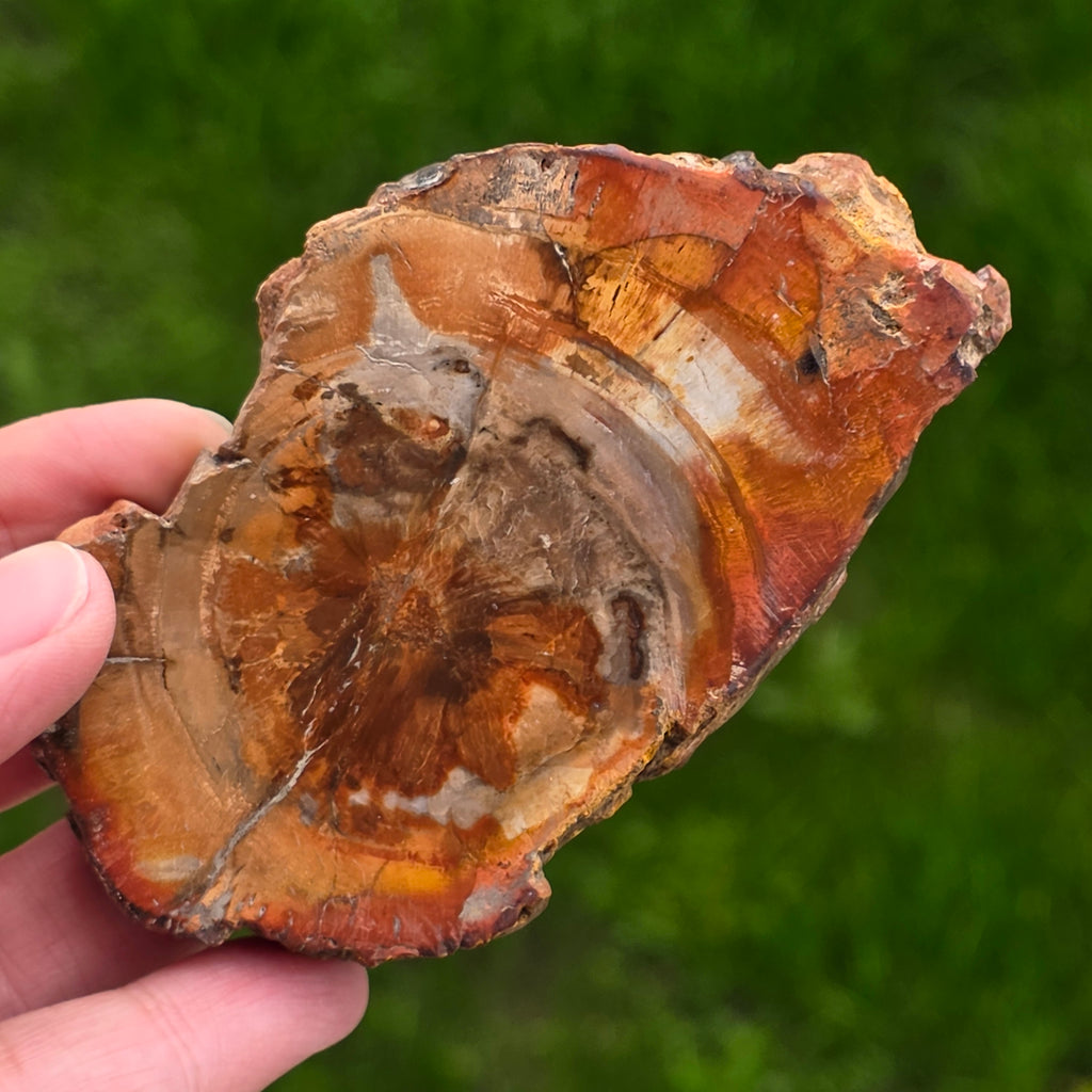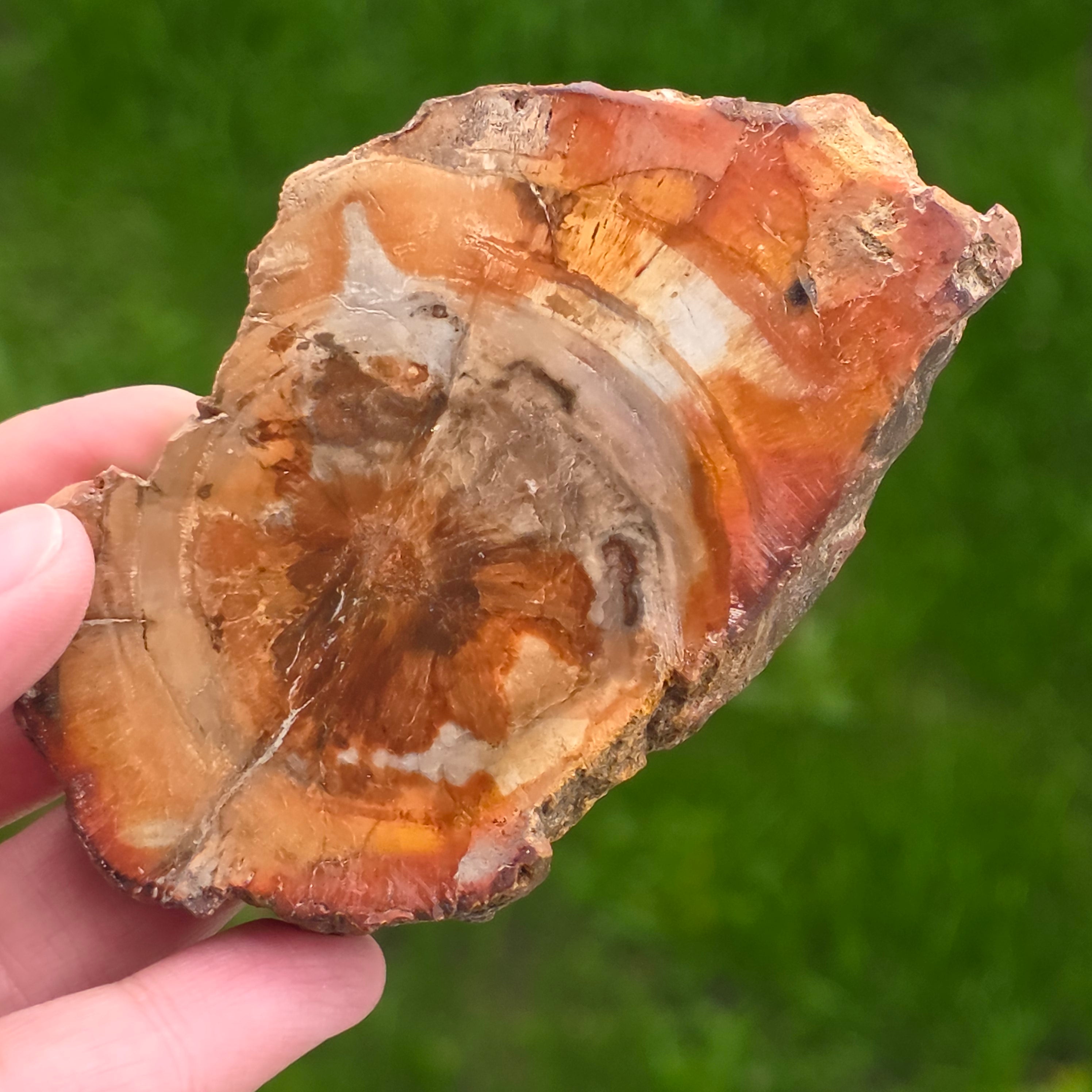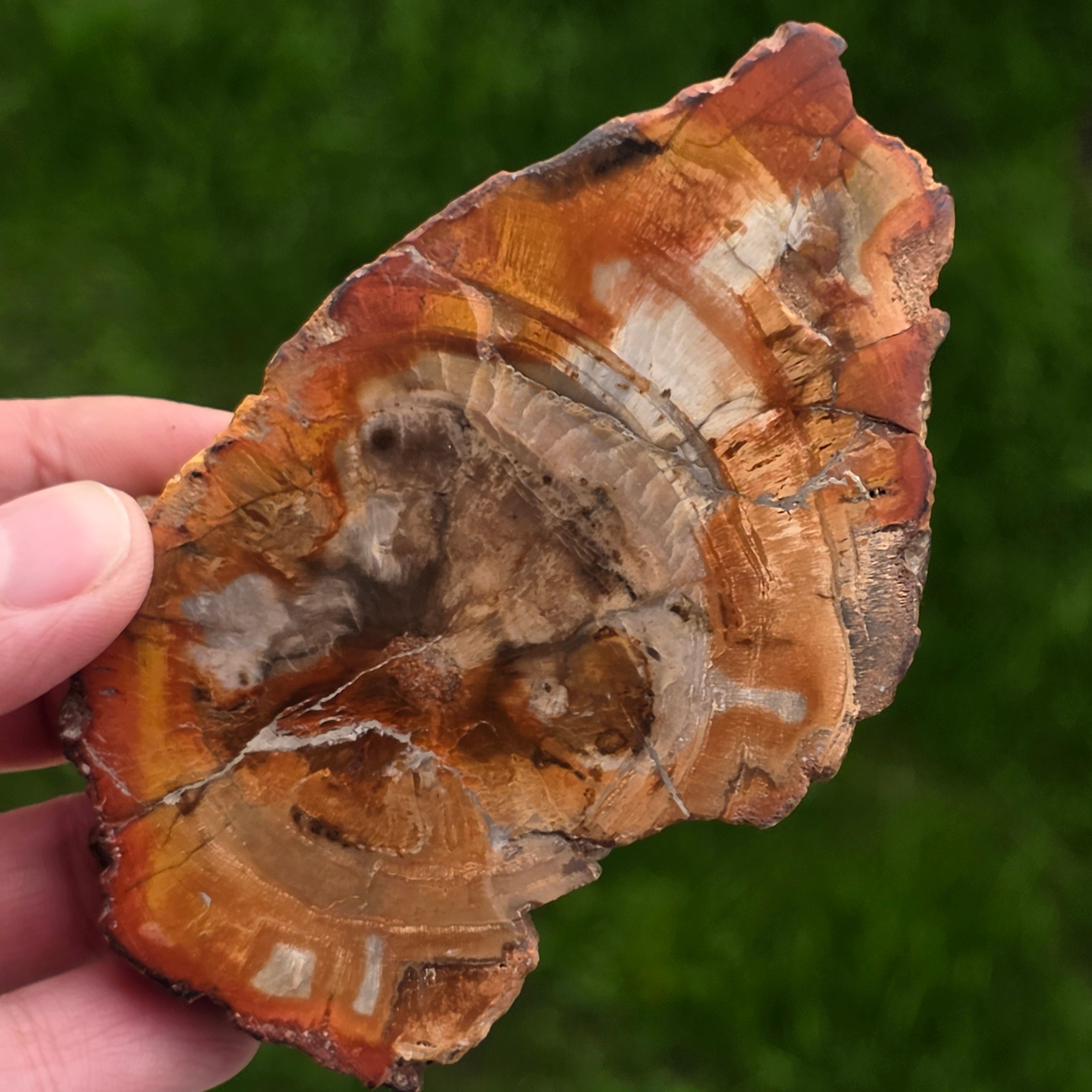Mit der Zeit entwickeln sich durch mineralische Verunreinigungen versteinerte Holzfarben: Eisen sorgt für rötliche oder orange Farbtöne, Mangan bringt schwarze und violette Töne und Kupfer kann grünliche oder bläuliche Akzente setzen. Obwohl es auf den ersten Blick wie Holz aussieht, ist dieser Stein vollständig mineralisiert und hat eine Mohs-Härte von etwa 6,5 – 7, ähnlich dem von Quarz.