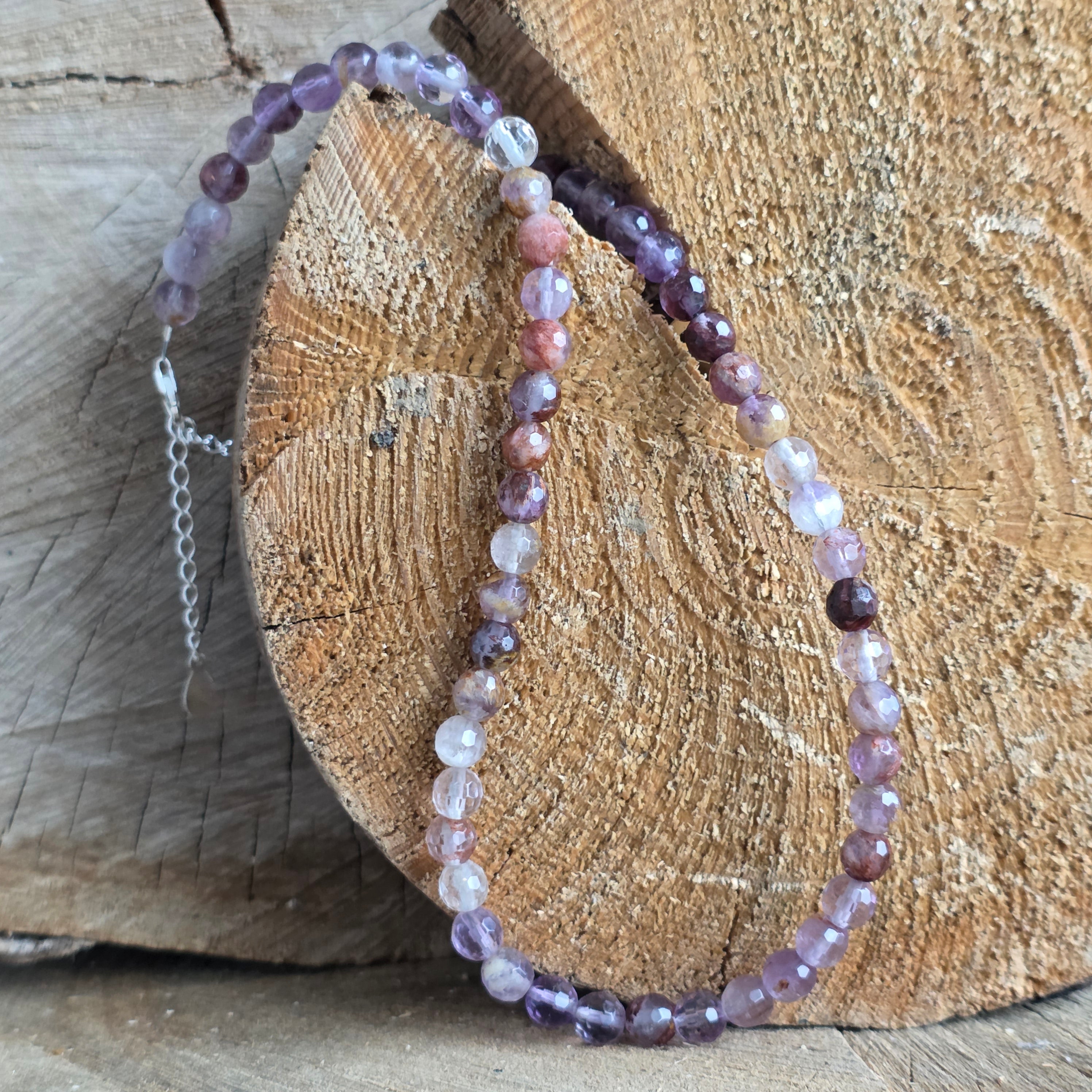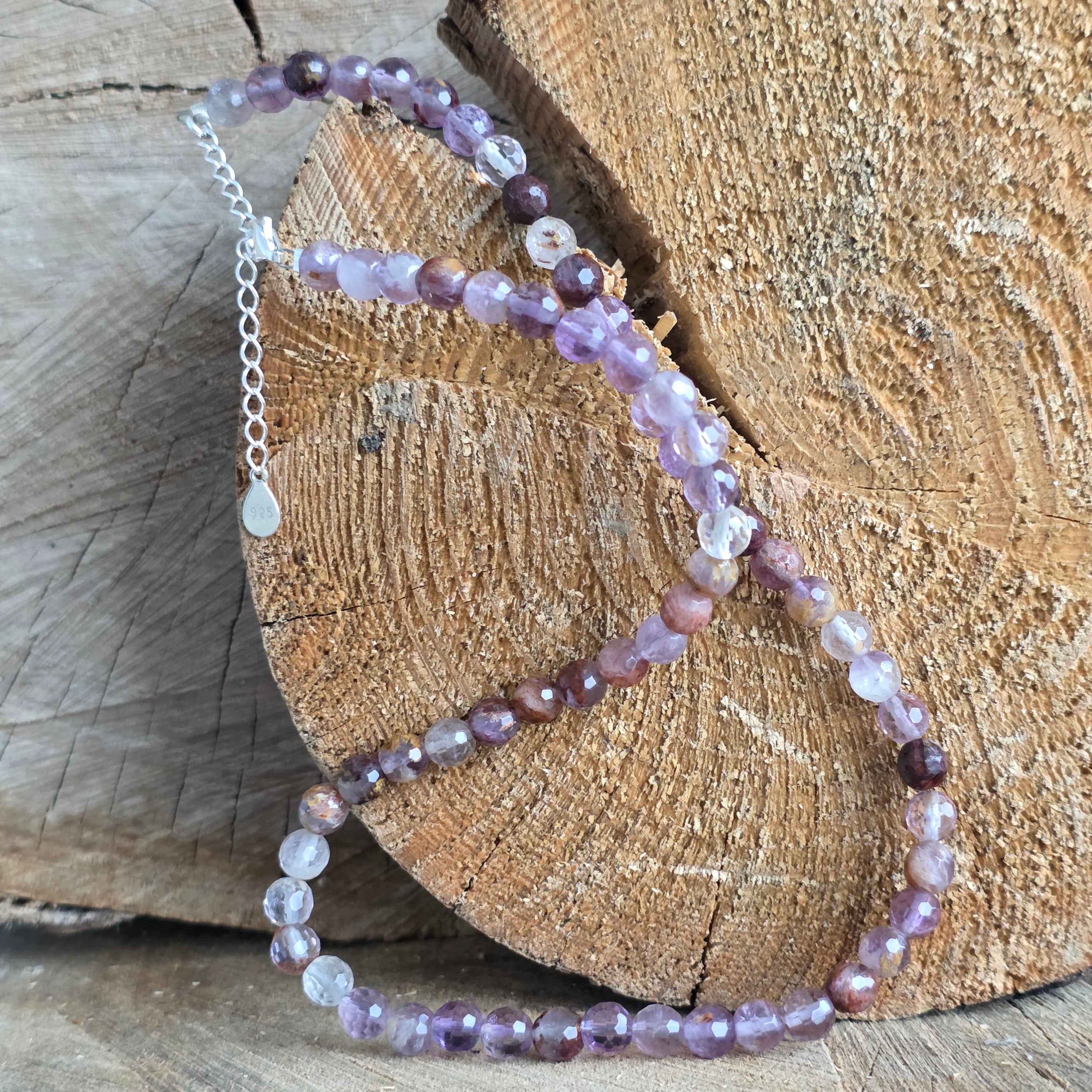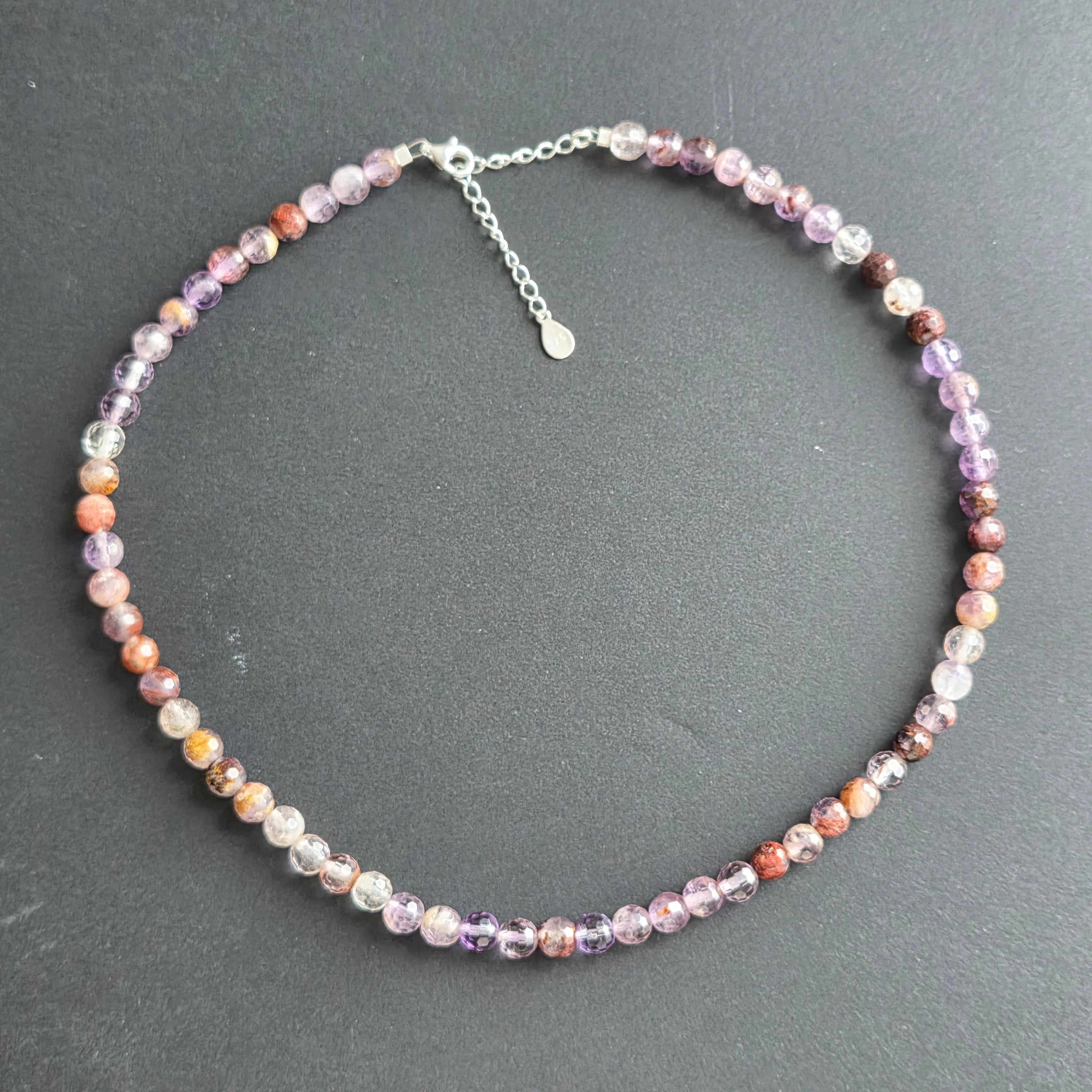 Materialien: Natürlicher Super Seven, facettierte Perlen 6 mm, 925er Silber