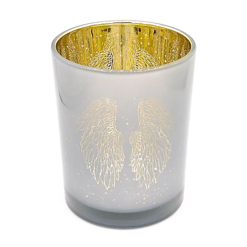 Aripile de înger simbolizează protecția divină, puritatea și încrederea în lumina interioară. Acest suport de lumânare din sticlă, decorat cu un model delicat și străluciri subtile, transformă flacăra unei lumânări într-un memento al prezenței îngerilor și al liniștii sufletului.