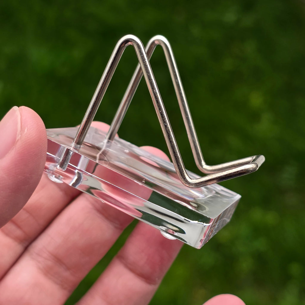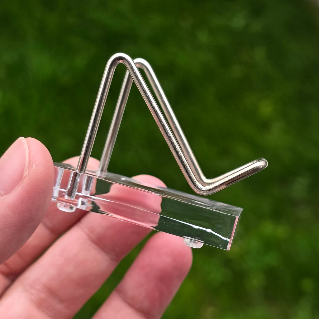 Rezensionen- Suport metalic cu bază din plexiglas pentru cristale și decor – model V