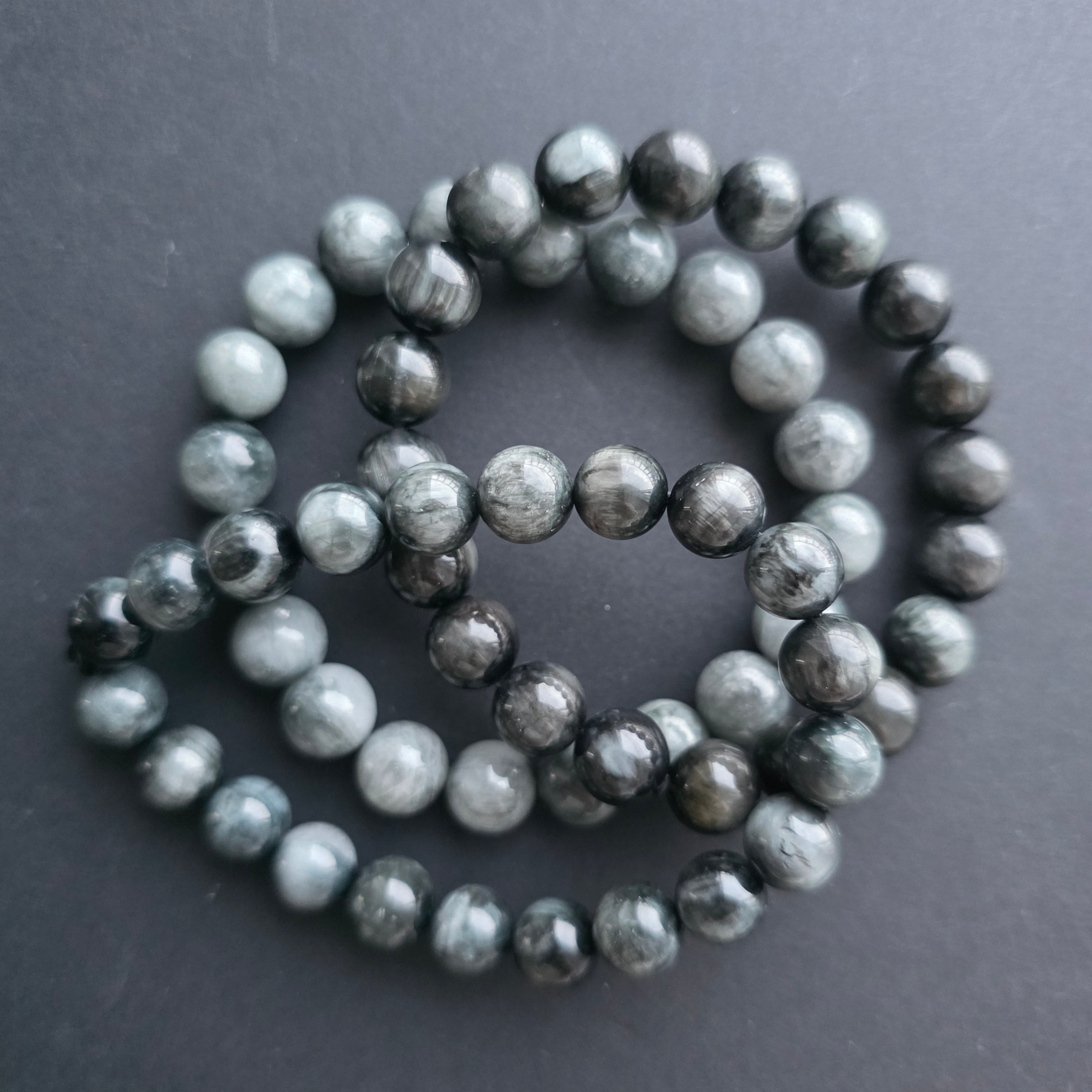 Beschreibung - Tigerauge-Grauarmschmuck 9-10 mm