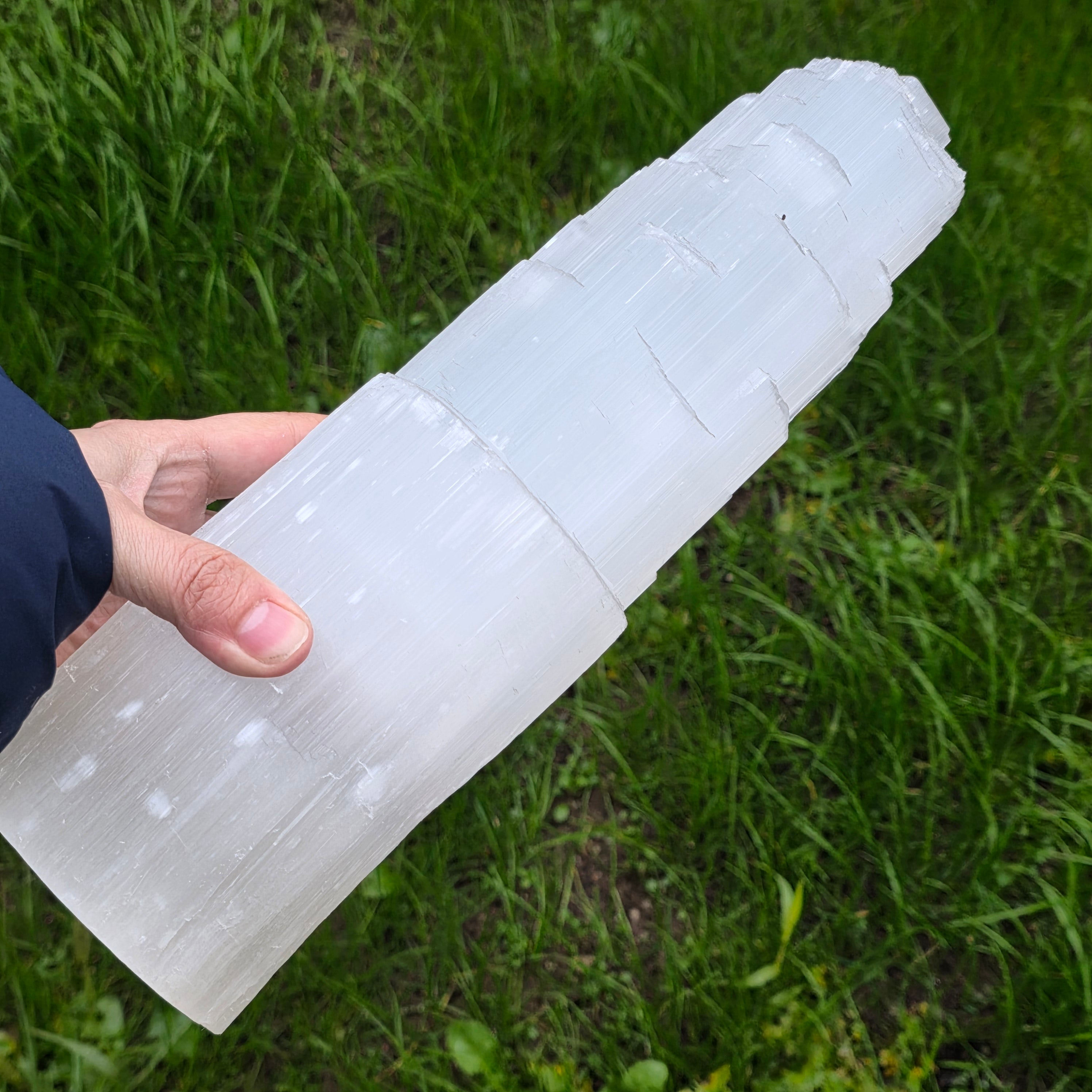 Selenitul este adesea folosit ca un cristal de sprijin în practicile spirituale, ajutând la deschiderea și activarea chakrelor 6 si 7, care sunt asociate cu intuiția, clarviziunea și conexiunea la nivel spiritual.