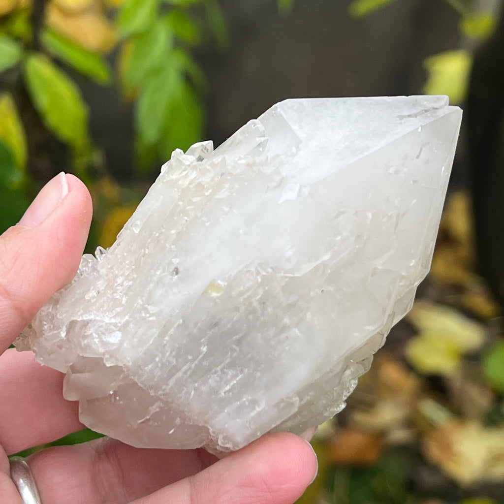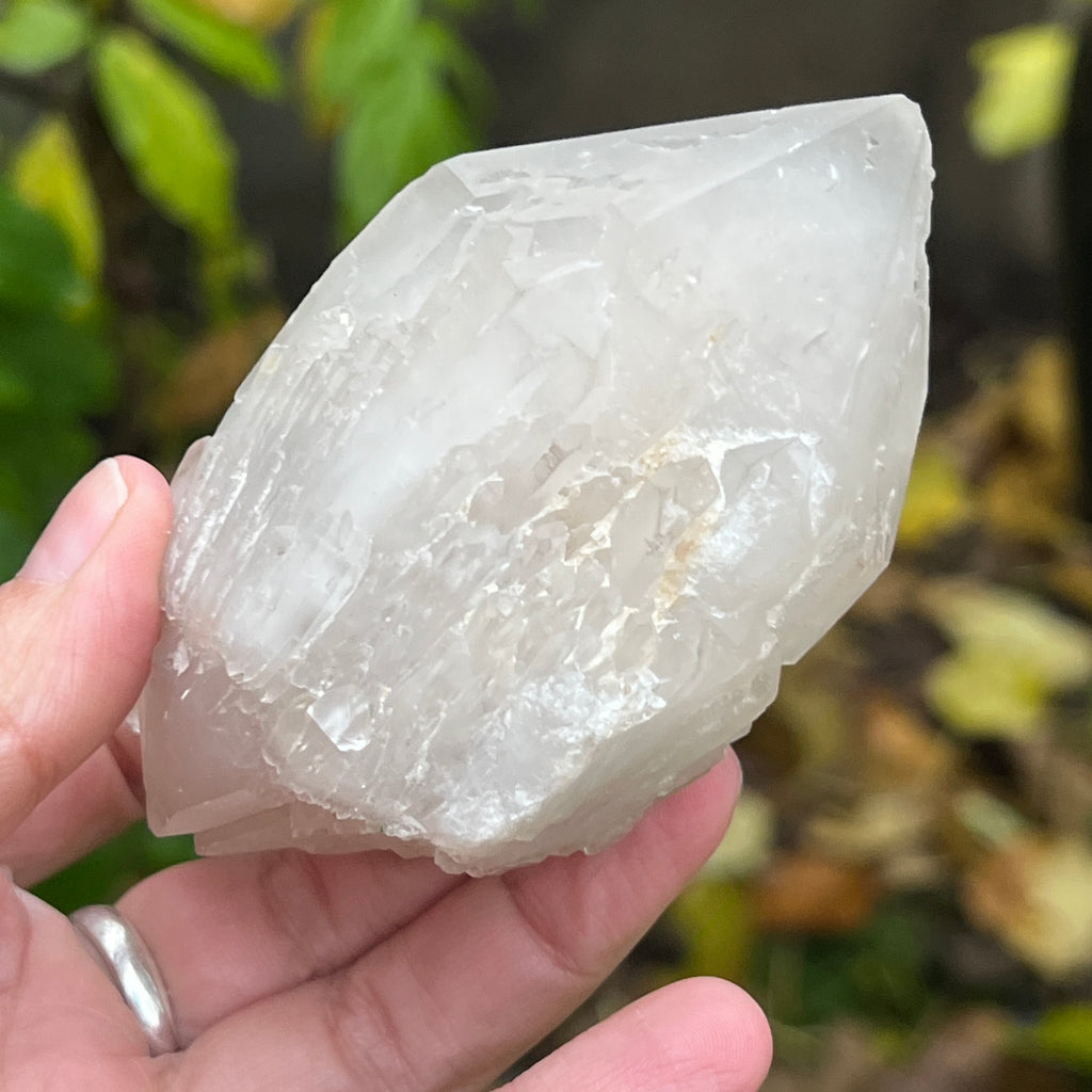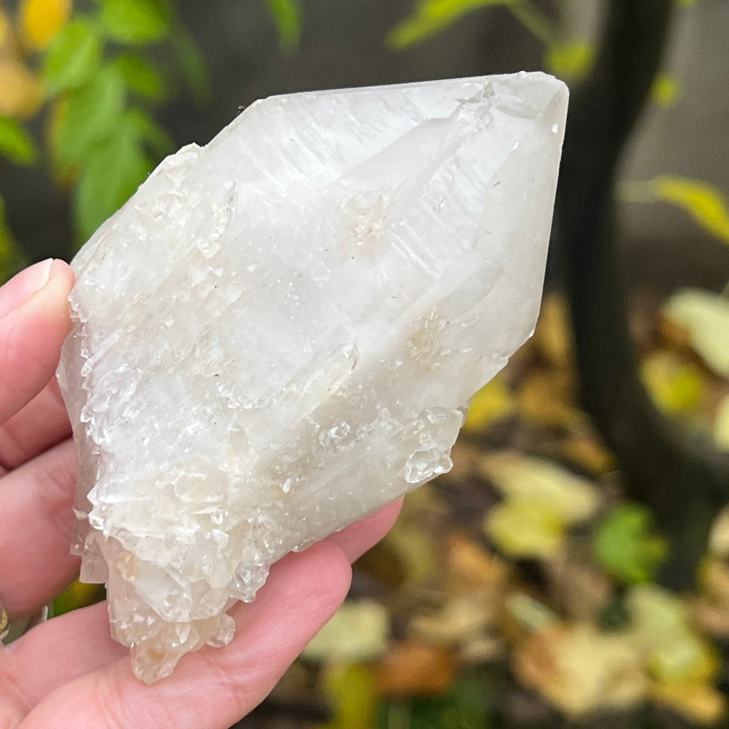 Un vârf care pare sculptat de lumină însăși. Cuartul celest, cunoscut și ca cuart lumânare, îmbină forța unui cristal de cuarț cu blândețea și strălucirea unei flăcări interioare. Forma sa unică, asemănătoare unui ananas cristalin, emană o energie de purificare profundă și de conectare cu planurile superioare ale conștiinței.