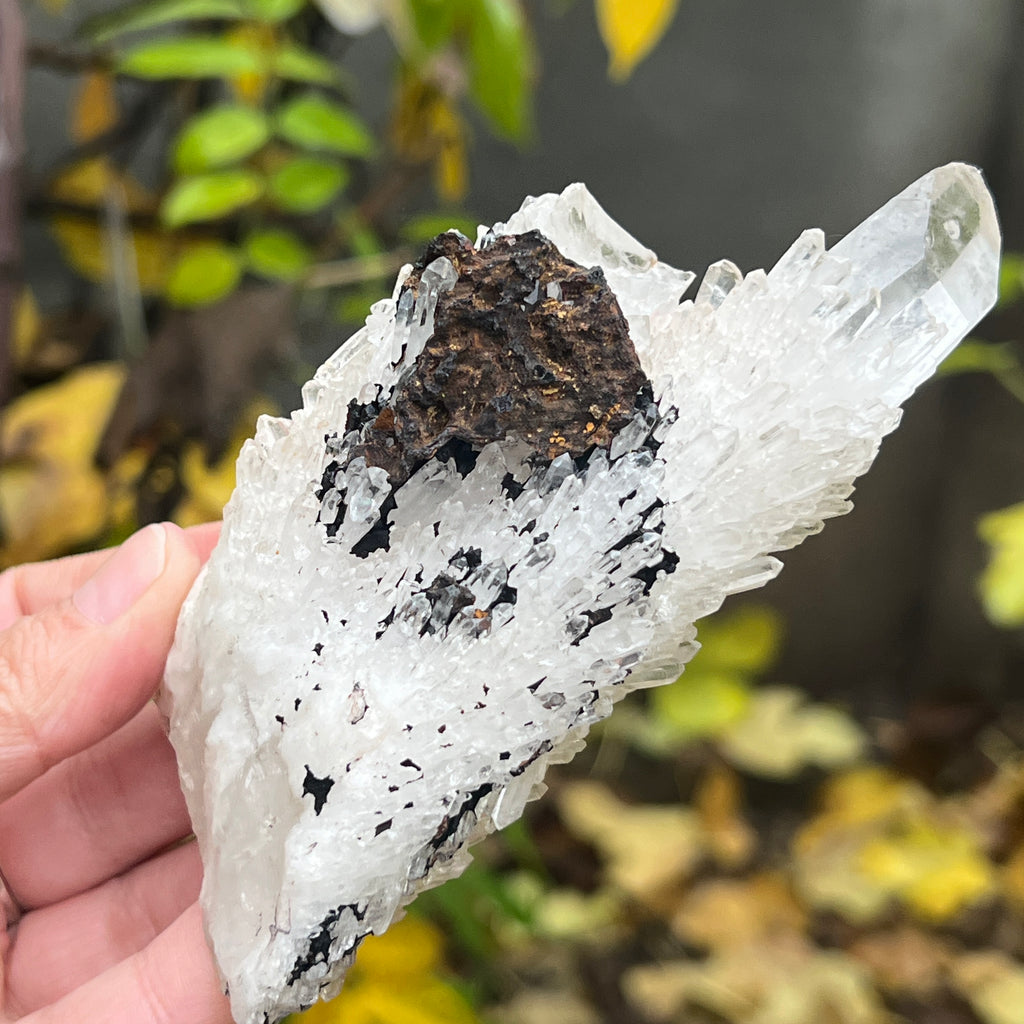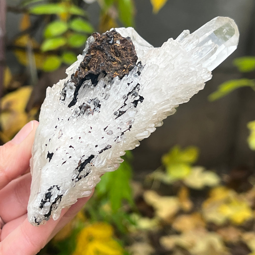 Un vârf care pare sculptat de lumină însăși. Cuartul celest, cunoscut și ca cuart lumânare, îmbină forța unui cristal de cuarț cu blândețea și strălucirea unei flăcări interioare. Forma sa unică, asemănătoare unui ananas cristalin, emană o energie de purificare profundă și de conectare cu planurile superioare ale conștiinței.